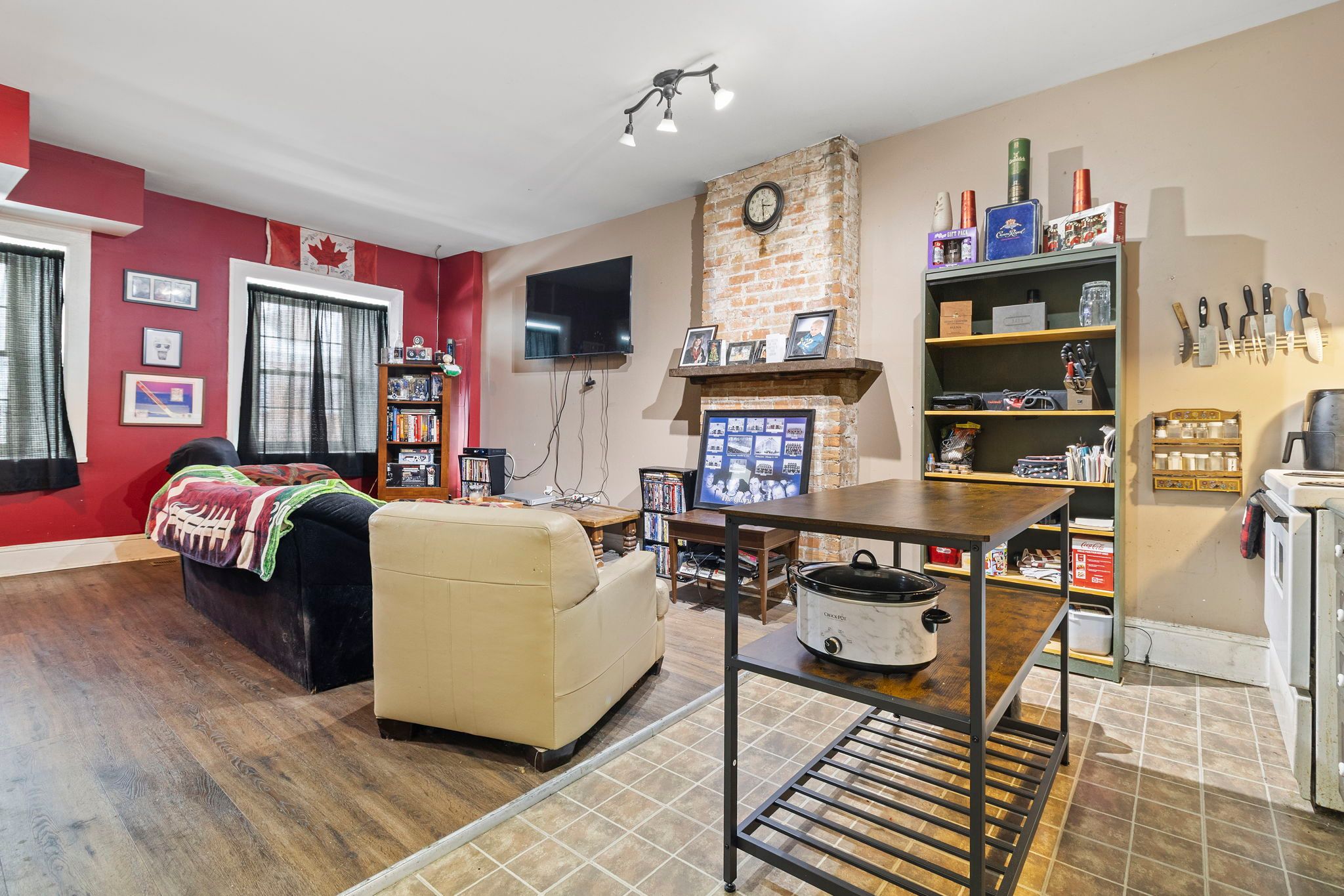 Centrally located mixed-use property offering flexible main-floor space suitable for commercial or residential use, paired with an upper-level residential unit. The main floor features a kitchen and three-piece bathroom, allowing for a variety of potential configurations depending on buyer needs. The layout provides functional separation between living and work areas, with character elements throughout. The main floor space is currently connected to the adjoining unit at 33 perth street, allowing for an expanded footprint if purchased together, or it can be closed off and operated independently. The second floor unit is a tenanted residential apartment, providing consistent rental income. This unit offers a practical layout with defined living areas, kitchen, bathroom, and bedroom space. The property includes rear access via church street, along with two parking spaces located in the lot behind the building. Positioned steps from shops, restaurants, and waterfront amenities, 35 perth street benefits from strong pedestrian exposure while maintaining the enduring appeal of brockville's historic stone and brick architecture.