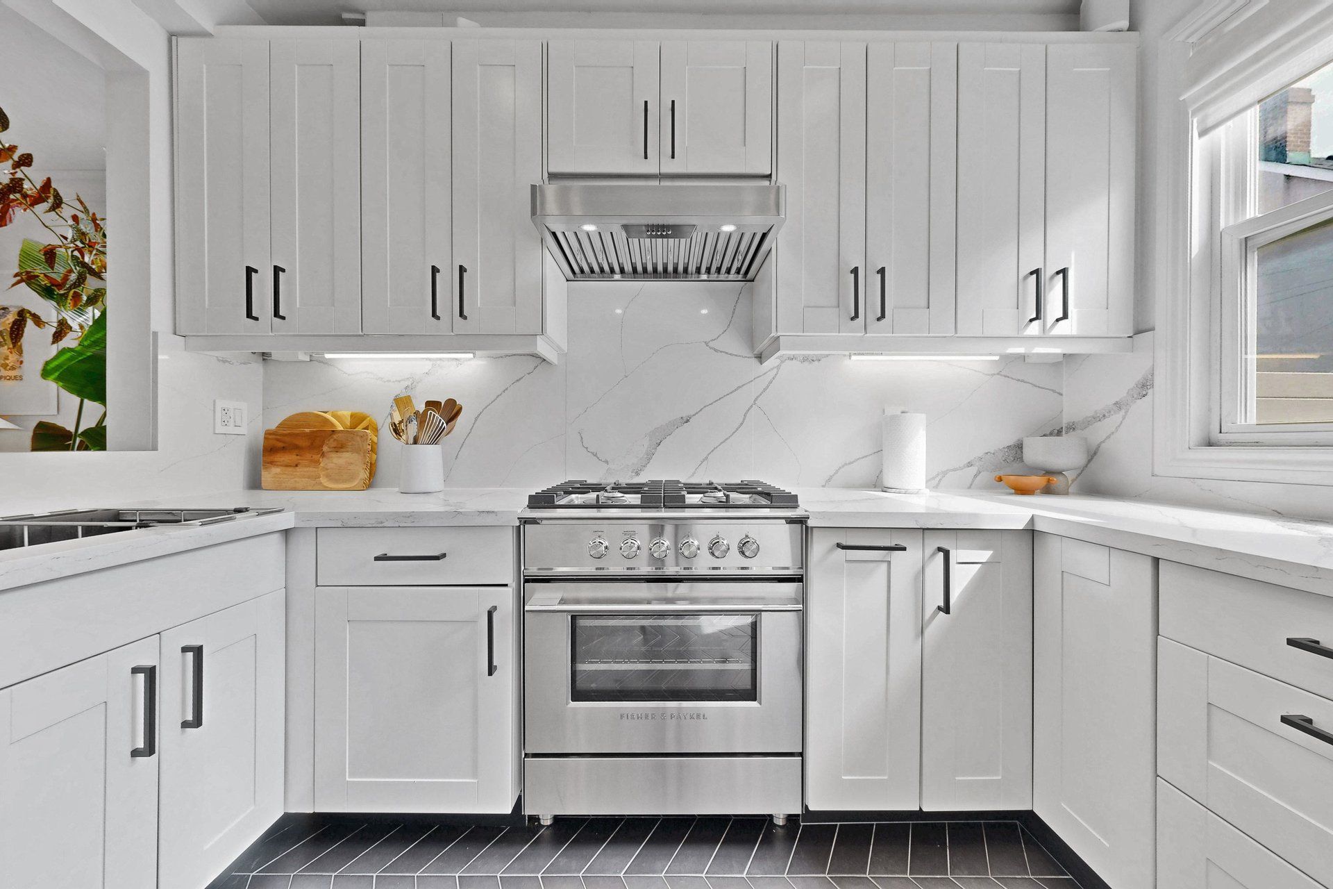 • Custom kitchen with stylish upgrades for cooking and entertaining.