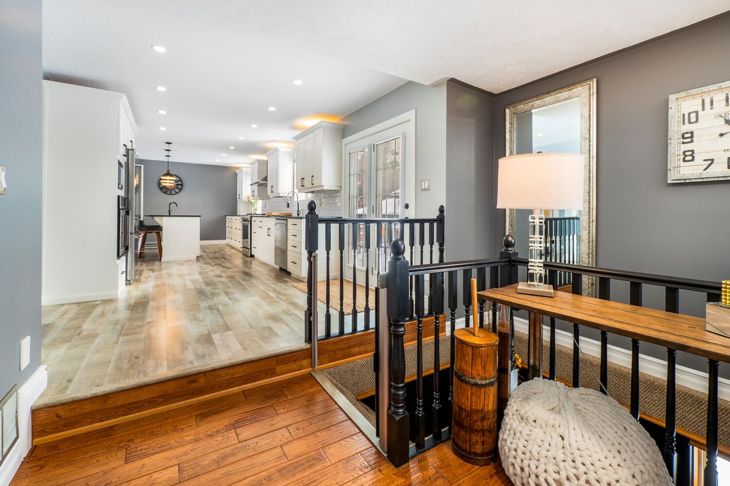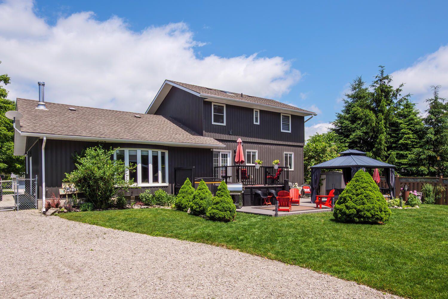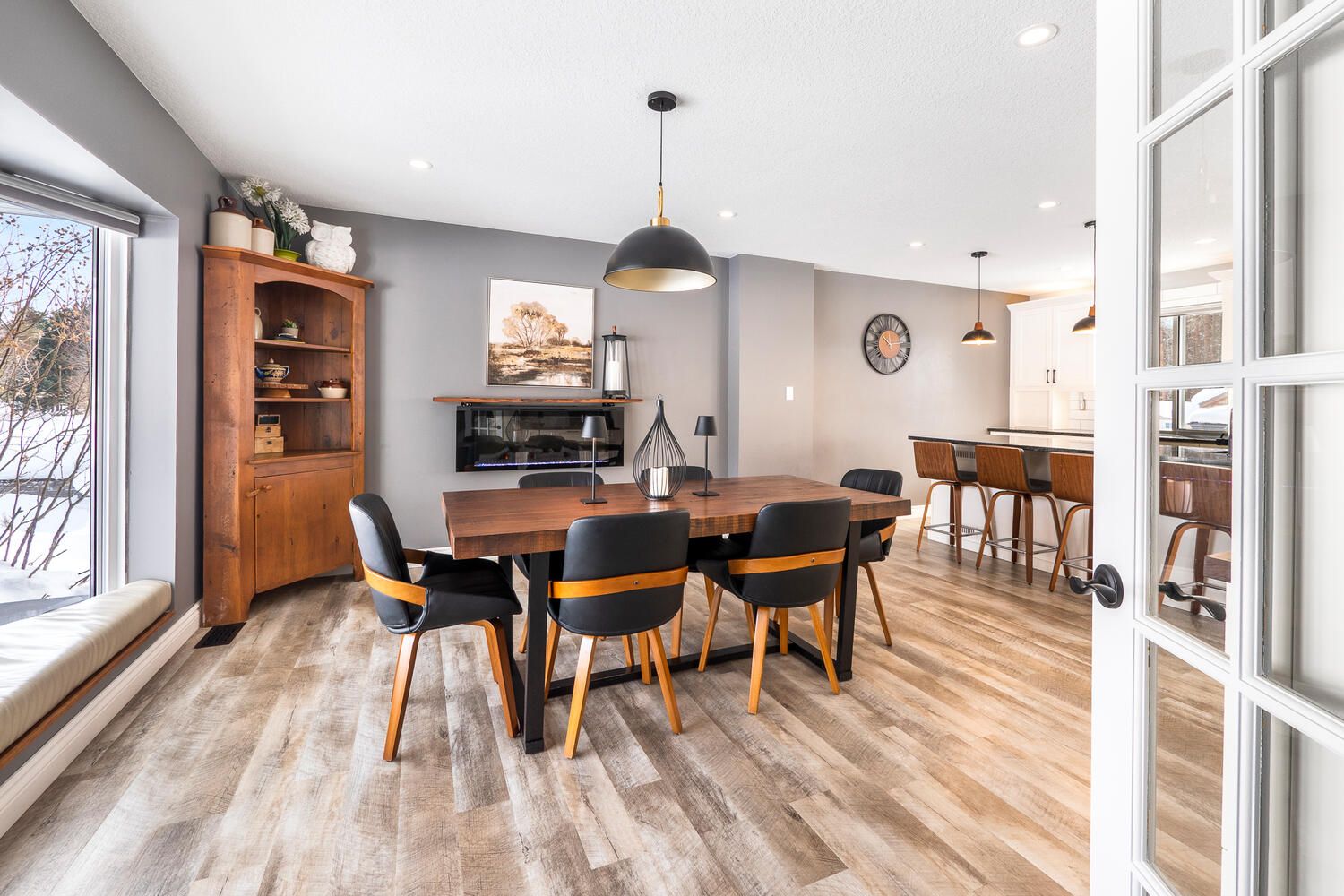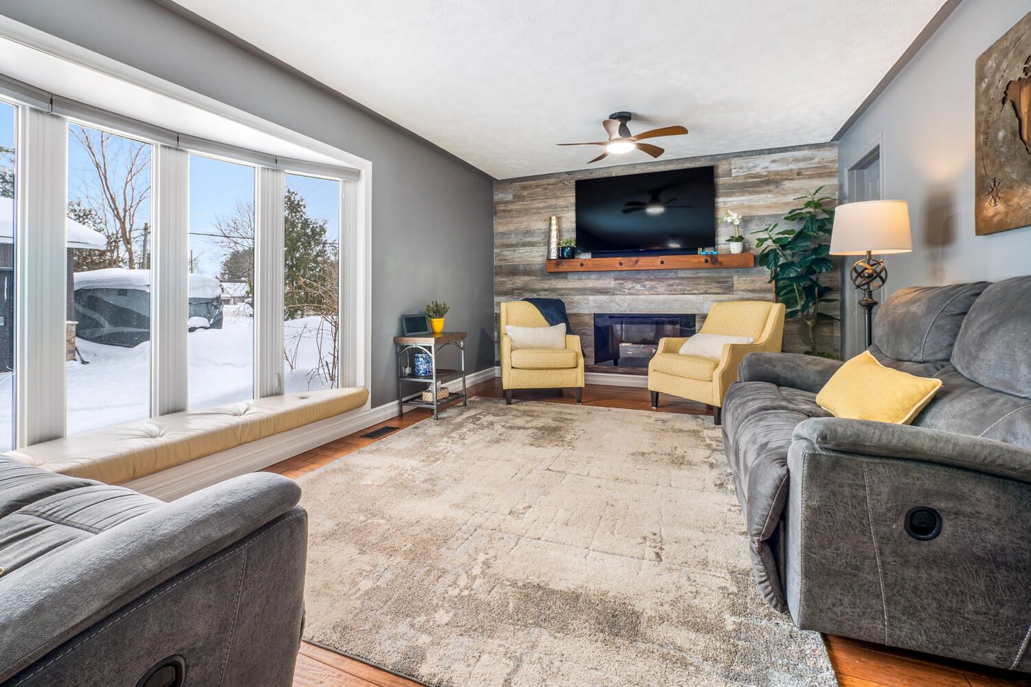 Welcome to a home where thoughtful design meets exceptional versatility. This beautifully updated 3-bedroom, 2. 5-bath offers layered living spaces, tons of updates and refined finishes throughout. The showpiece 2020 kitchen featuring large island, quartz countertops, double sinks, built-in oven w gas cooktop plus additional wall oven, ample cabinets, coffee/wine bar + additional pantry/storage flowing seamlessly into the dining area and sunken living room-creating a natural hub for connection, entertaining, and everyday comfort. A sleek contemporary fireplace feature anchors the main living space with warmth and style. A spacious flex room just off the entry provides endless potential as a private office, studio, or creative retreat, complete with its own gas fireplace. Upstairs, the primary suite offers a 3 pc ensuite bath, alongside two additional bedrooms, an updated full 4 pc bath, and a convenient upper-level laundry room. The lower level delivers outstanding functionality with a large family room featuring a wood-burning zero-clearance fireplace, an entertainment space with built-in bar and bar fridge, a dedicated fitness/work zone, cold storage, and interior access to the attached garage-ideal for modern, multi-use living. A true standout feature is the brand-new detached shop/garage with in-floor heating and insulated, re-line finished walls-perfect for hobbies, business ventures, or premium storage. The covered porch on the detached garage creates a private backyard sitting area-an inviting outdoor retreat for quiet mornings, relaxed evenings, or hosting guests. A partially fenced yard is enhanced by a large composite deck/patio, gazebo, storage shed and low maintenance perennial beds. Located across from the public school and steps to parks, trails, playgrounds, and daily conveniences, with fast access to sauble beach, wiarton, and owen sound. A rare opportunity to own a property that blends design, flexibility, and lifestyle in one exceptional offering.