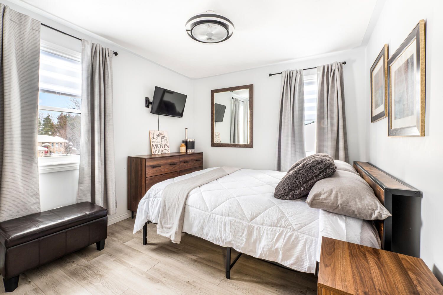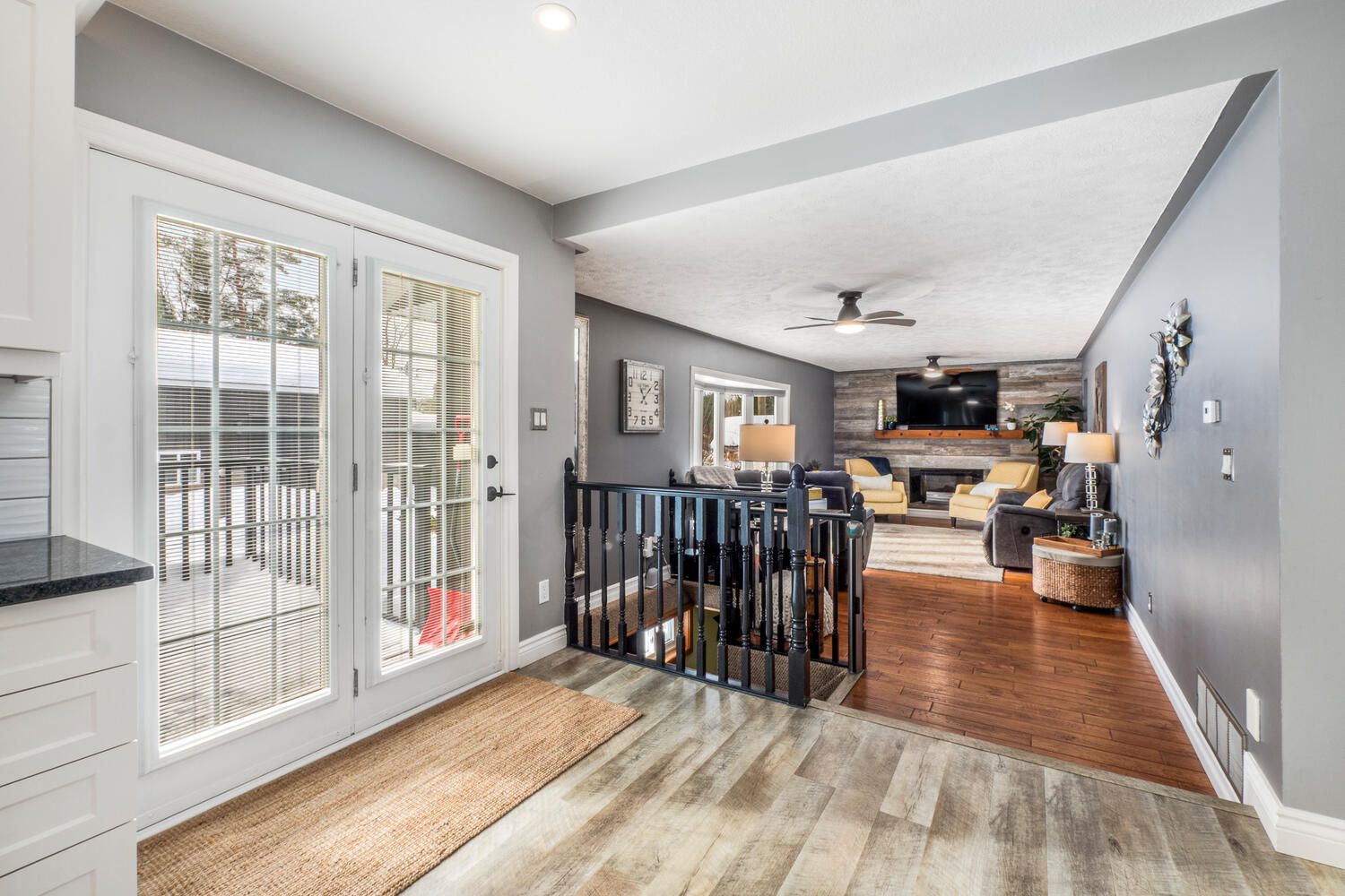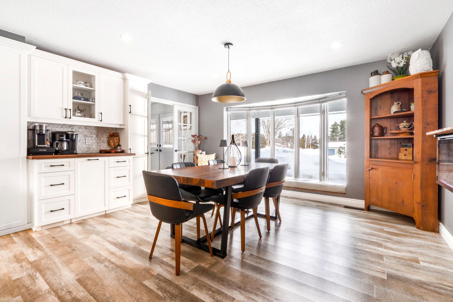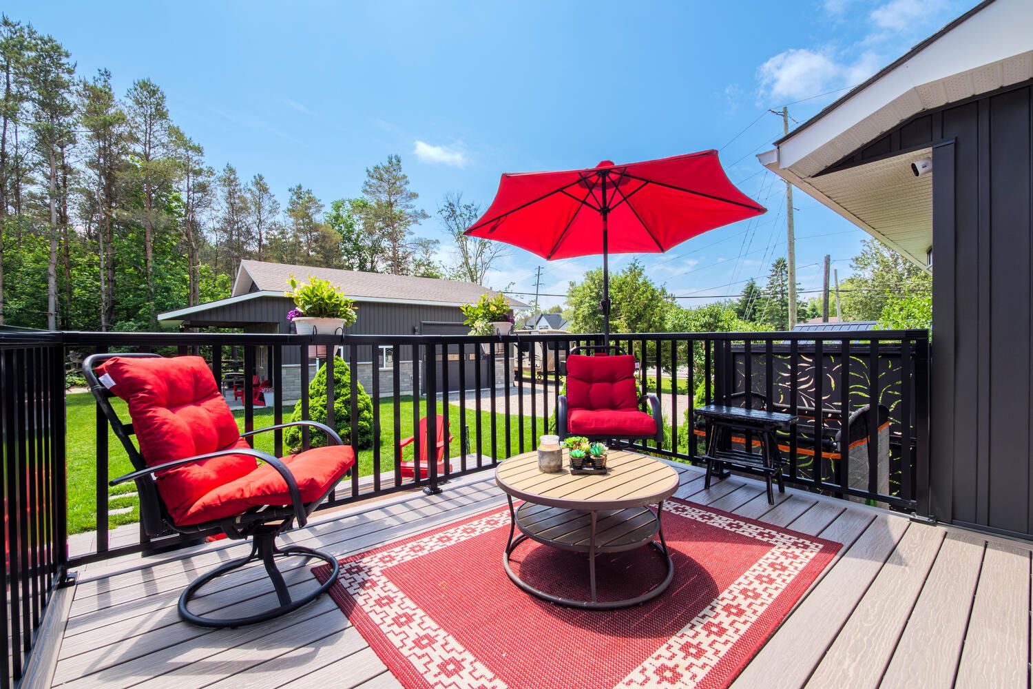 Welcome to a home where thoughtful design meets exceptional versatility. This beautifully updated 3-bedroom, 2. 5-bath offers layered living spaces, tons of updates and refined finishes throughout. The showpiece 2020 kitchen featuring large island, quartz countertops, double sinks, built-in oven w gas cooktop plus additional wall oven, ample cabinets, coffee/wine bar + additional pantry/storage flowing seamlessly into the dining area and sunken living room-creating a natural hub for connection, entertaining, and everyday comfort. A sleek contemporary fireplace feature anchors the main living space with warmth and style. A spacious flex room just off the entry provides endless potential as a private office, studio, or creative retreat, complete with its own gas fireplace. Upstairs, the primary suite offers a 3 pc ensuite bath, alongside two additional bedrooms, an updated full 4 pc bath, and a convenient upper-level laundry room. The lower level delivers outstanding functionality with a large family room featuring a wood-burning zero-clearance fireplace, an entertainment space with built-in bar and bar fridge, a dedicated fitness/work zone, cold storage, and interior access to the attached garage-ideal for modern, multi-use living. A true standout feature is the brand-new detached shop/garage with in-floor heating and insulated, re-line finished walls-perfect for hobbies, business ventures, or premium storage. The covered porch on the detached garage creates a private backyard sitting area-an inviting outdoor retreat for quiet mornings, relaxed evenings, or hosting guests. A partially fenced yard is enhanced by a large composite deck/patio, gazebo, storage shed and low maintenance perennial beds. Located across from the public school and steps to parks, trails, playgrounds, and daily conveniences, with fast access to sauble beach, wiarton, and owen sound. A rare opportunity to own a property that blends design, flexibility, and lifestyle in one exceptional offering.