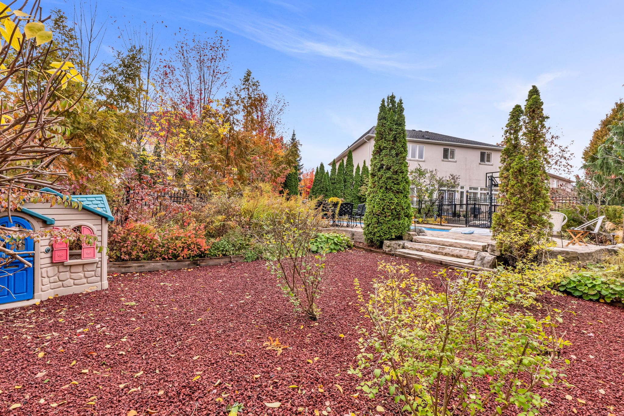 • Private backyard oasis with an in-ground pool and hot tub.