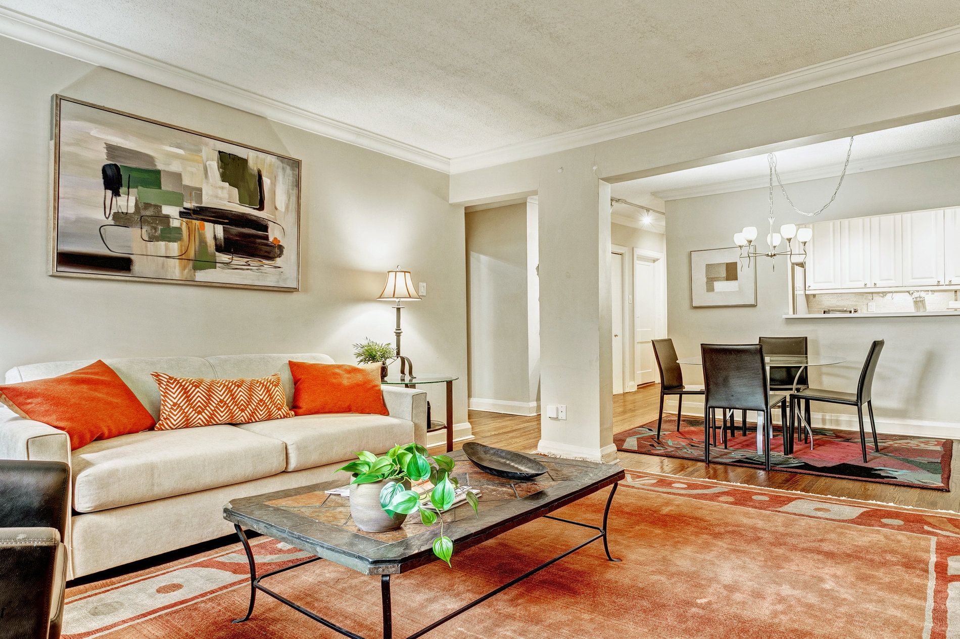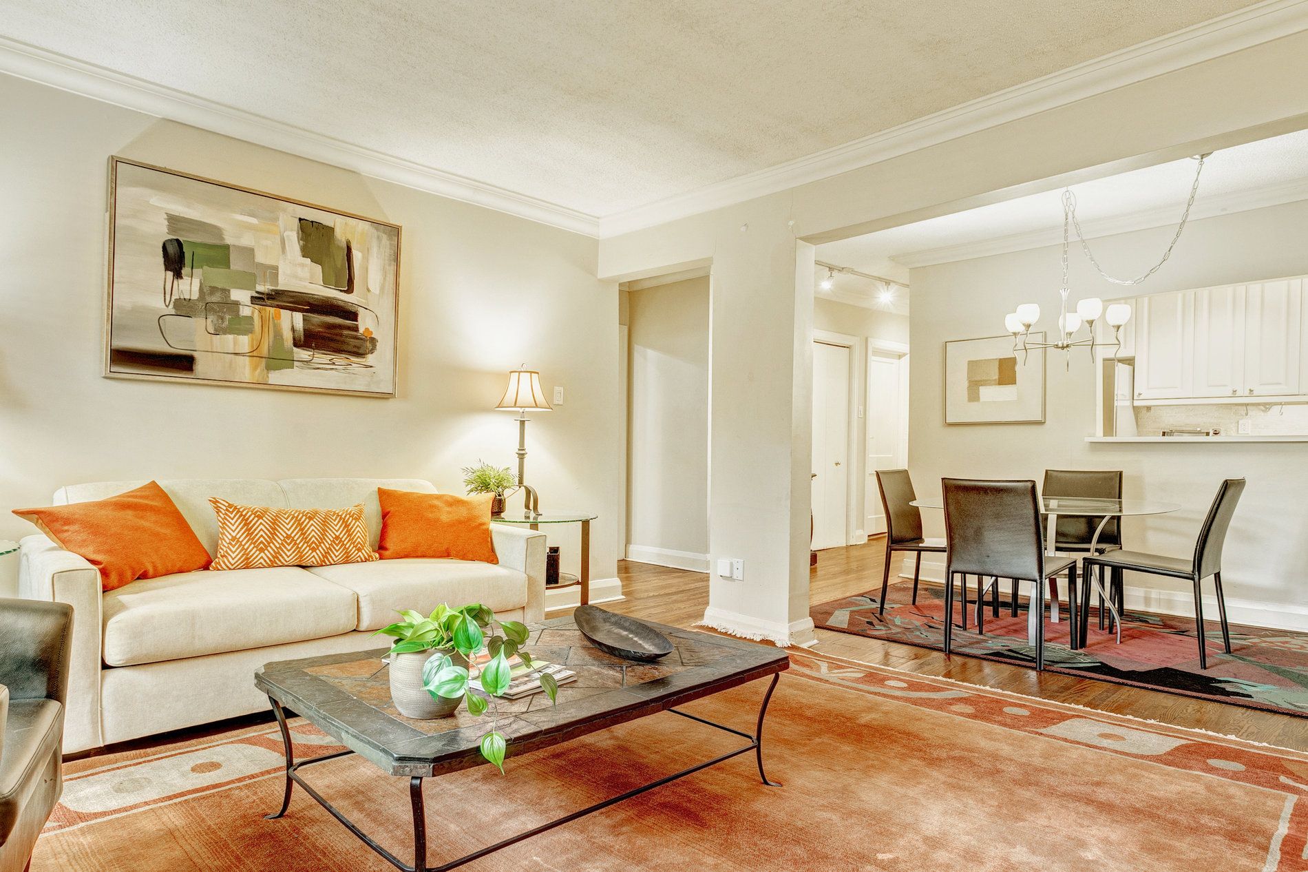 • Spacious one-bedroom with a blend of modern and retro design elements.