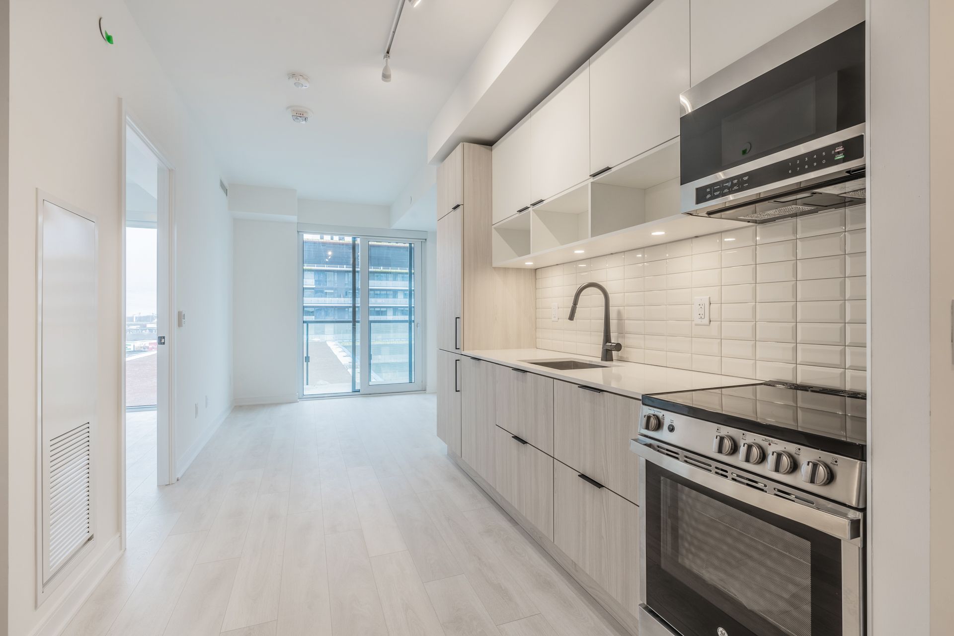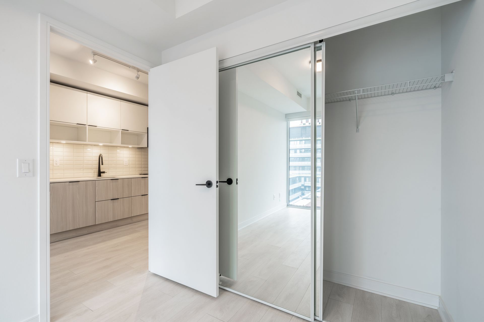 Welcome to canary commons, one of the most sought-after buildings in the canary district. This beautiful one-bedroom suite features a true bedroom with a proper door, hardwood flooring throughout, contemporary finishes, and floor-to-ceiling windows that flood the space with natural southern light all day long. Step out onto the private balcony and enjoy a quiet moment above the city. The suite also includes a dedicated parking space, a rare and valuable bonus in this neighbourhood. Located in the heart of the canary district, you are steps to local favourites like dark horse espresso bar, souk tabule, and canary landing park, with the distillery district just minutes away offering world-class dining, boutiques, and seasonal events. Everyday conveniences, including grocery stores, cafes, and green spaces, are all nearby. Close to ttc streetcar routes with quick access to downtown, this is urban living at its best. Enjoy life at canary commons; you will not want to leave.