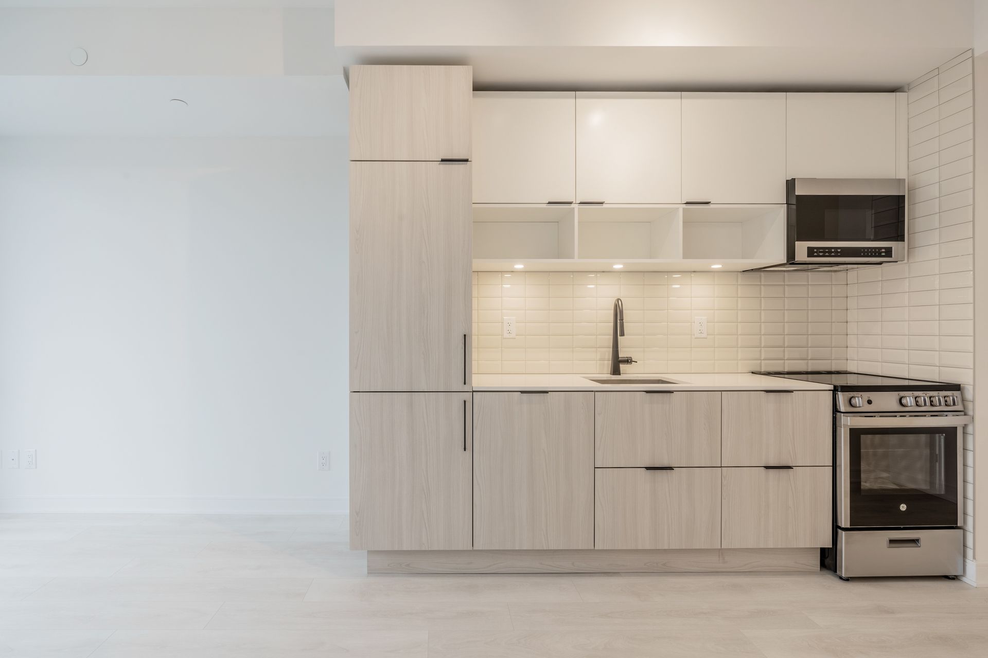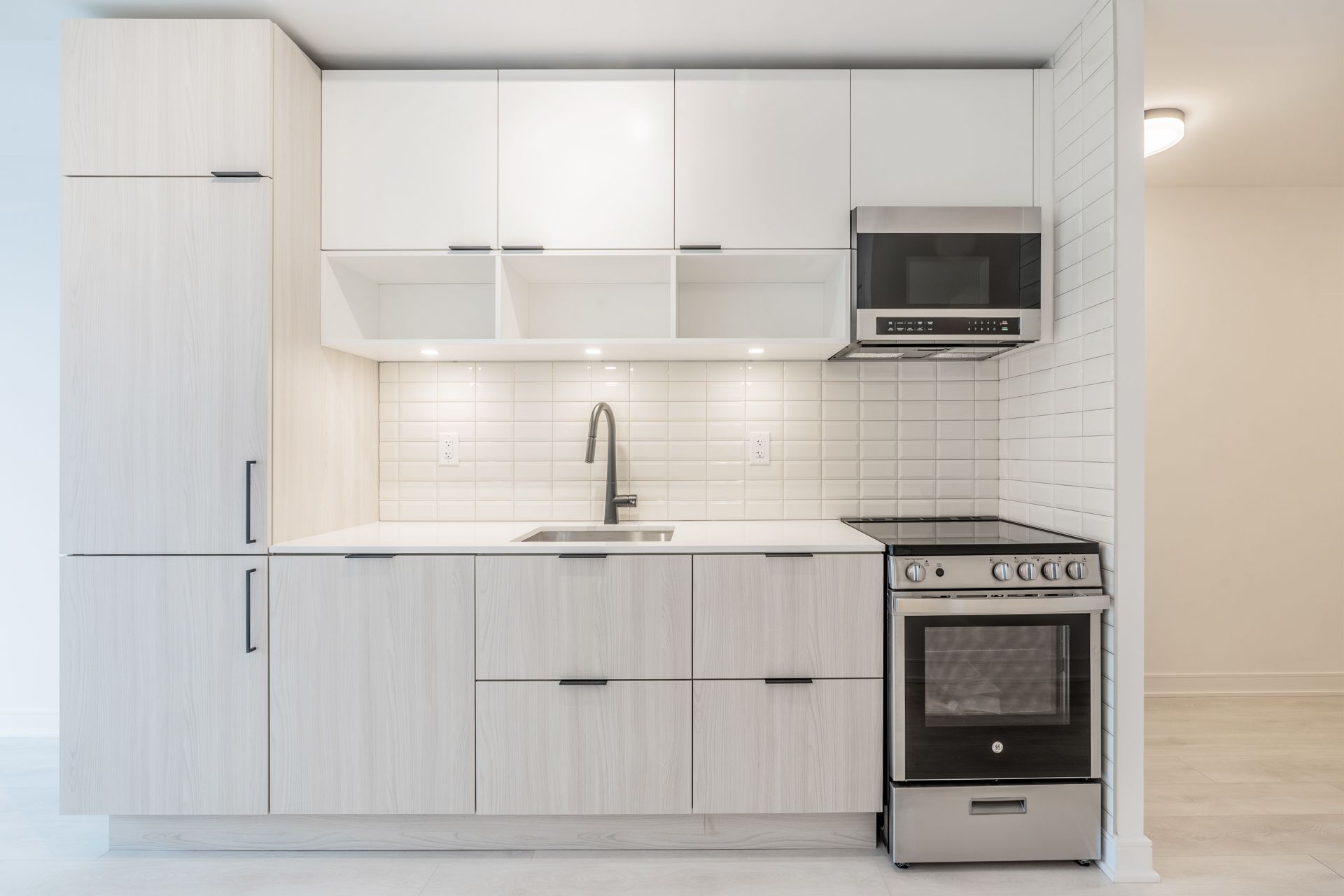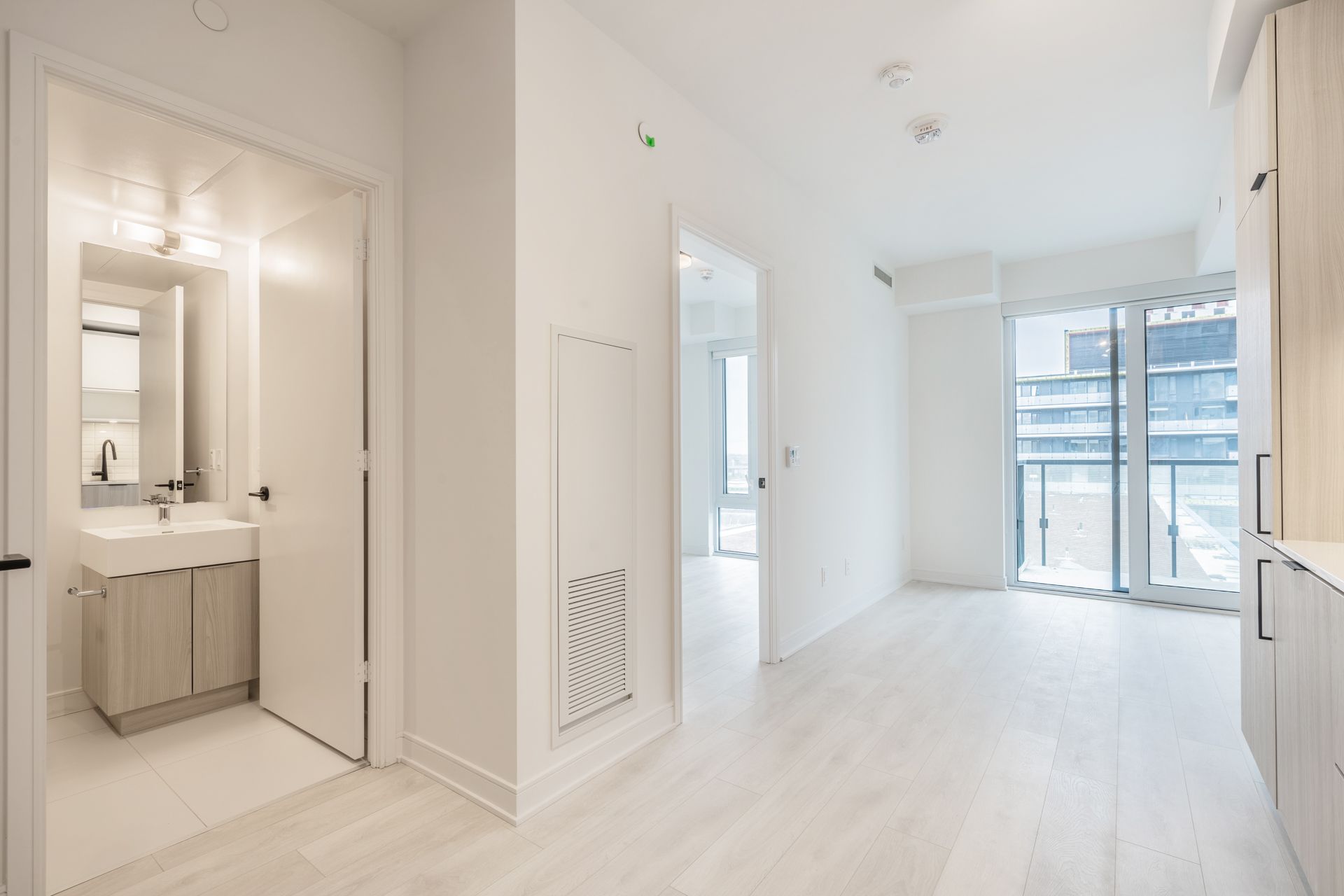 • Bright one-bedroom suite with floor-to-ceiling windows for natural light.