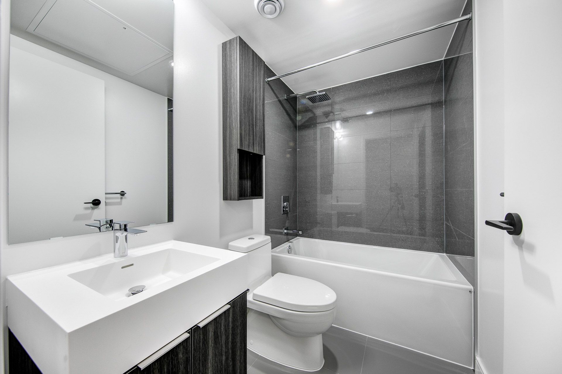 • Access to building amenities like a rooftop garden and fitness centre.