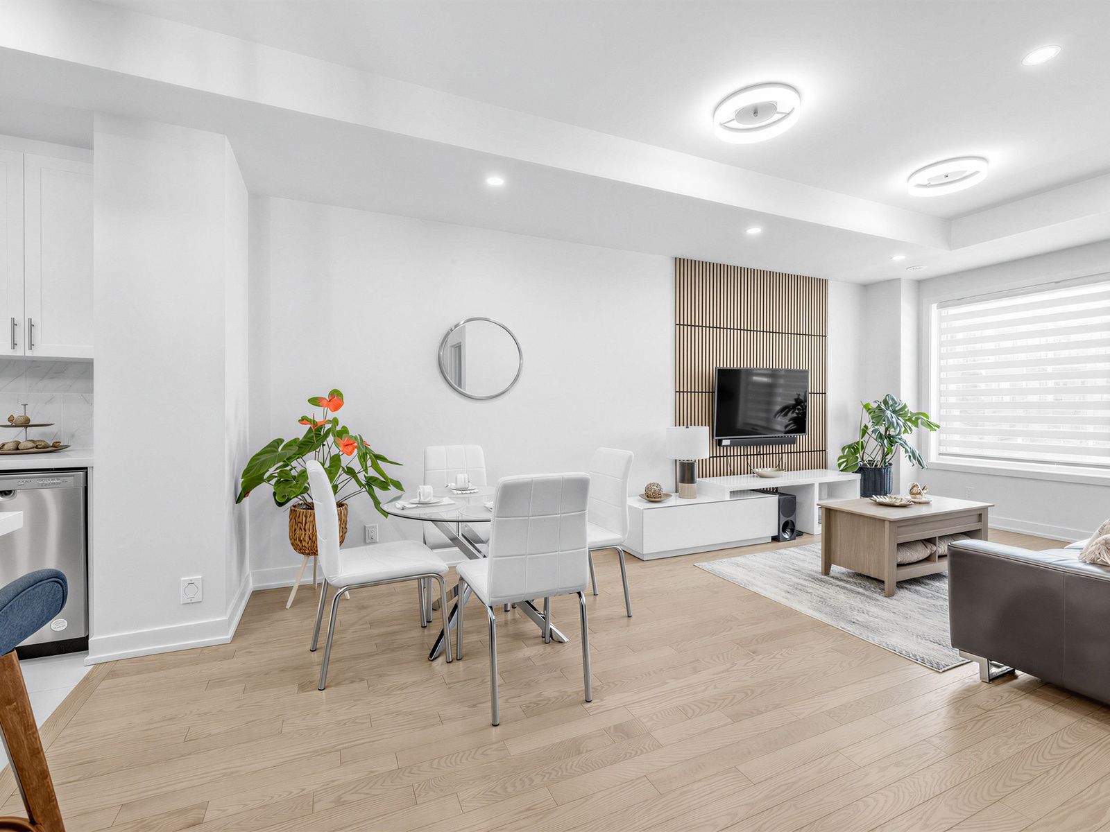 *celestial vista* nestled in the coveted angus glen community of markham, 35 schmidt lane is a testament to luxury living. This impeccably upgraded 3-bedroom, 3-bathroom townhouse spans 1,500 square feet above ground, with every inch adorned in rich hardwood flooring - no carpet in sight. Towering 9-foot ceilings and an abundance of natural light - thanks to its south-facing exposure - create a bright, airy atmosphere. The modern kitchen, a chef's dream, invites gatherings with sleek finishes and an open design. And to elevate your lifestyle even further, step outside to your private rooftop terrace - a serene sanctuary infused with glamour, where you can unwind beneath the golden sky or host sophisticated evening gatherings, wrapped in an ambiance of timeless elegance and exclusivity. Beyond the home, the neighbourhood thrives - charming parks, top- rated schools, and the vibrant angus glen golf club just moments away. This is more than a home; it is a refined lifestyle, waiting for you at 35 schmidt lane.
