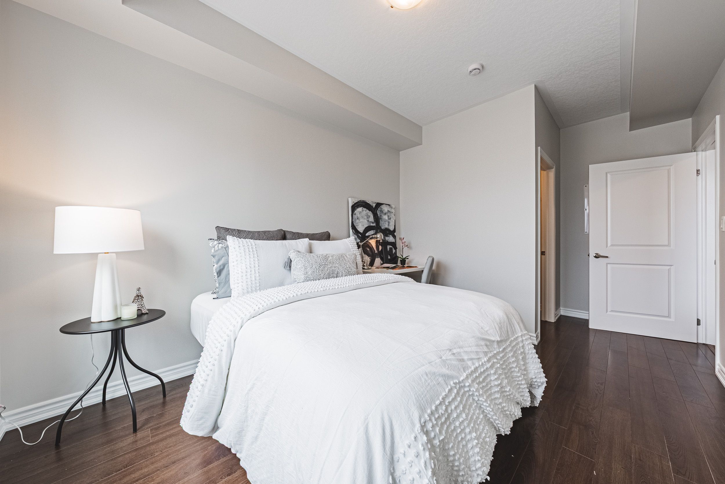 Beautiful 1 bedroom + large den in waterfront trails!? Welcome to lakeside living in this boutique building, well-designed condo located steps from lake ontario. This spacious 1 bedroom plus full-size den offers impressive flexibility - perfect for a guest room, office, or fitness space. Located in one of stoney creek's most scenic waterfront communities, you'll enjoy walking trails, park space, and a small beach just outside your door. Take in gorgeous sunset views and the peaceful lakefront atmosphere year-round. Waterfront trails is known for its exceptional upkeep and efficiency. Residents enjoy a spectacular rooftop terrace with panoramic views of the lake and escarpment, a well-equipped fitness centre, and an inviting party room. The building is pet-friendly and offers secure underground parking and an unobstructed view of the escarpment. This unit includes 1 underground parking space and a locker. Additional parking may be available for a reasonable monthly fee. Conveniently located close to the qew, and shopping, this condo is an excellent choice for first-time buyers, downsizers, or anyone seeking a calm, low-maintenance lifestyle by the water.