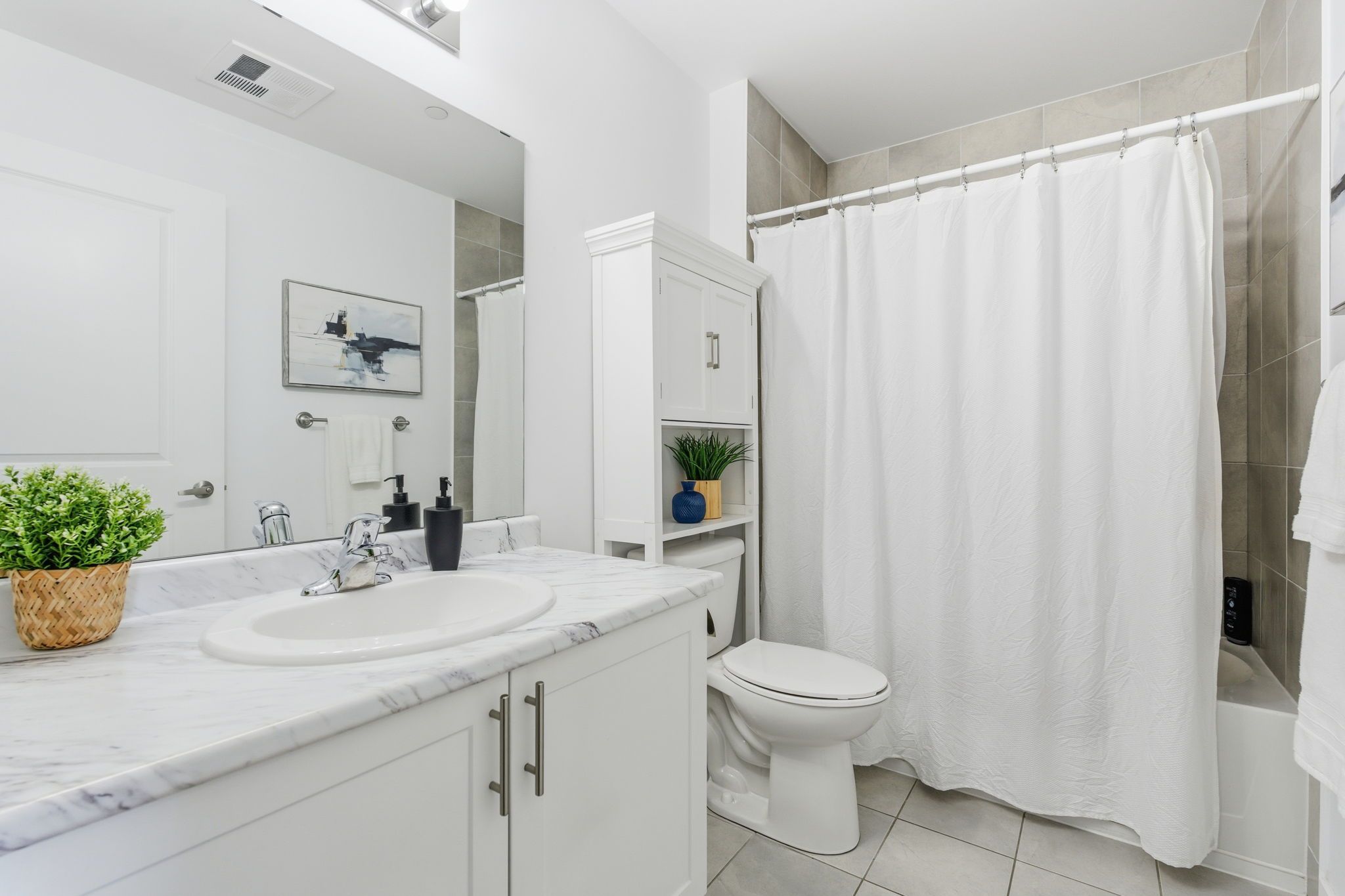 • Open-concept design featuring a modern kitchen with quartz countertops.