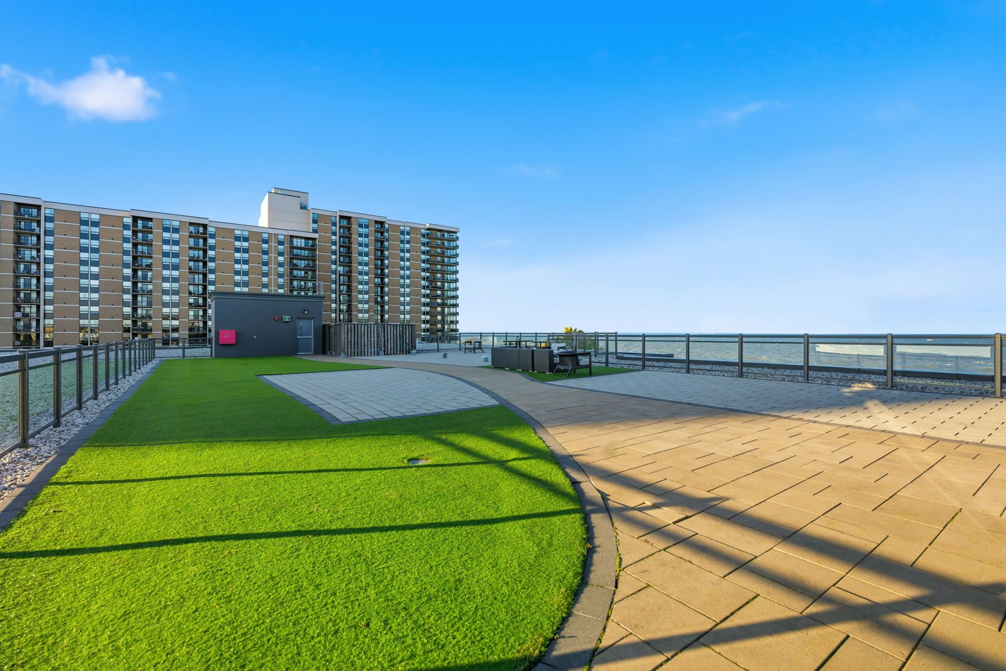 • Building amenities include a rooftop patio and party room.