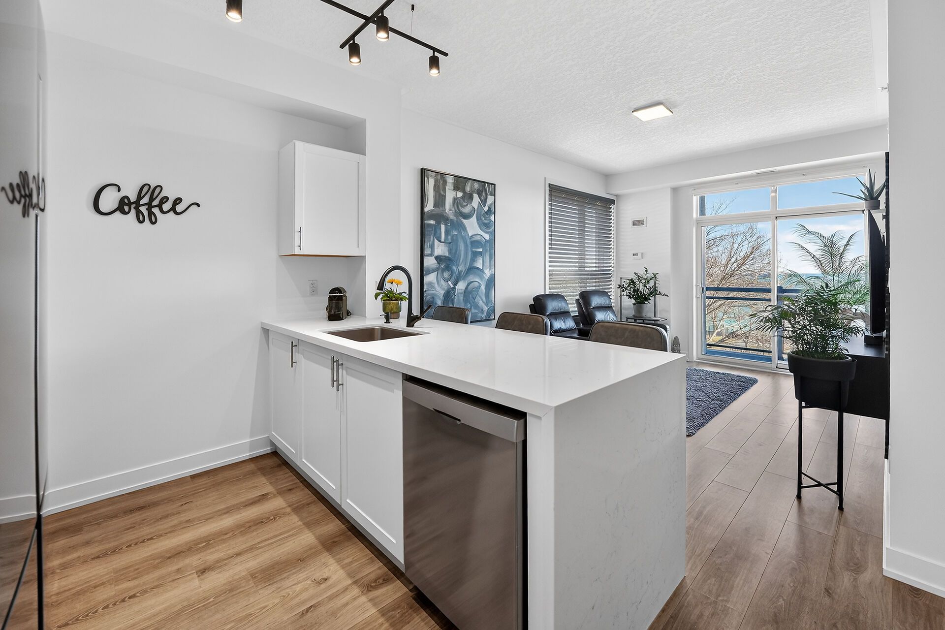 • Corner unit with unobstructed lake views and contemporary design.