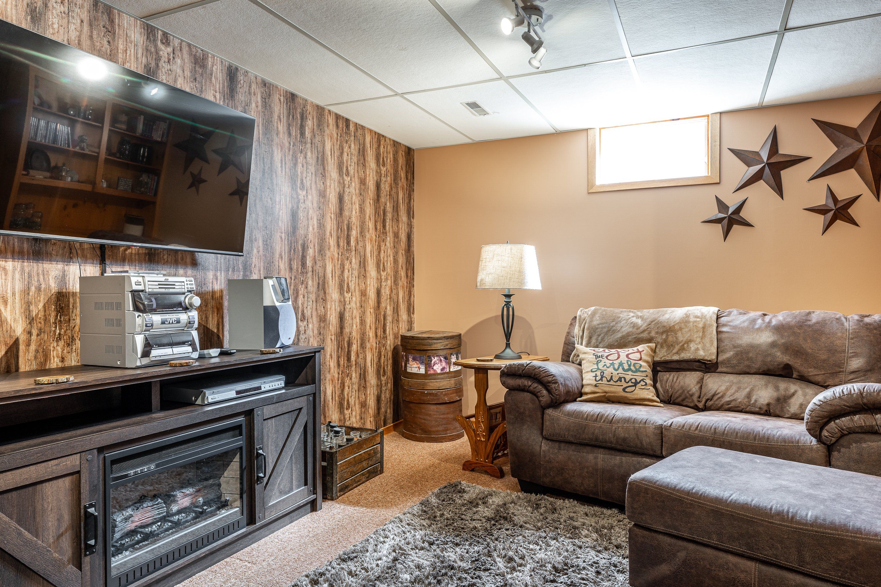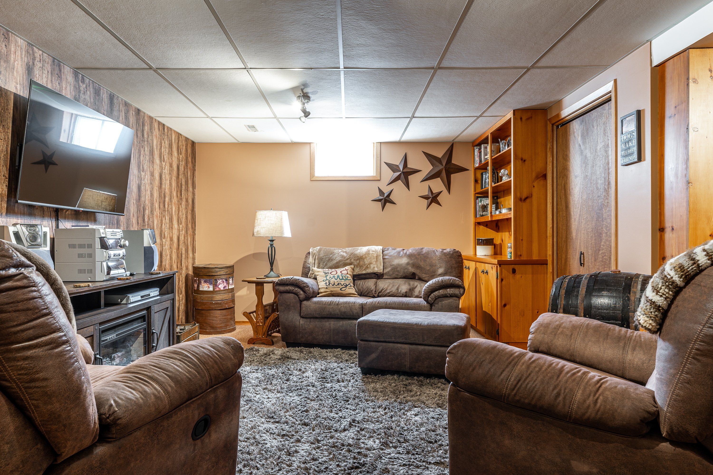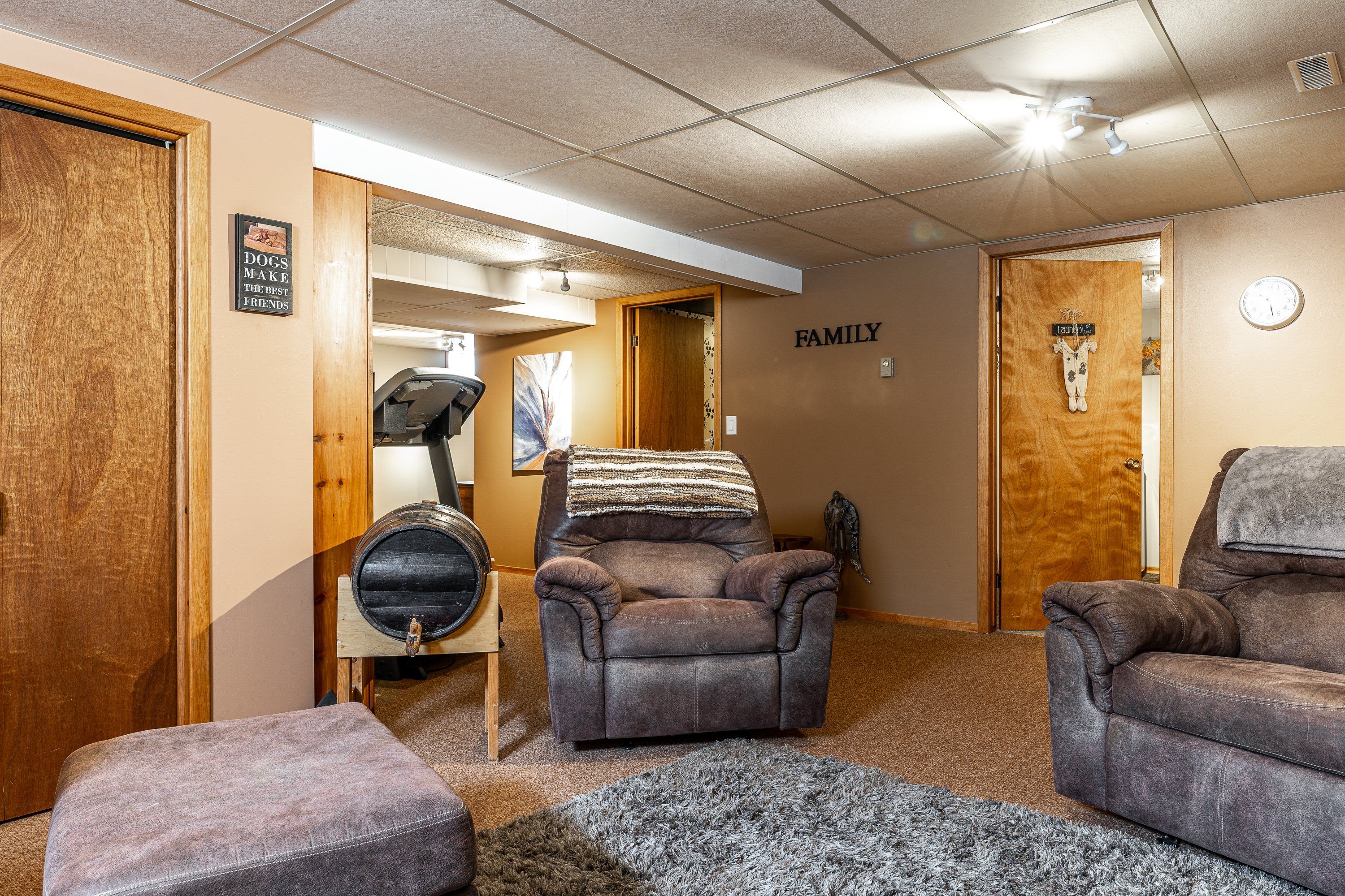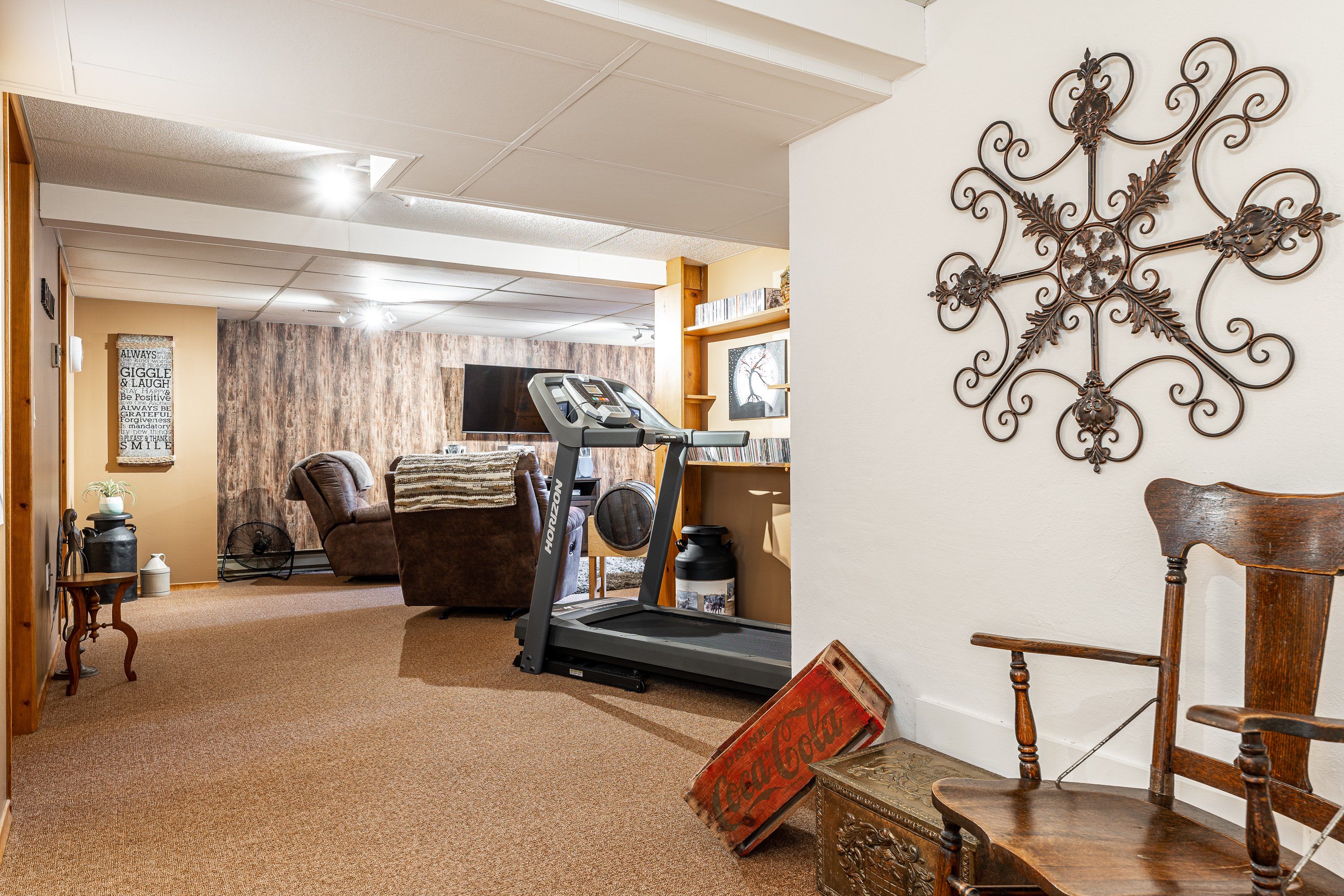 • Lower level offers a large rec room and versatile office space.