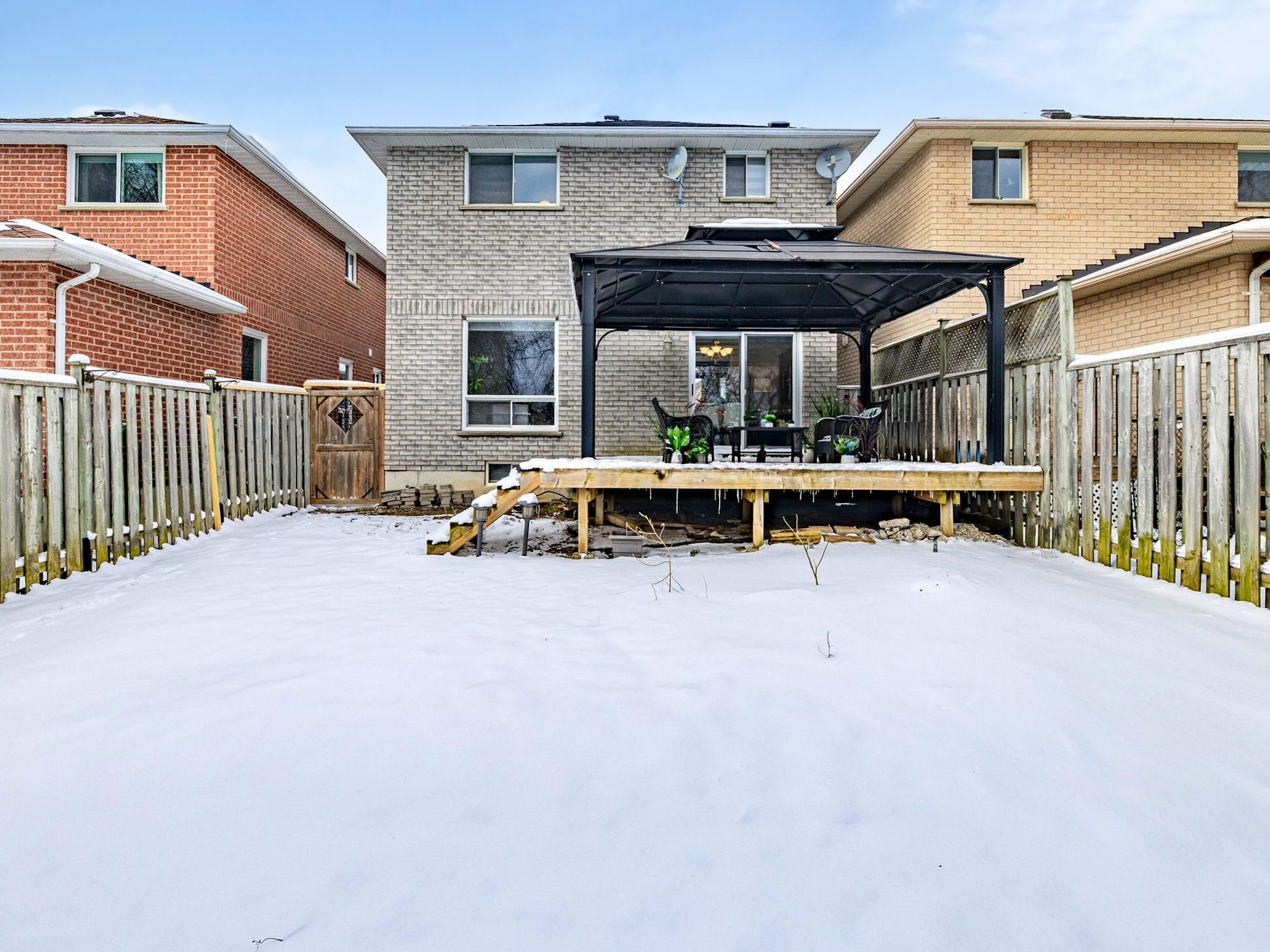 Meticulously maintained detached link in one of courtice's most sought-after neighborhoods- just a short stroll to fabulous shops, restaurants, cafes and amenities. Situated on a family friendly neighborhood and a short walk to school. This home offers exceptional curb appeal and a move-in-ready interior that's been thoughtfully updated from top to bottom. Step inside to a bright and inviting main floor thru the front porch. Your grand entry will take you through the cozy living room area. Gourmet kitchen comes with quartz countertop, breakfast island, more than plenty of cup board space and not to mention the mostly preferred gas stove. It only gets better since now you will walkout to the backyard on the large private deck, rather your own private oasis. This space is not only ideal for staying cool in the hot summer days underneath the gazebo, reading a good book or relaxing and even for hosting friends and family. Upper level offers three spacious bedrooms. Primary bedroom is complemented with a stand up shower in its own attached washroom and walk-in-closet. Did i mention its brand new zebra blinds through out the entire house, all new hardwood stairs and professionally painted with warm color. The fully finished basement which expands your living space with a recreation area or an area could be used as a home office the ideas are endless. Now comes the best part: a private area with an additional 4th bedroom, with its own 3 pc washroom and a kitchenette. Even perfect for guests, extended family or as an in law suite. Easy access from inside of house to garage. New pot lights thru out the whole exterior of the house. This home is truly a gem- lovingly cared for and move-in ready, with stylish updates and functional space throughout. Located in a quiet, family-friendly community with easy access to hwy 418/401, school, parks and scenic trails. This property combines small-town charm with commuter convenience. A rare opportunity to own a turn-key home!