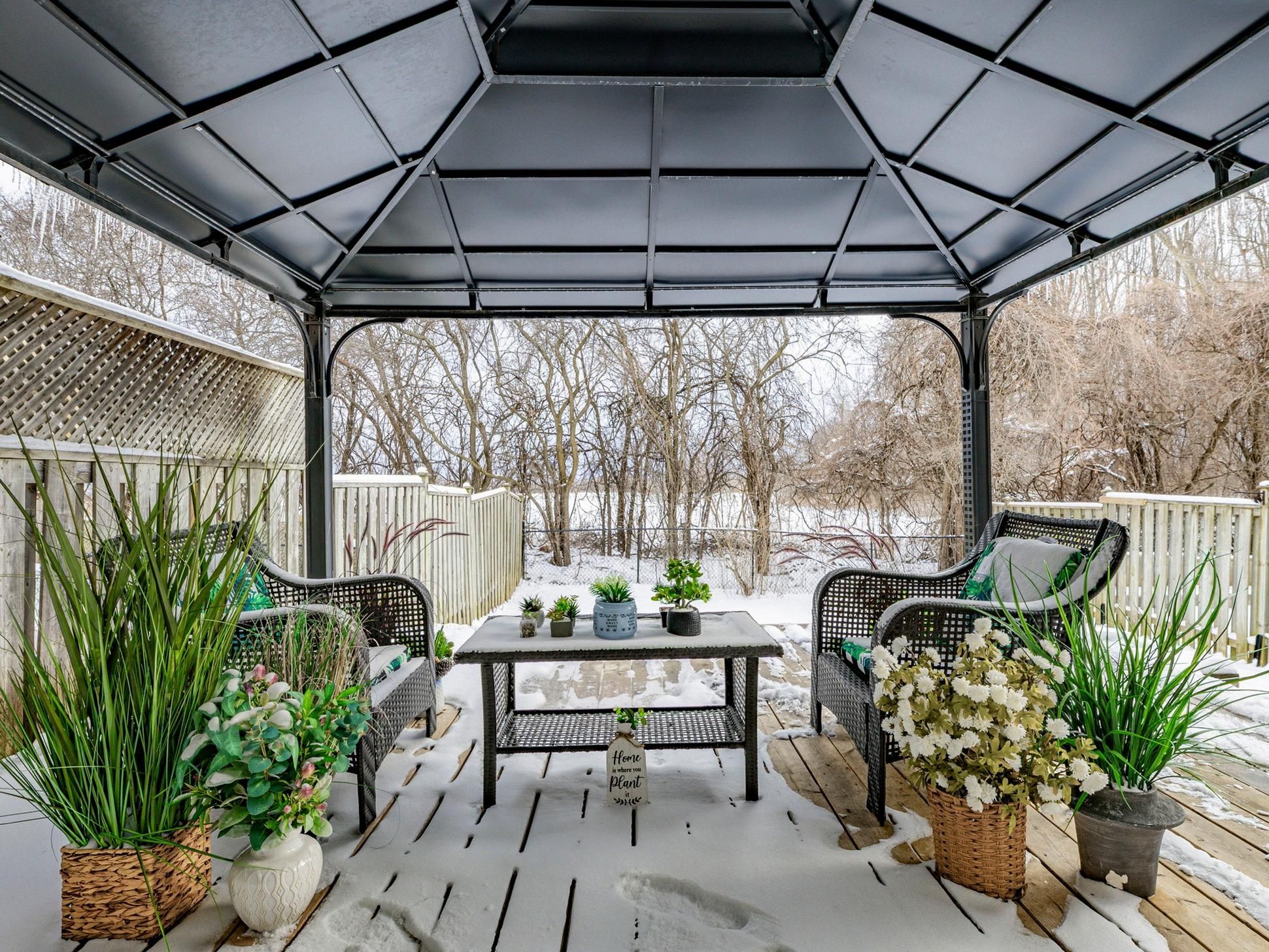 • Private backyard oasis with a large deck and gazebo for relaxation.