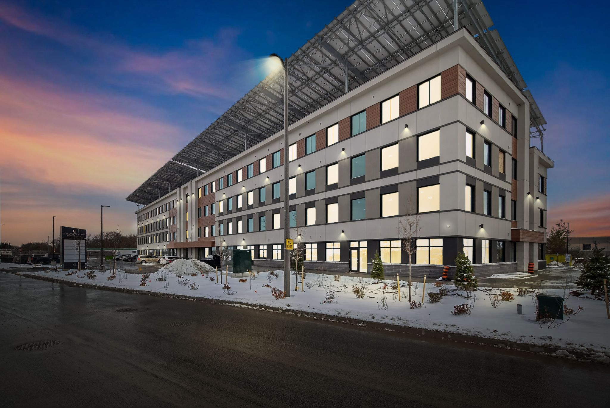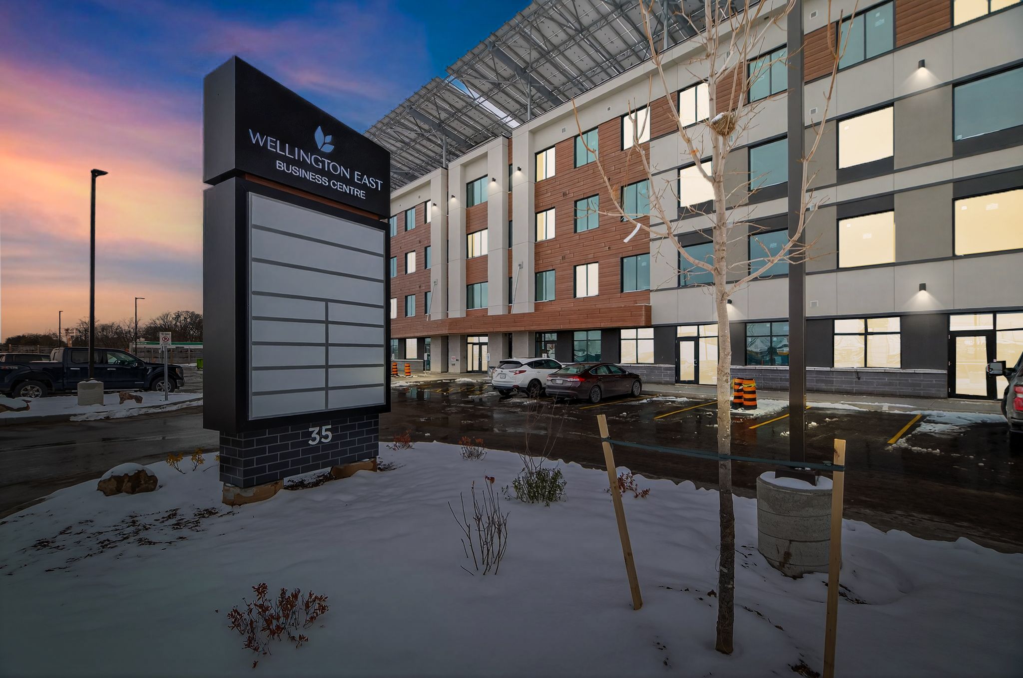 Discover an exceptional opportunity to own in howland green's newest wellington east business center-an innovative, eco-forward development designed to significantly reduce your carbon footprint and operating costs. This modern commercial unit is part of a groundbreaking, energy-positive project that produces more energy than it consumes, providing business owners and investors with remarkable long-term savings. Offering 1,014 sq. Ft. Of bright, open-concept space, the unit is fully built out and serves as an ideal canvas for a wide variety of business uses. The interior features soaring ceilings, pot lights, oversized windows that fill the space with natural light, and a rough-in for a kitchen to support your operational needs. A stylish two-piece bathroom, in-suite geothermal heat pump, and two dedicated underground parking spaces further enhance comfort and convenience. The building showcases modern design throughout, including tastefully finished common areas, two elevators, secure 24/7 fob access, and a strong focus on sustainability and efficiency. Zoned employment business park, this property offers a wide spectrum of permitted uses suitable for both owner-operators and investors. Uses include professional and medical clinics, daycare, dry cleaning distribution, fitness facilities, professional offices, retail and accessory retail, recreational centres, media and printing service establishments, as well as research and training facilities, among many other possibilities. Whether you're looking to establish your business in a forward-thinking, energy-positive environment or invest in a next-generation commercial development, this space delivers exceptional value, versatility, and ongoing savings. Modern, chic, and green - this is a commercial opportunity not to be missed.