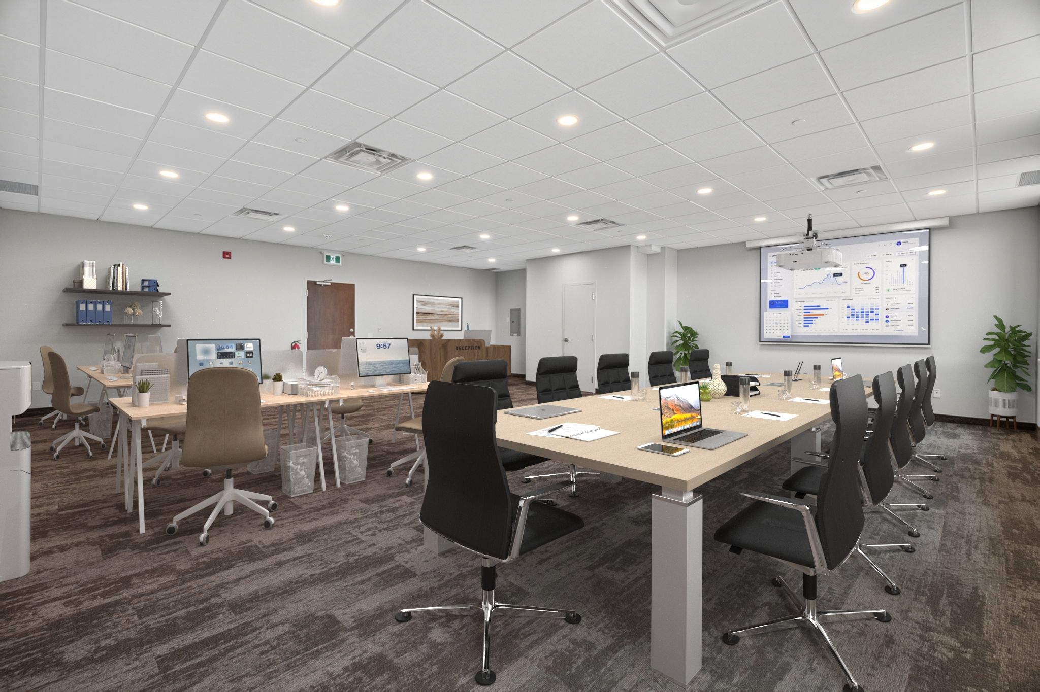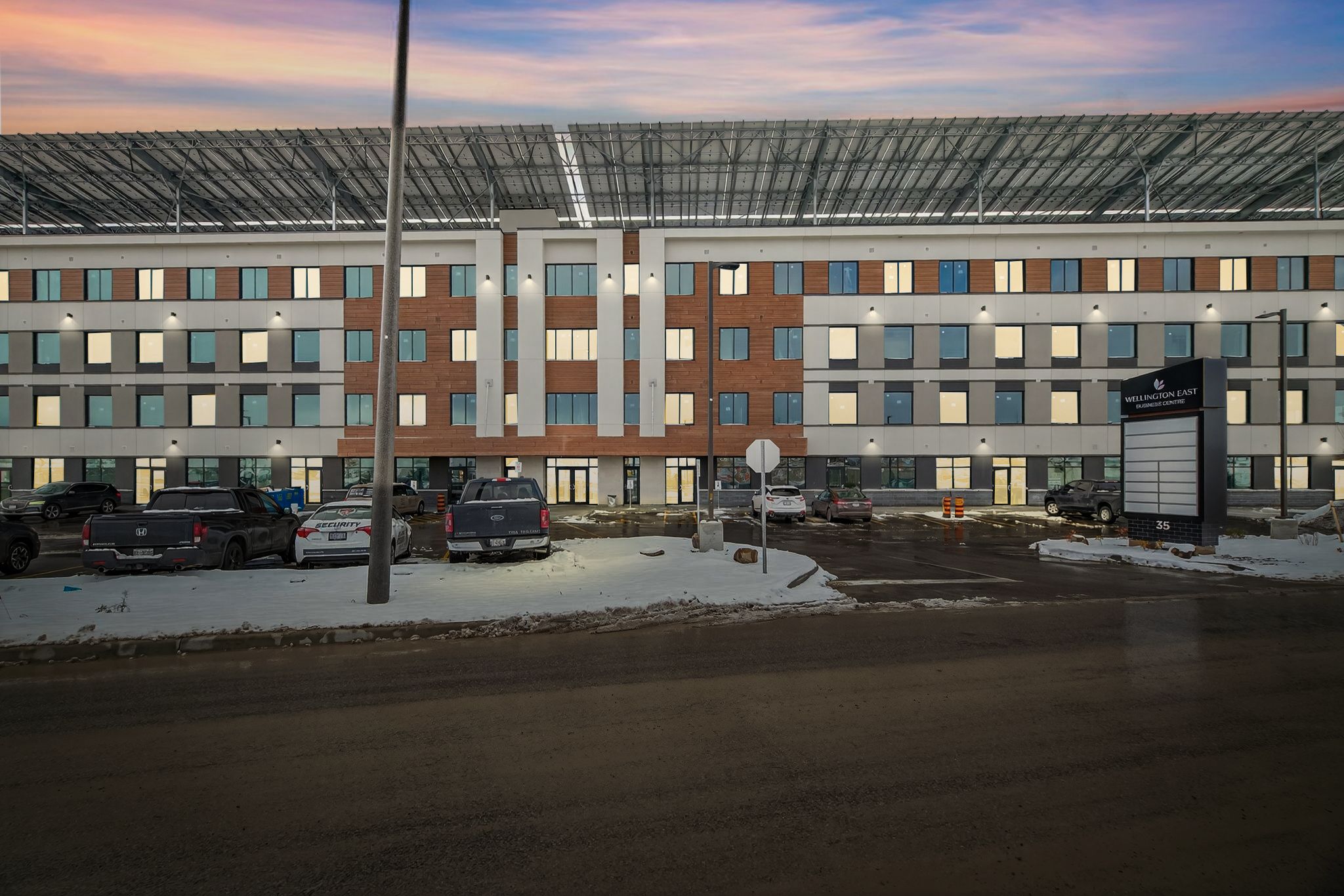 Discover a rare opportunity to acquire a fully leased, income-producing commercial asset in howland green's wellington east business centre-an innovative, energy-positive development designed for long-term stability and reduced operating costs. This 1,014 sq. Ft. Modern unit is secured by a strong long-term tenant with a 5 + 5 + 5 year lease in place, offering predictable cash flow with scheduled rental increases. The lease structure provides investors with exceptional security and built-in growth, making this an ideal hands-off investment in today's uncertain market. Part of a forward-thinking, energy-positive building that produces more energy than it consumes, the property benefits from significantly lower operating costs-enhancing net returns and long-term value. The building features premium construction and design, including geothermal heating and cooling, two elevators, secure 24/7 fob access, and professionally finished common areas. The unit itself is fully built out with high-end finishes, including soaring ceilings, pot lights, oversized windows, a two-piece washroom, and two dedicated underground parking spaces-providing strong tenant appeal and long-term retention. Strategically zoned employment business park, this asset supports a wide range of uses, ensuring continued demand and flexibility for future leasing. In a world of economic uncertainty, this property offers a safe, stable investment backed by a long-term lease, gradual rental growth, and a future-focused, cost-efficient building. A turnkey opportunity delivering security, sustainability, and strong returns. Don't miss this opportunity!