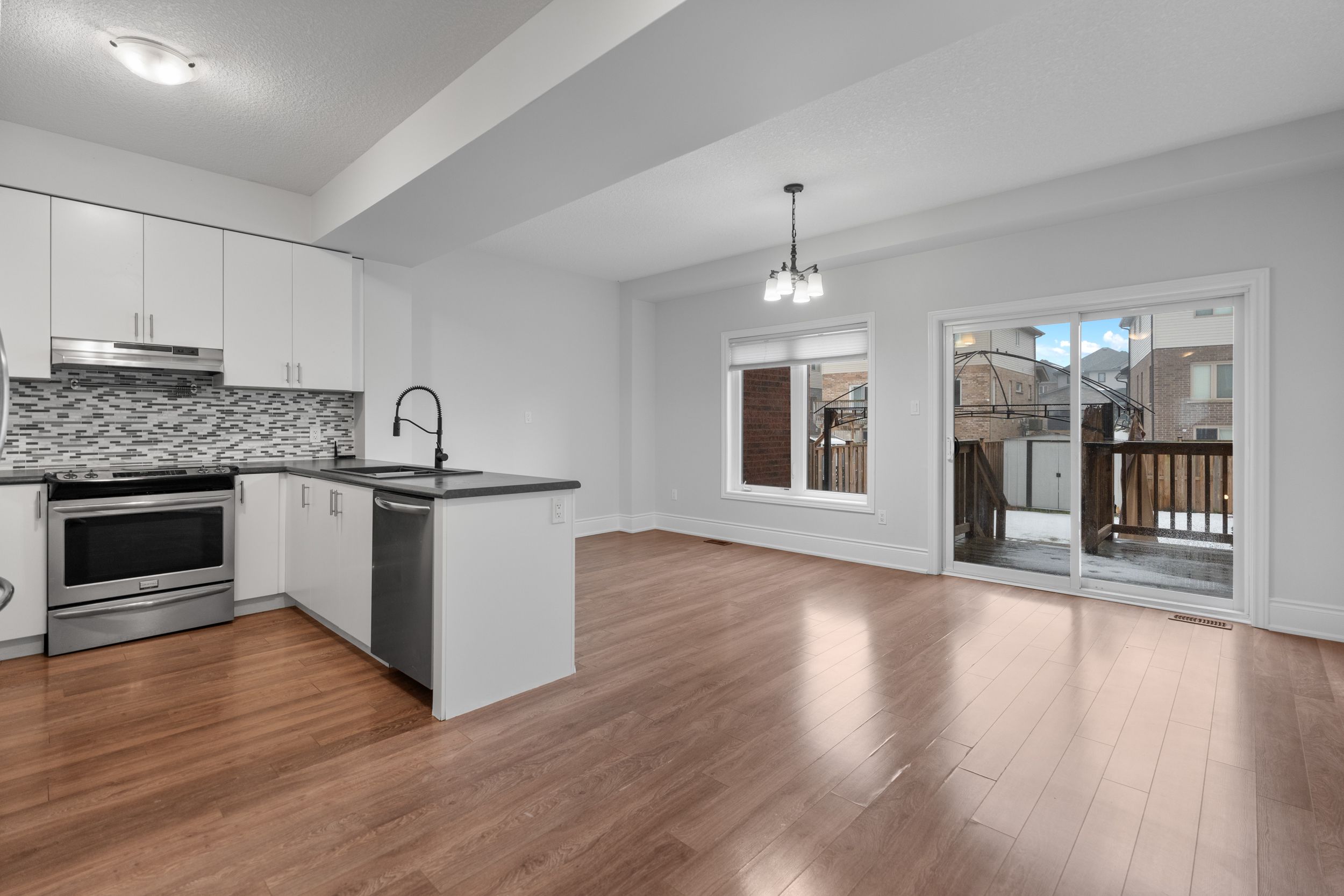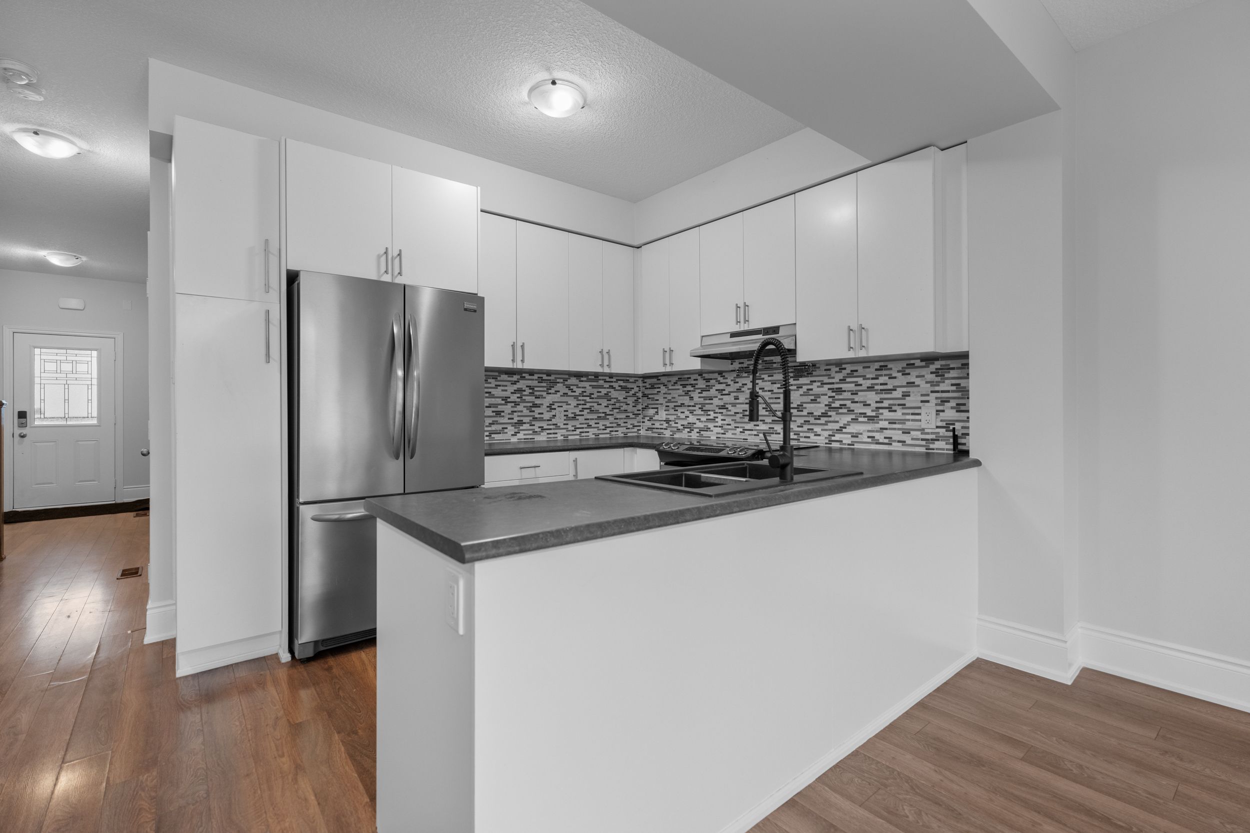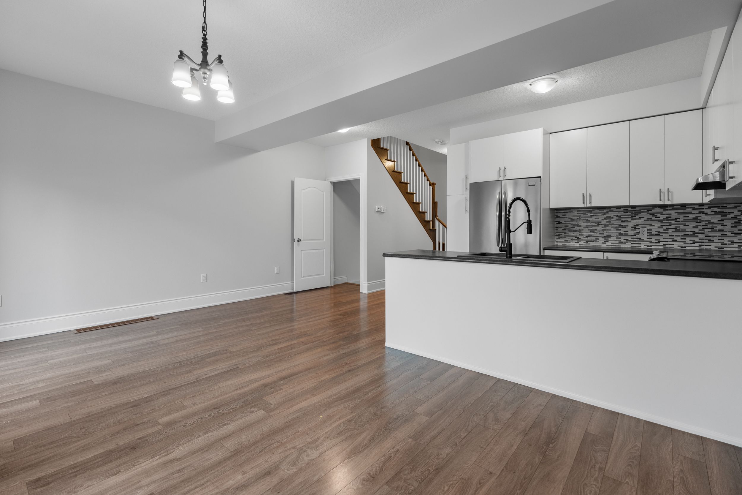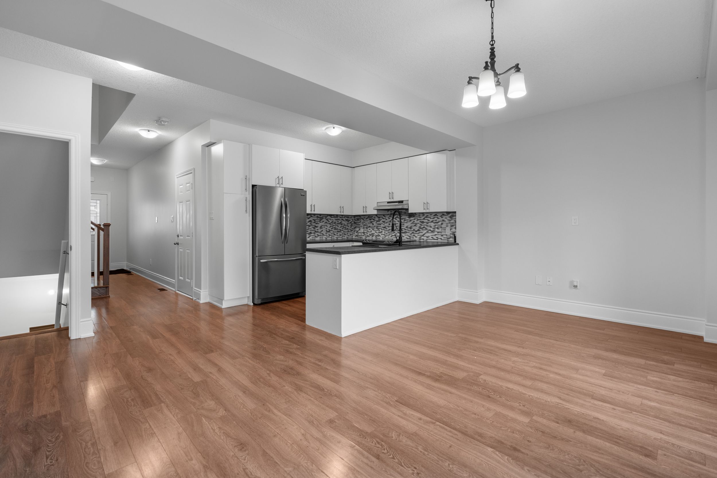 A beautifully designed and maintained townhouse perfect for a small family and working professionals. It features 3 bedrooms, an open concept great room and a finished basement for additional living space. The backyard is fully fenced and it offers a shed with a pre-owned lawn mower by the landlord. This house faces a pond and is walking distance from a park. Centrally located with access to a bus route.