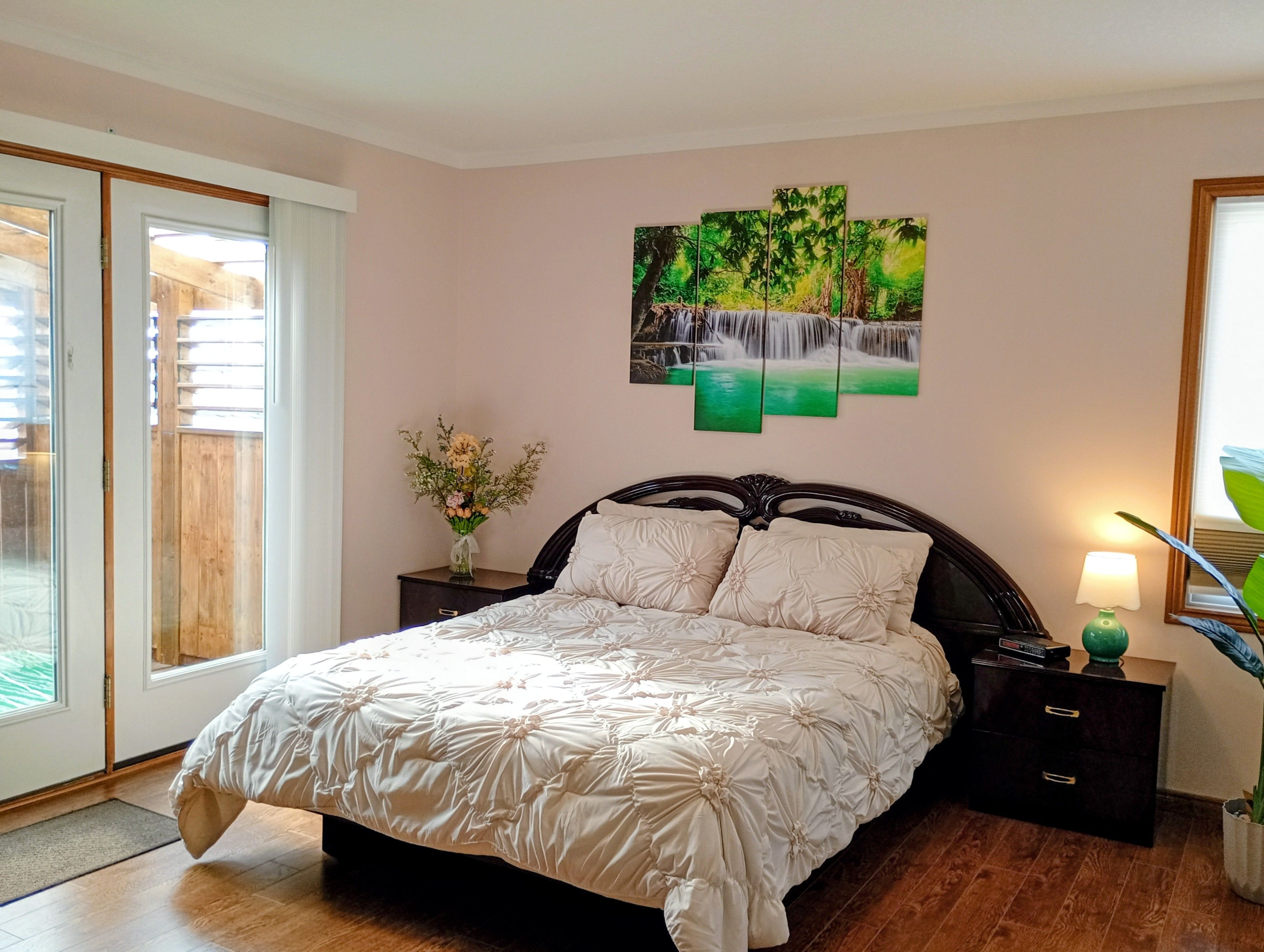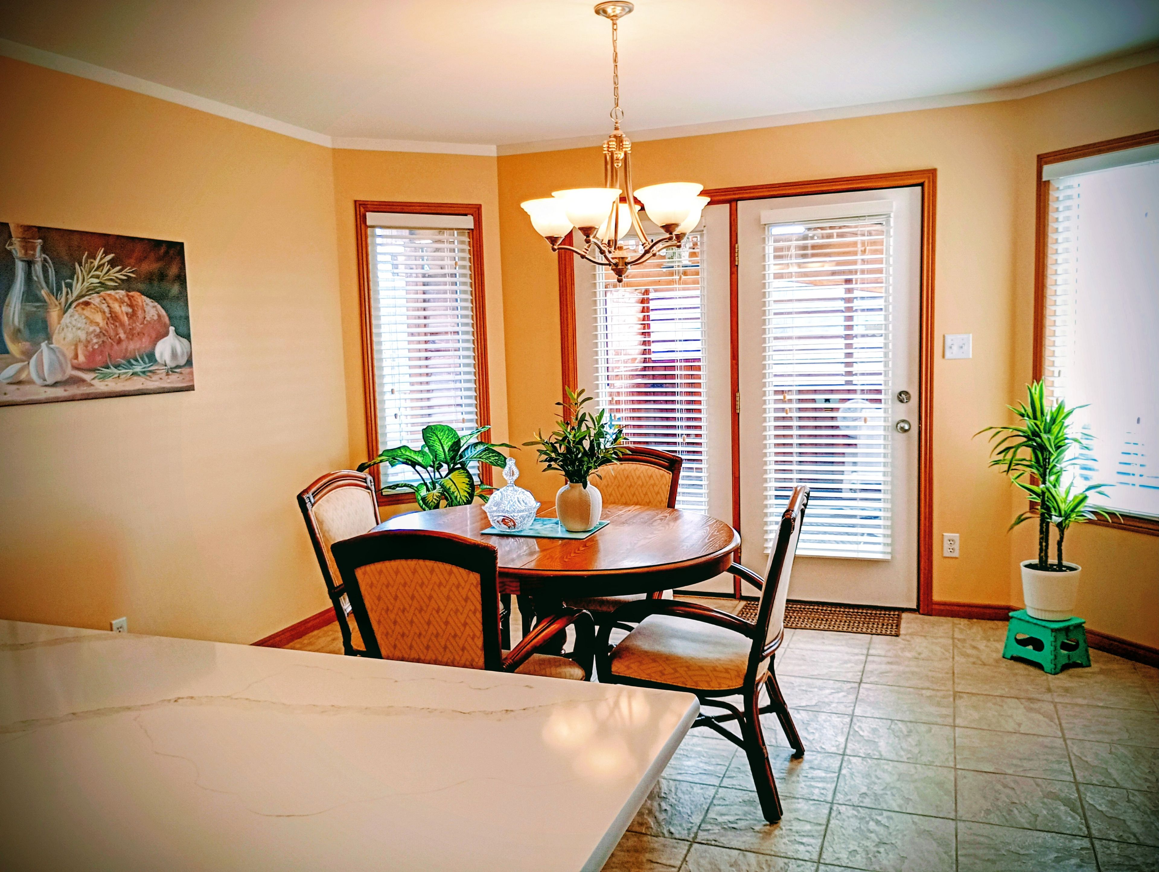 • Spacious kitchen with quartz countertops and direct access to an enclosed deck.