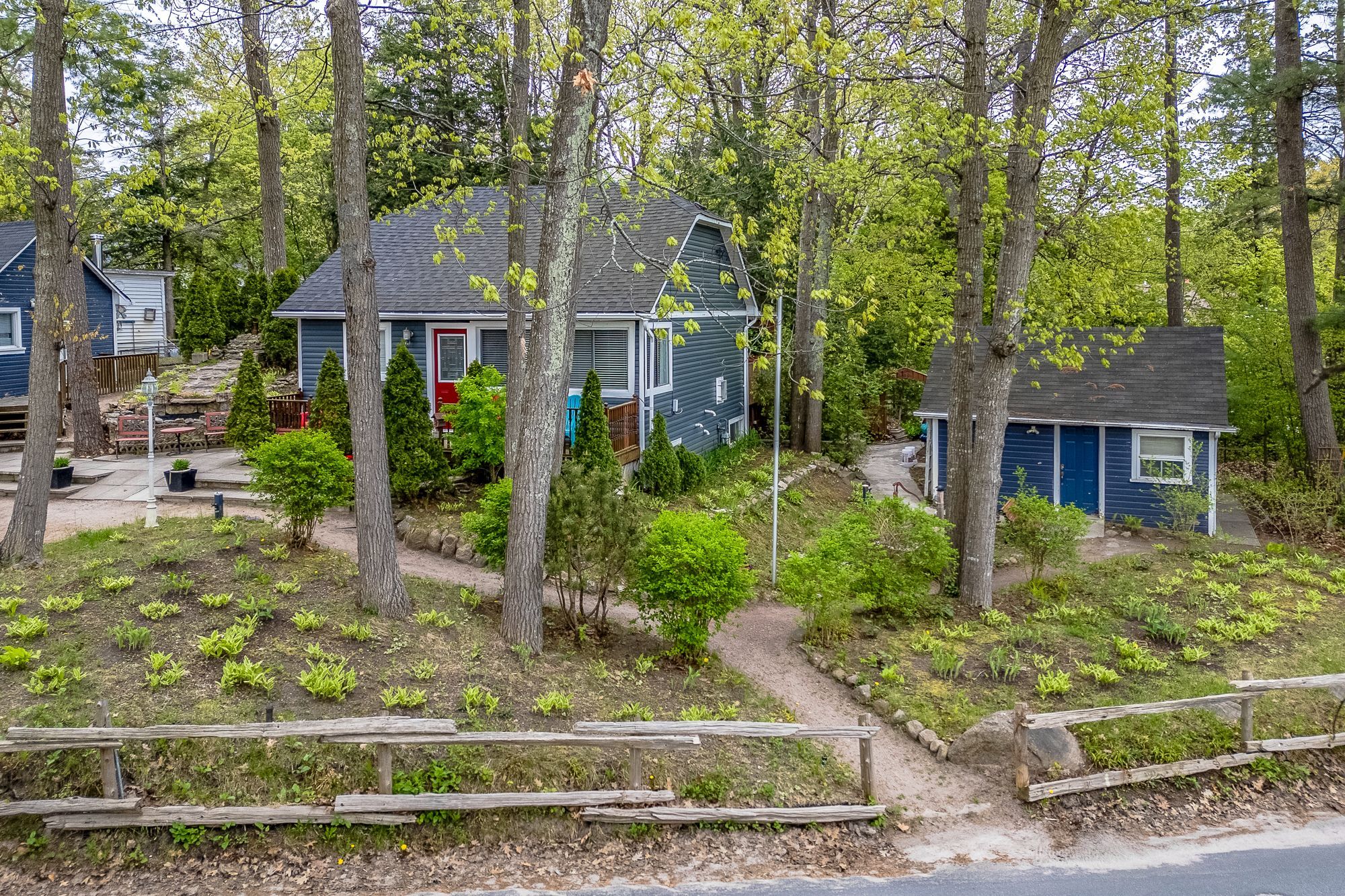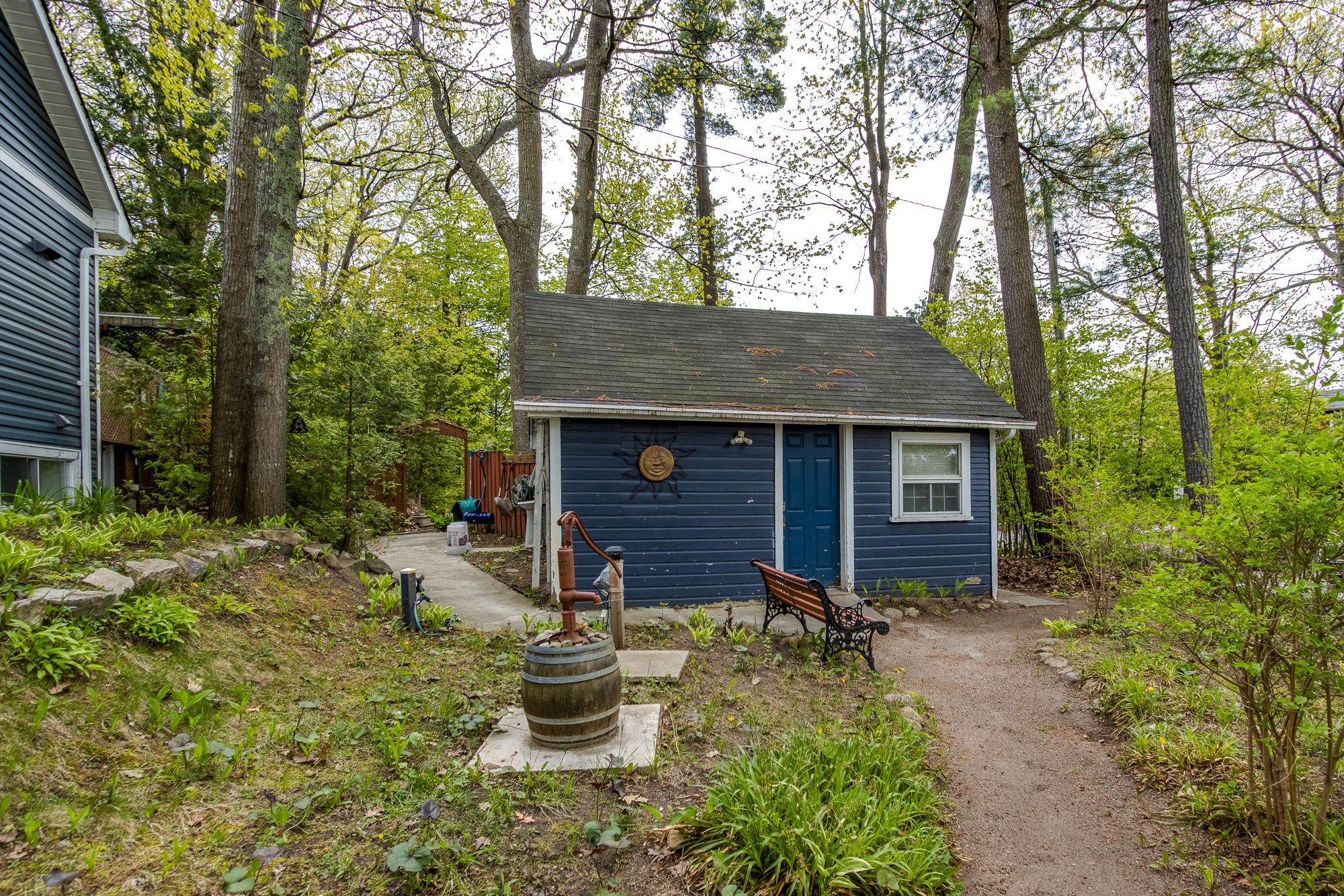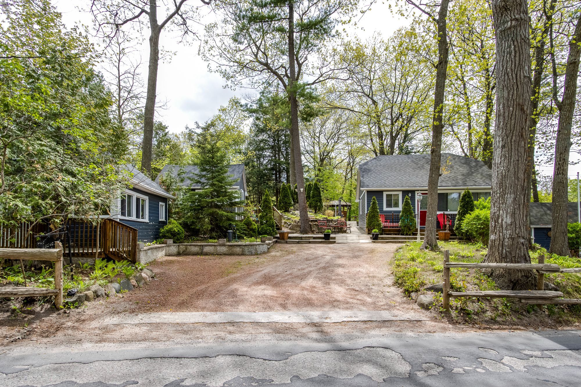 This unique 4-season property encompasses multiple structures & is situated across from the sandy beaches of georgian bay. Just a 4-minute walk to the popular balm beach area which presents a sandy beach swimming area, stores, & restaurants. The upper floor of the main house /cottage is currently storage but could be used as a guest area or whatever might suit your personal needs. The main floor provides an open concept lr/dr/kitchen, 2 bedrooms & 1 full bathroom. Walkout to a caribbean style outdoor bar area and bbq hut adjacent to the patio. There are 2 similar cottages, both with an open kitchen/lr design, upstairs open loft, full 3pc bathroom, plus a wood stove for family/friends to enjoy their own accommodation while visiting. This property also includes a large workshop with a woodstove, garden shed, 2nd driveway, and a beautiful garden area with a waterfall to a pond. This is a must-see property to appreciate the large treed lot and all of the amenities and the opportunities it can offer.
