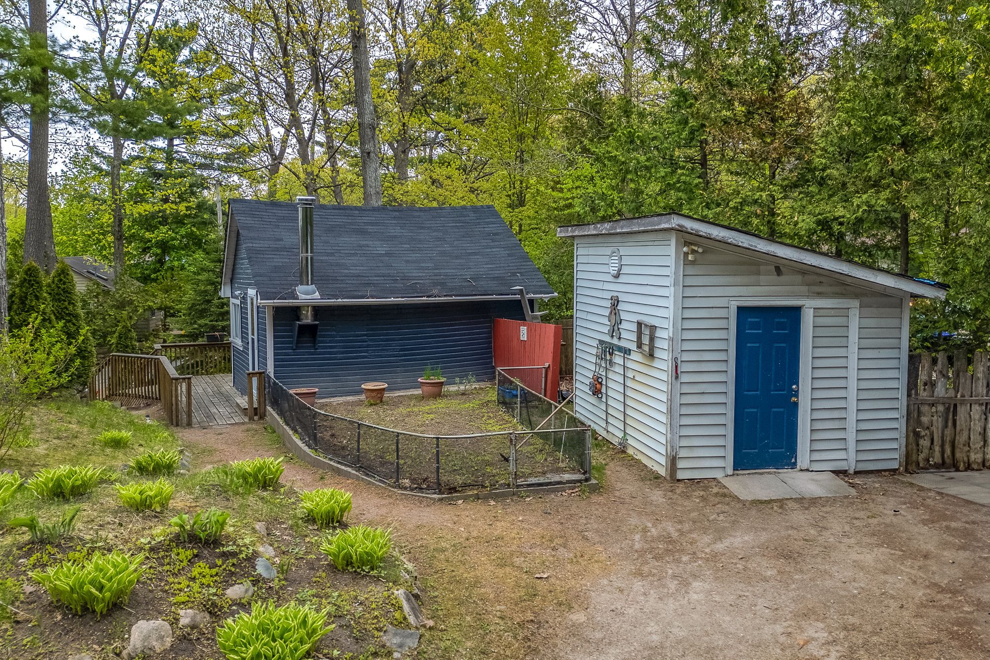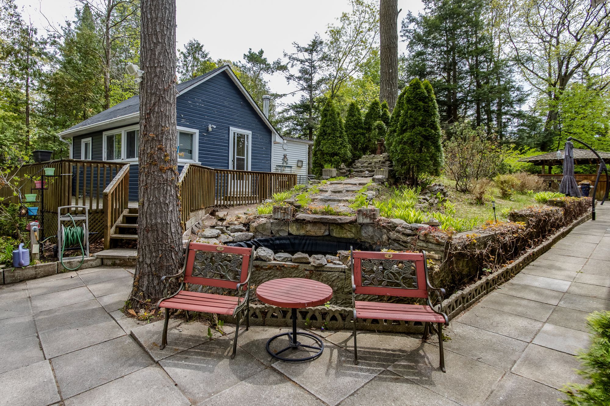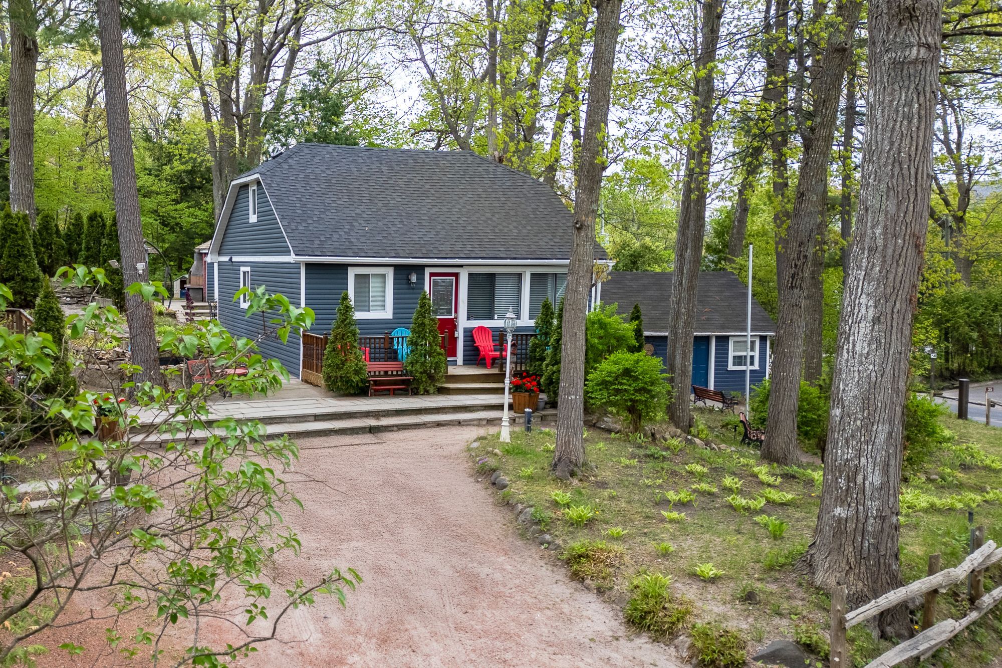 This unique 4-season property encompasses multiple structures & is situated across from the sandy beaches of georgian bay. Just a 4-minute walk to the popular balm beach area which presents a sandy beach swimming area, stores, & restaurants. The upper floor of the main house /cottage is currently storage but could be used as a guest area or whatever might suit your personal needs. The main floor provides an open concept lr/dr/kitchen, 2 bedrooms & 1 full bathroom. Walkout to a caribbean style outdoor bar area and bbq hut adjacent to the patio. There are 2 similar cottages, both with an open kitchen/lr design, upstairs open loft, full 3pc bathroom, plus a wood stove for family/friends to enjoy their own accommodation while visiting. This property also includes a large workshop with a woodstove, garden shed, 2nd driveway, and a beautiful garden area with a waterfall to a pond. This is a must-see property to appreciate the large treed lot and all of the amenities and the opportunities it can offer.