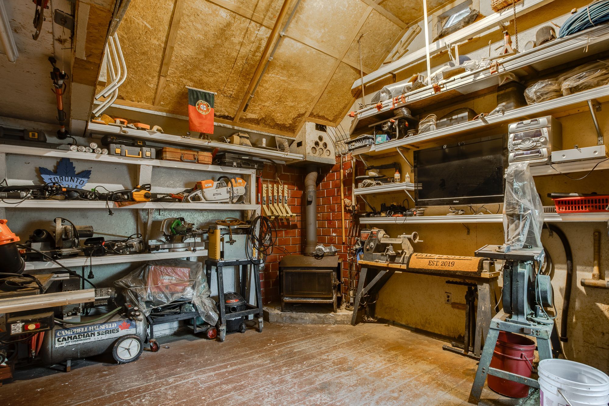 • Large workshop, beautiful garden area with waterfall, and pond.
