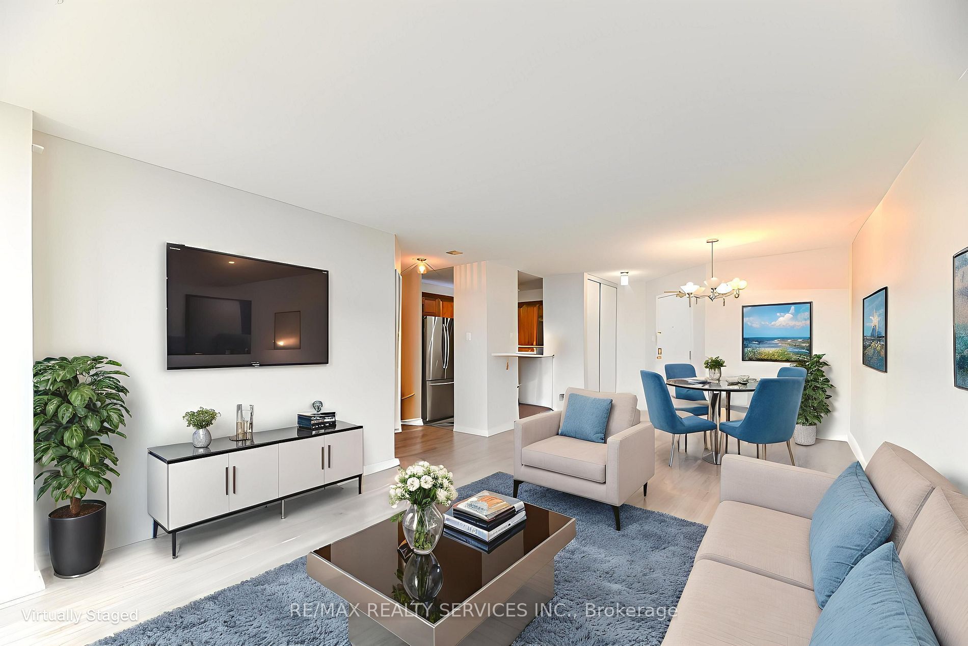 Enjoy the best of urban living in this beautifully renovated corner unit in the heart of mississauga, featuring 2 spacious bedrooms and 2 modern bathrooms, great size living room and dining area in an open concept design ideal for entertaining and everyday living. Floor-to-ceiling windows provide a stunning, unobstructed south-east panoramic view, bathing the home in natural light. Freshly painted main living area for a bright and inviting atmosphere updated kitchen with elegant granite countertops and stainless steel appliances newer laminate flooring throughout for a contemporary feel renovated main bathroom and a luxurious 4-piece ensuite in the primary bedroom exceptional building amenities: indoor pool for year-round relaxation exercise room to support an active lifestyle and more additional amenities to enhance your living experience. Great location close to saigon park enjoy a one km trail, outdoor exercise equipment, public art, all major amenities shopping.