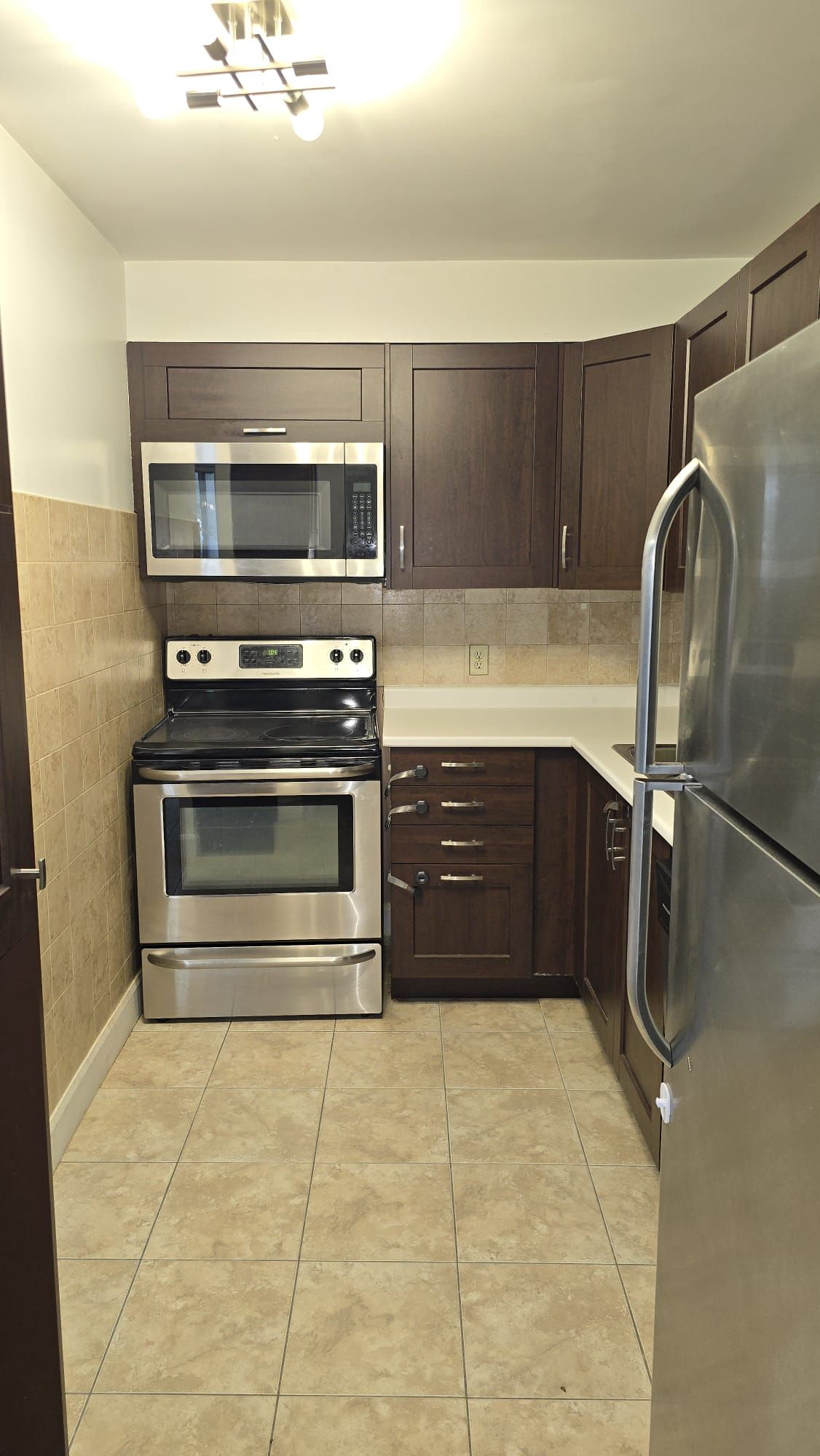 • Good-size bedrooms and modern kitchen with stainless appliances.