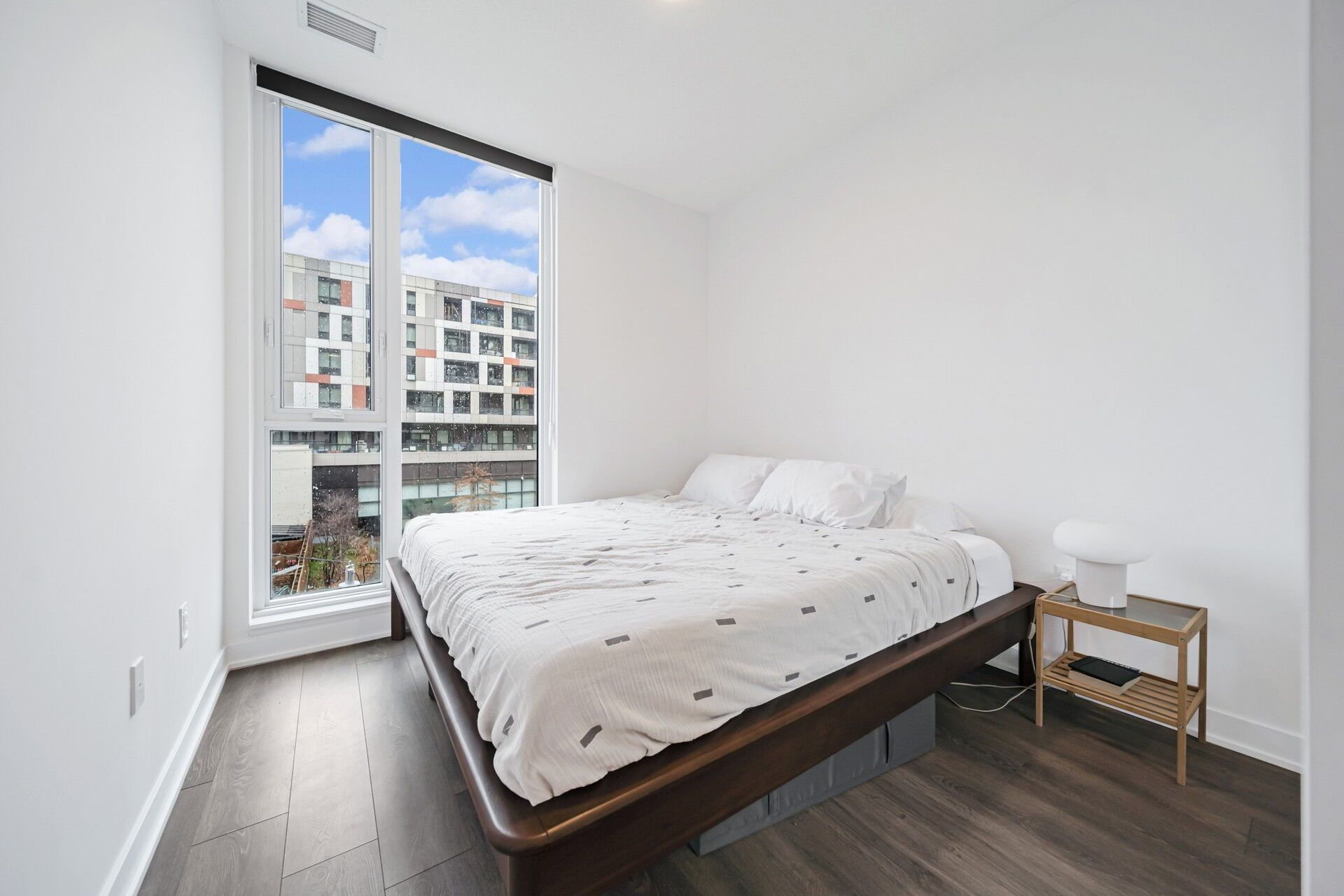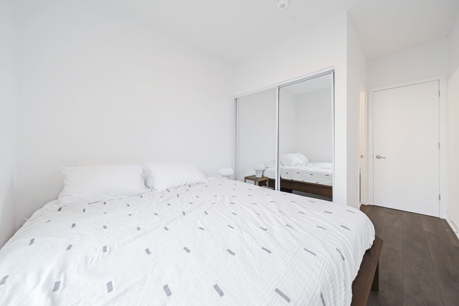 Welcome to this beautifully designed suite in the prestigious condo building by daniels. This 1-bedroom + den (can be used as a 2nd bedroom, kids' room, or office) with 2 full bathrooms offers the perfect blend of style, comfort, and functionality - ideal for a working professional or couple seeking modern downtown living in a quiet pocket of the city. The bright and spacious layout features floor-to-ceiling windows with roller blinds, 9-ft ceilings, and fresh contemporary finishes throughout. Enjoy a sleek modern kitchen with quartz countertops, custom backsplash, quartz island, modern cabinetry, state-of-the-art appliances, and a full-size washer and dryer. The primary bedroom includes a solid door and a 4-piece ensuite, providing both privacy and convenience. Located in the vibrant, newly transformed regent park neighbourhood, just steps to toronto metropolitan university (tmu), george brown college, toronto eaton centre, grocery stores, retail, dining options, public transit, and beautiful nearby parks - offering the best of urban living and convenience. Residents enjoy access to luxurious amenities, including a concierge, fitness centre, rooftop terrace with bbq, party room, meeting room, kids' zone, and children's play area. Includes: parking & locker. Come see it - you'll be impressed!
