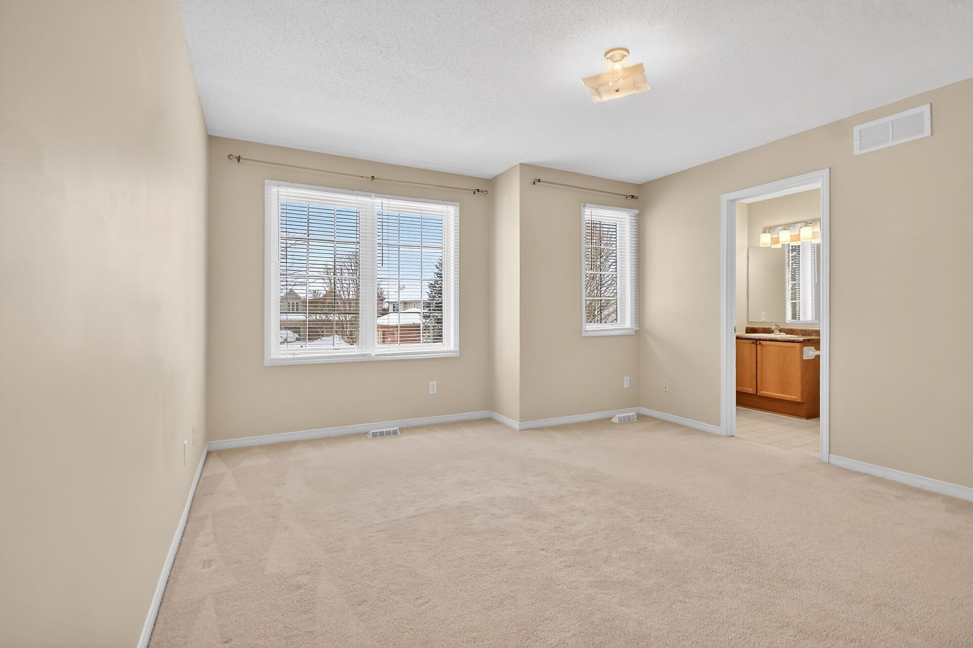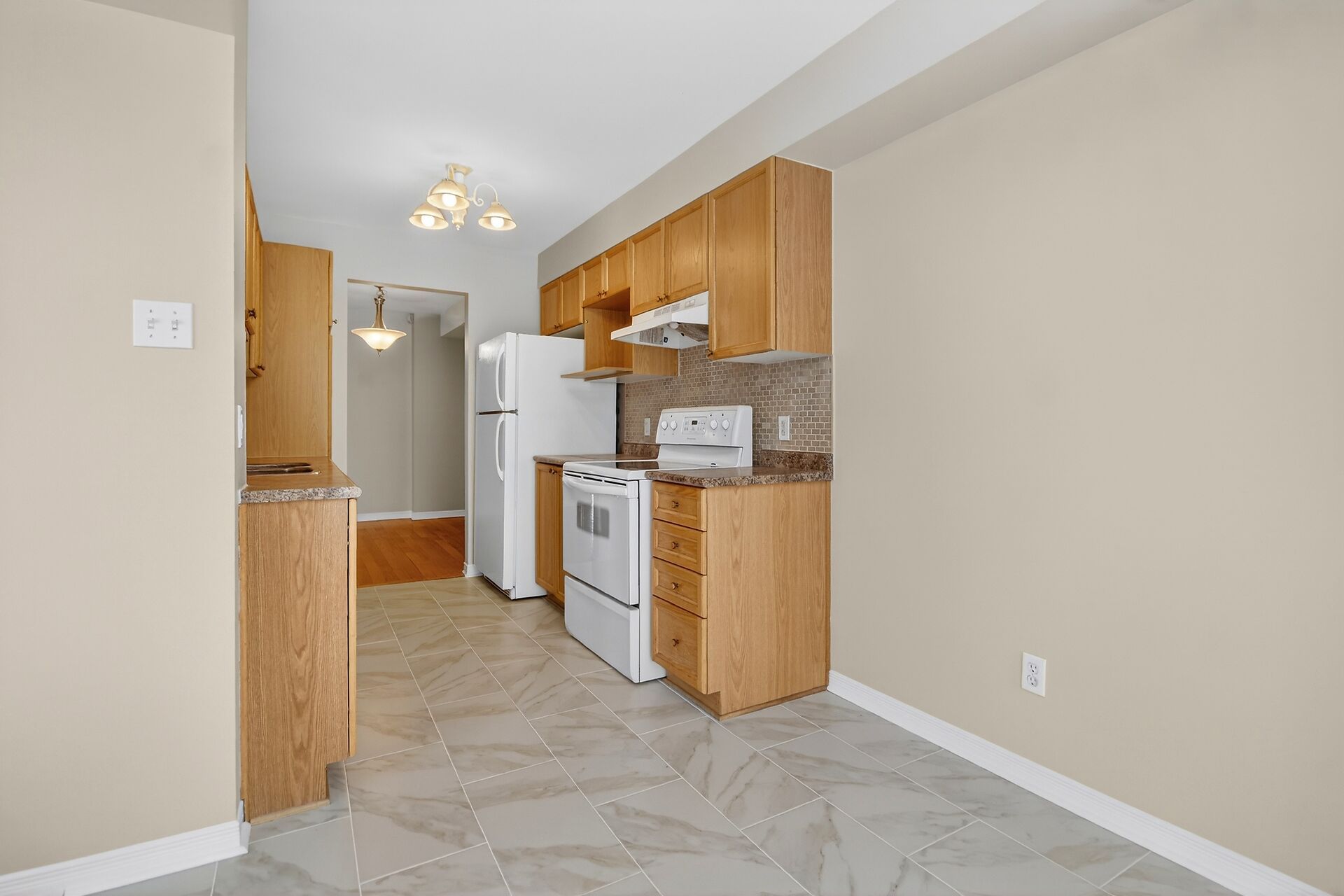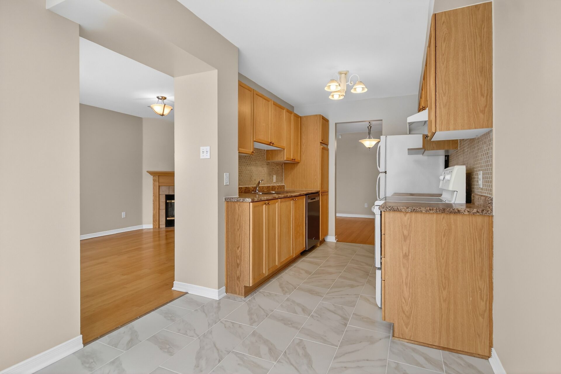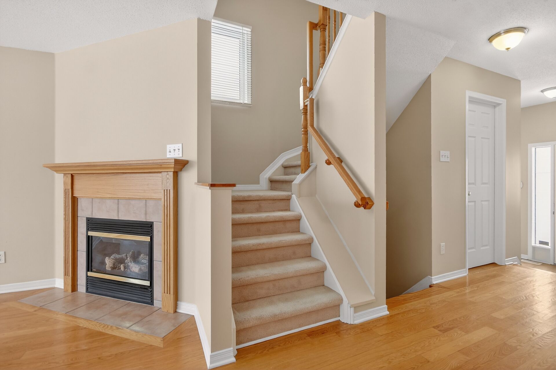 This end unit townhome shines bright like a diamond. Meticulously maintained throughout, this pristine home offers 3 bedrooms and 2. 5 bathrooms. As you enter, you are greeted by a tiled foyer & powder room. Step up to the main level with hardwood floors in the dining & living room which also features a corner gas fireplace. The heart of any home is the kitchen and this one will not disappoint. It has newly tiled floor, plenty of cabinet and counter space, and a convenient eating area with patio door leading to the partially fenced yard. The second level hosts a large primary bedroom with a walk-in closet and private ensuite bathroom. Upstairs also includes two secondary bedrooms and the main bathroom. Venture downstairs to find a massive finished basement with a large recreation room that's perfect for the whole family. This level also includes a laundry room and plenty of storage space. The whole house has been professionally painted and it's ready to be move-in. Applicants must have a recent credit score from equifax, employment letter and two recent pay stubs submitted with a complete rental application.