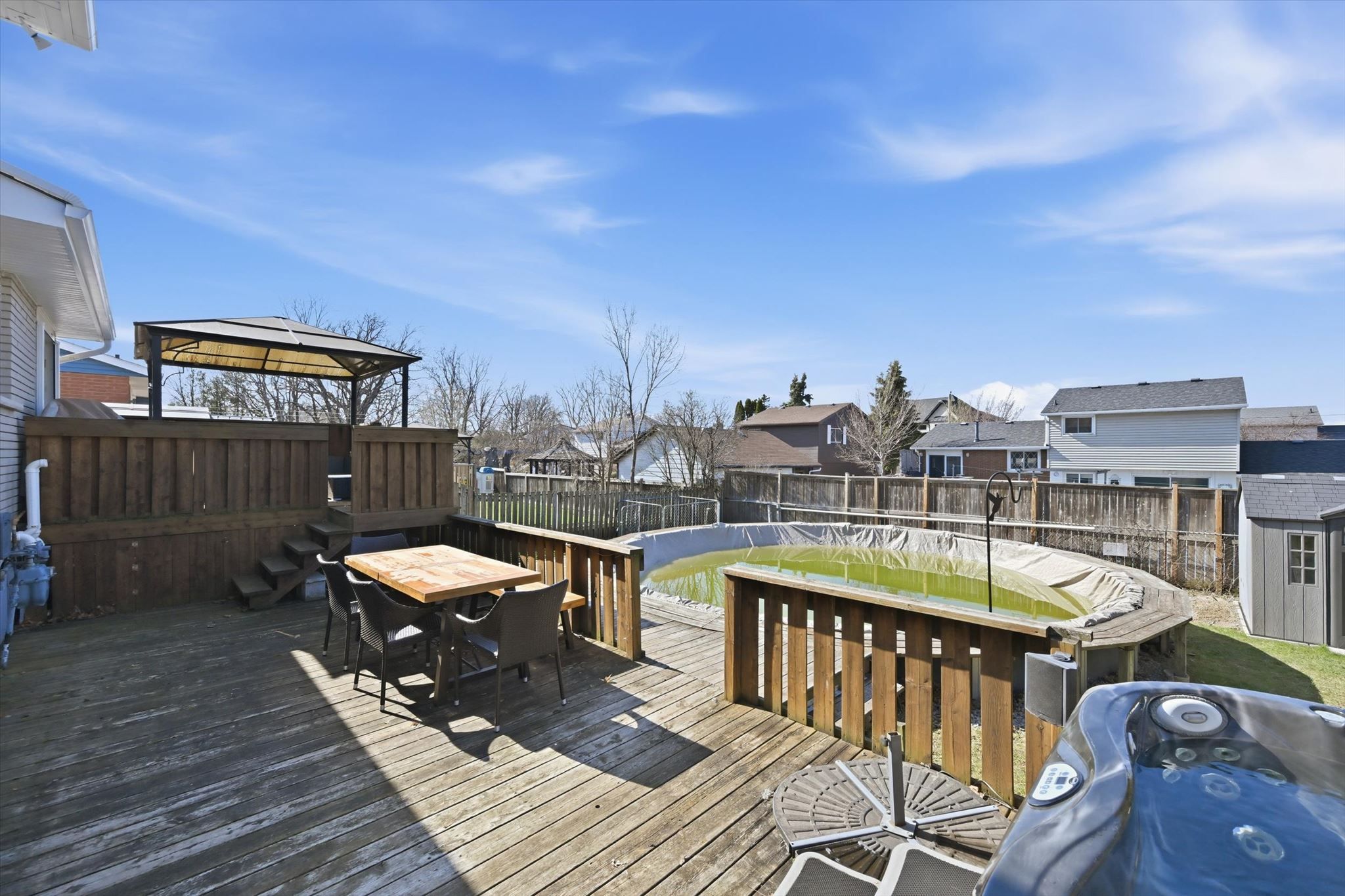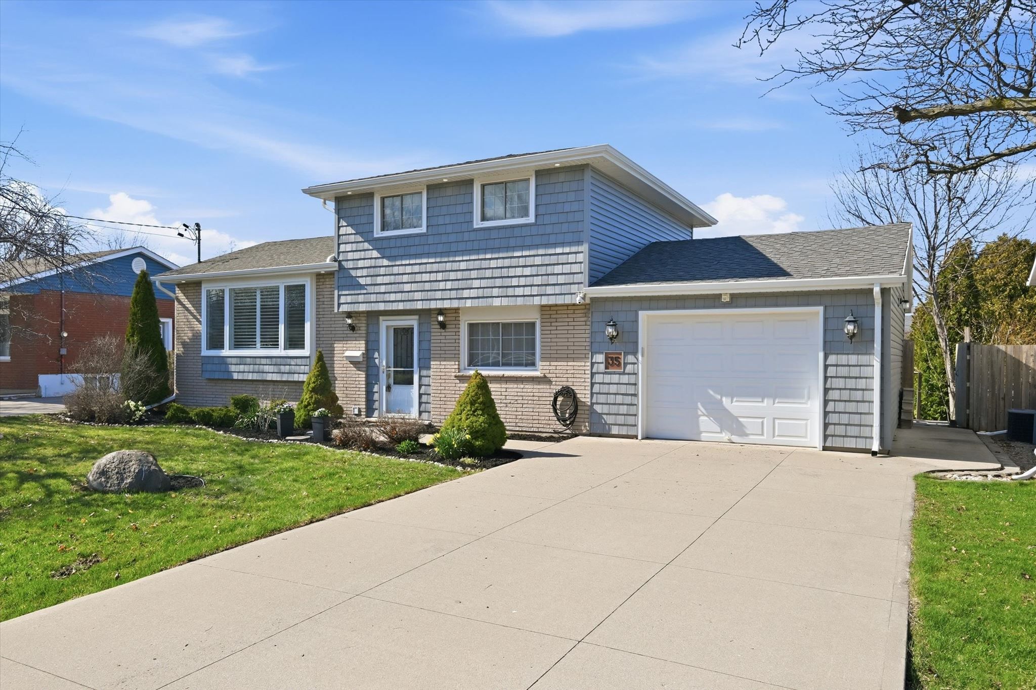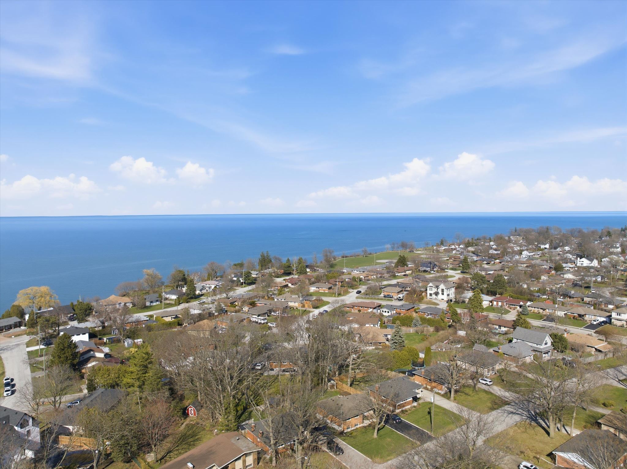 Welcome to grimsby beach! Beautifully maintained 4-level split with extensive updates and a bird's-eye view of lake ontario. This inviting home offers 3 bedrooms, including one conveniently located on the main floor, 2 renovated bathrooms, and main-level laundry for added ease. Relax in the spacious recreation room featuring a stylish bar, and enjoy ample storage in the crawlspace. A double concrete driveway leads to the single-car garage. The fully fenced backyard is designed for entertaining and family living, complete with tiered decking, gazebo, on-ground pool, hot tub, and shed, perfect for a growing family. Updates include exterior siding, a living room picture window with california shutters, furnace and central air, on-demand hot water heater, 200 amp service, renovated main bathroom, updated kitchen, and fresh paint throughout. Situated in a family-friendly neighbourhood close to shopping, parks, schools, and offering easy highway access to niagara and toronto, all just steps from lake ontario. Make your move today, this one won't last!