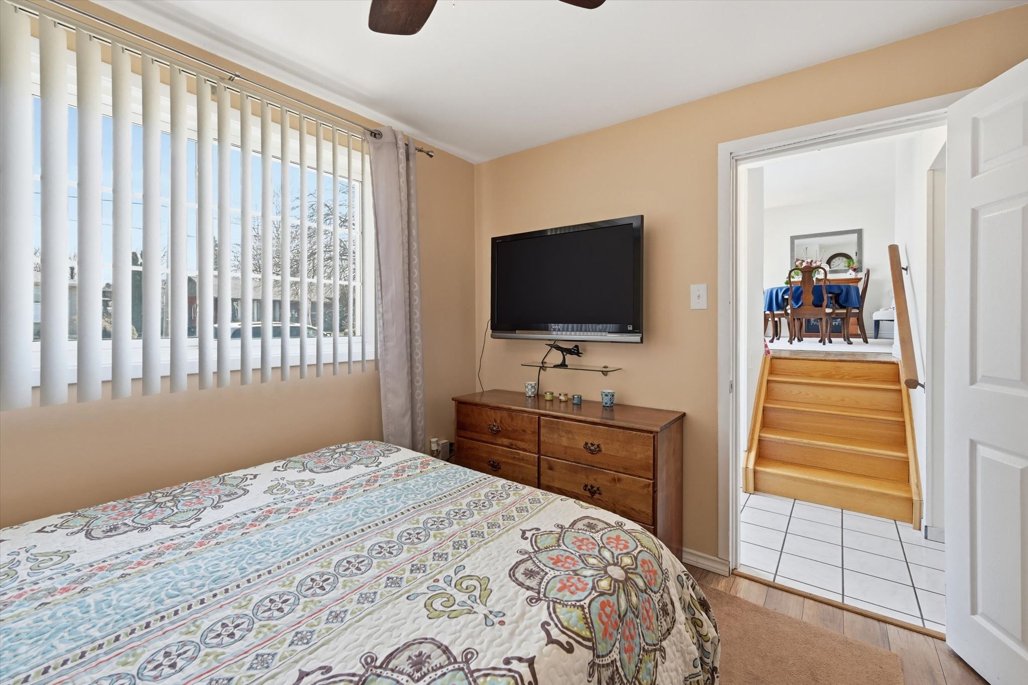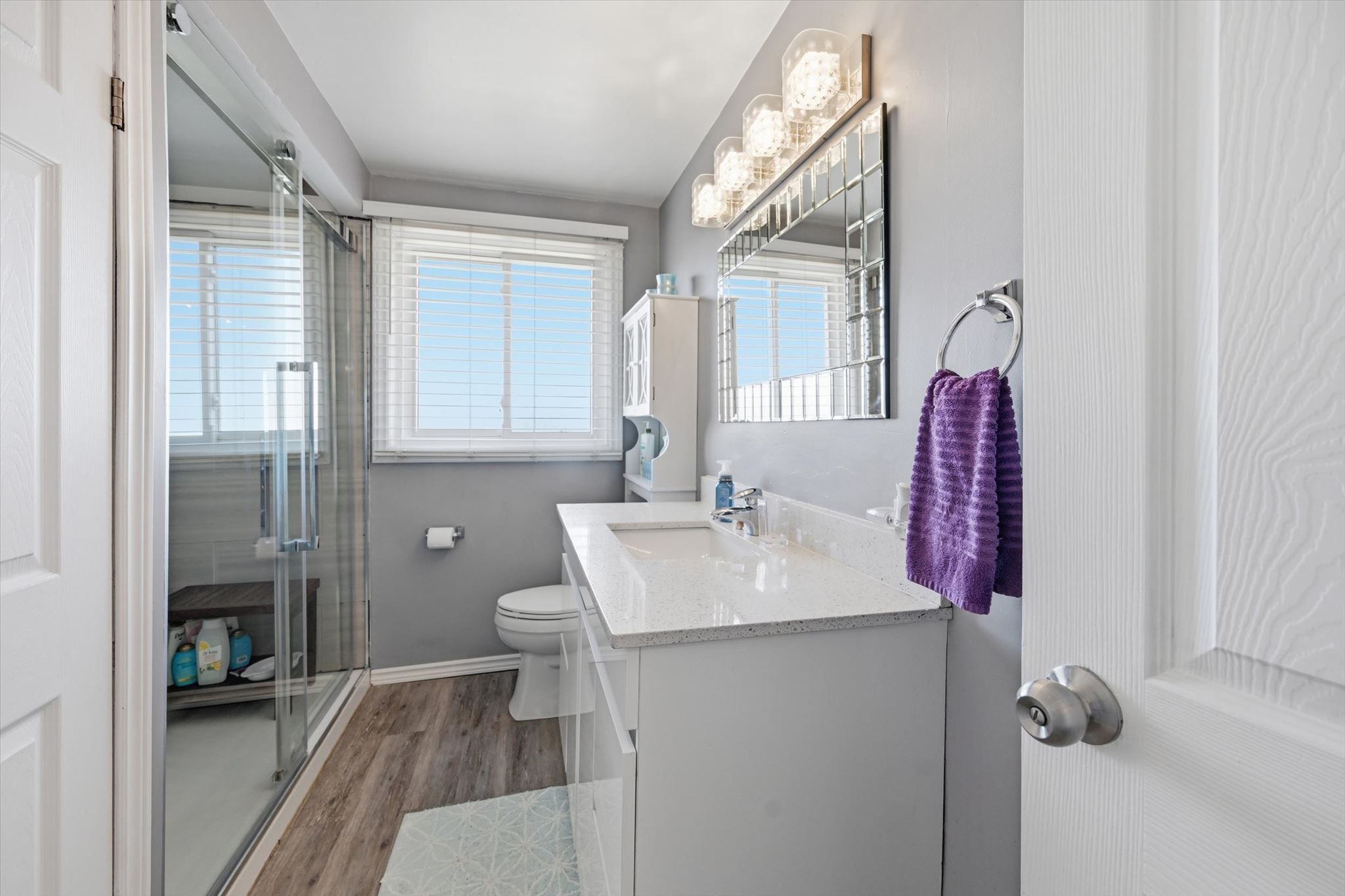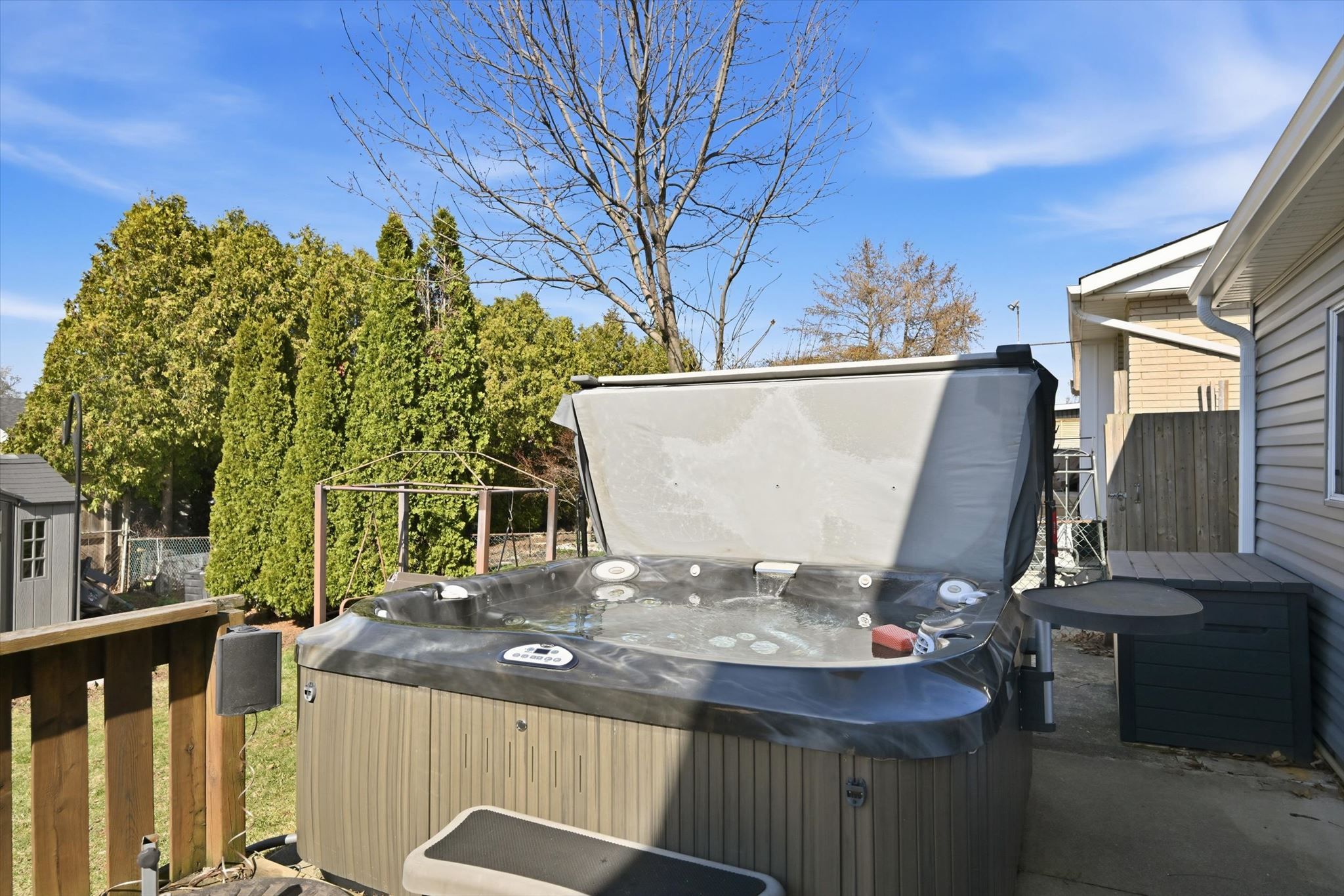 Welcome to grimsby beach! Beautifully maintained 4-level split with extensive updates and a bird's-eye view of lake ontario. This inviting home offers 3 bedrooms, including one conveniently located on the main floor, 2 renovated bathrooms, and main-level laundry for added ease. Relax in the spacious recreation room featuring a stylish bar, and enjoy ample storage in the crawlspace. A double concrete driveway leads to the single-car garage. The fully fenced backyard is designed for entertaining and family living, complete with tiered decking, gazebo, on-ground pool, hot tub, and shed, perfect for a growing family. Updates include exterior siding, a living room picture window with california shutters, furnace and central air, on-demand hot water heater, 200 amp service, renovated main bathroom, updated kitchen, and fresh paint throughout. Situated in a family-friendly neighbourhood close to shopping, parks, schools, and offering easy highway access to niagara and toronto, all just steps from lake ontario. Make your move today, this one won't last!