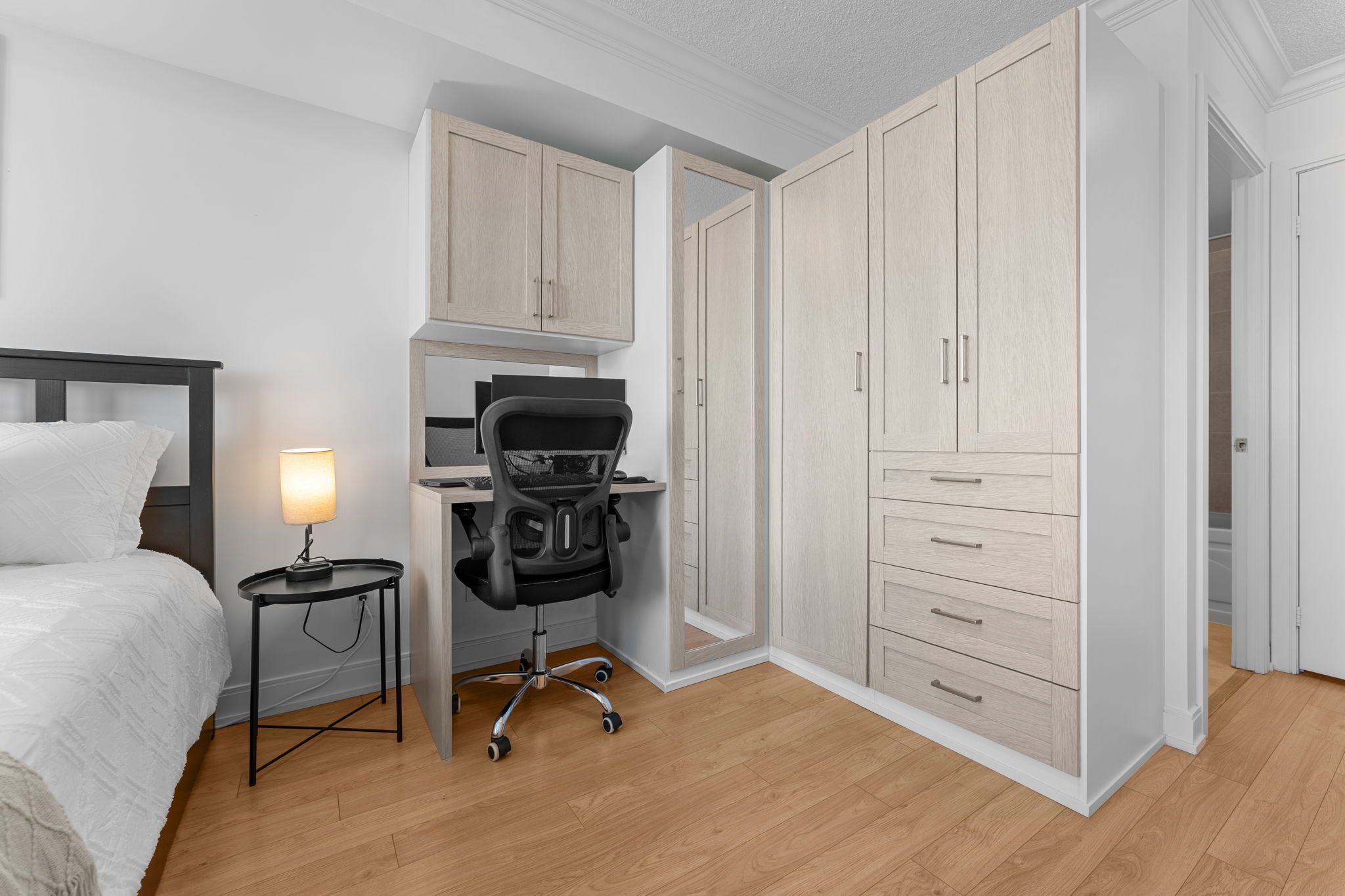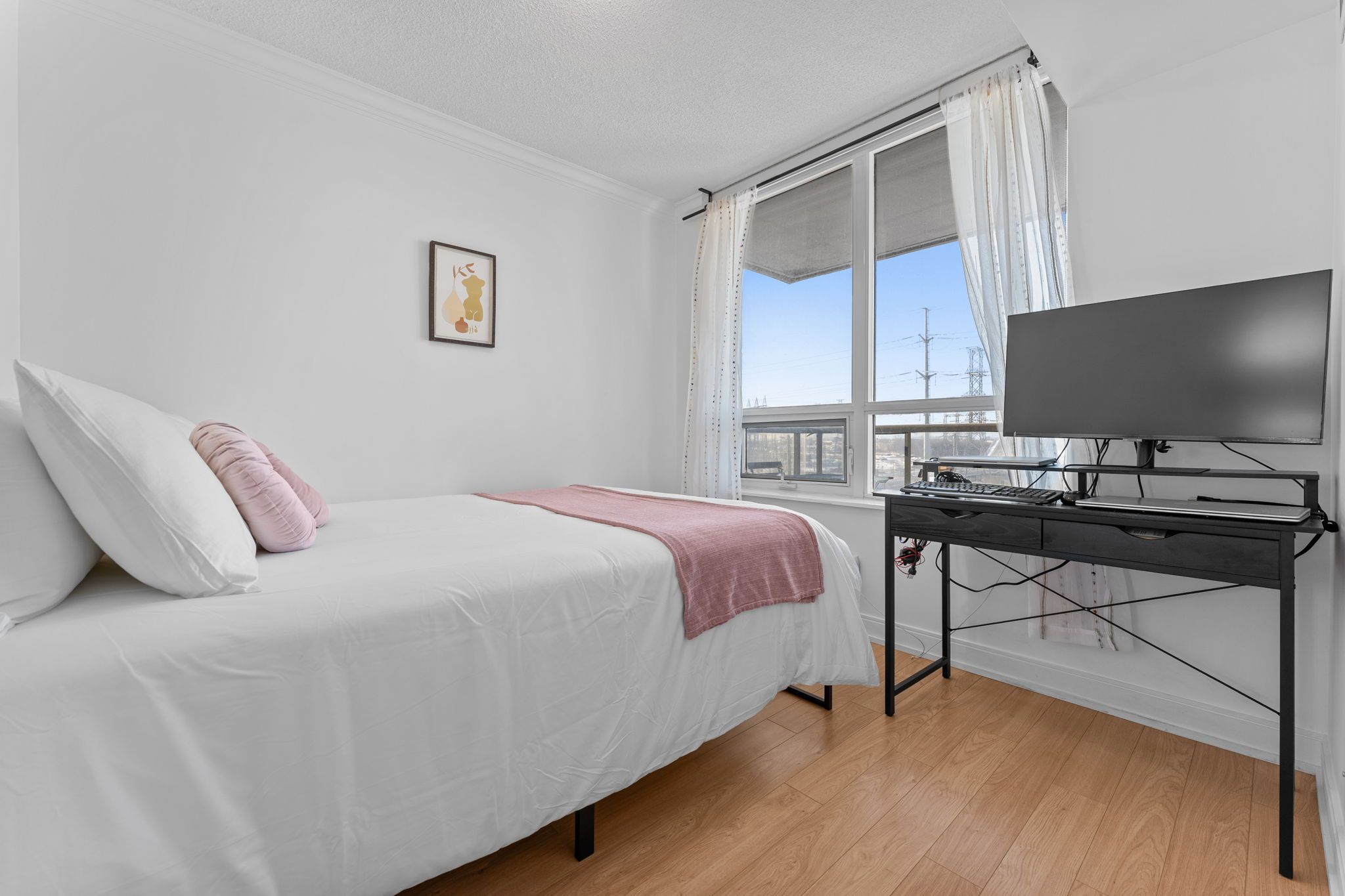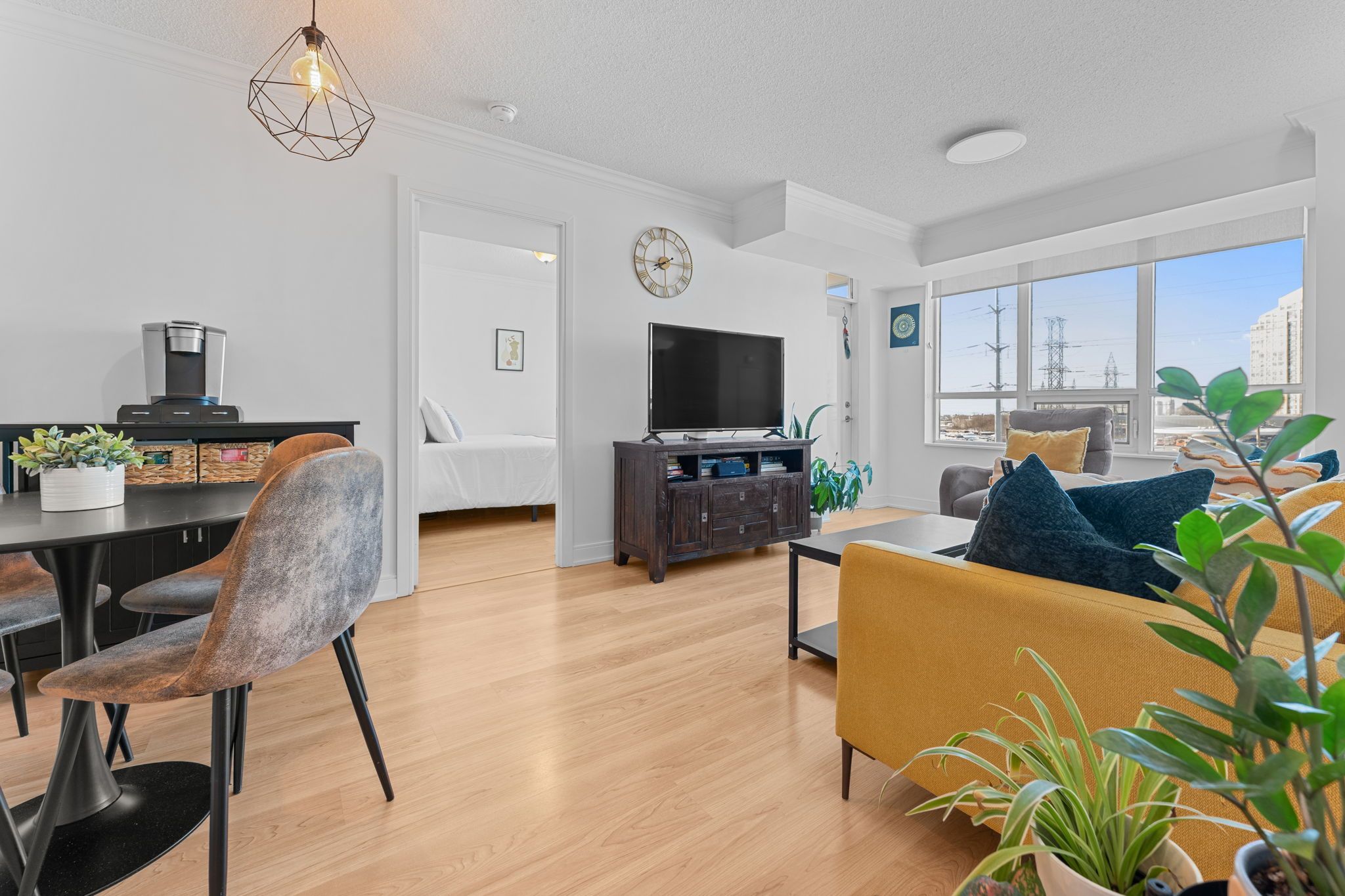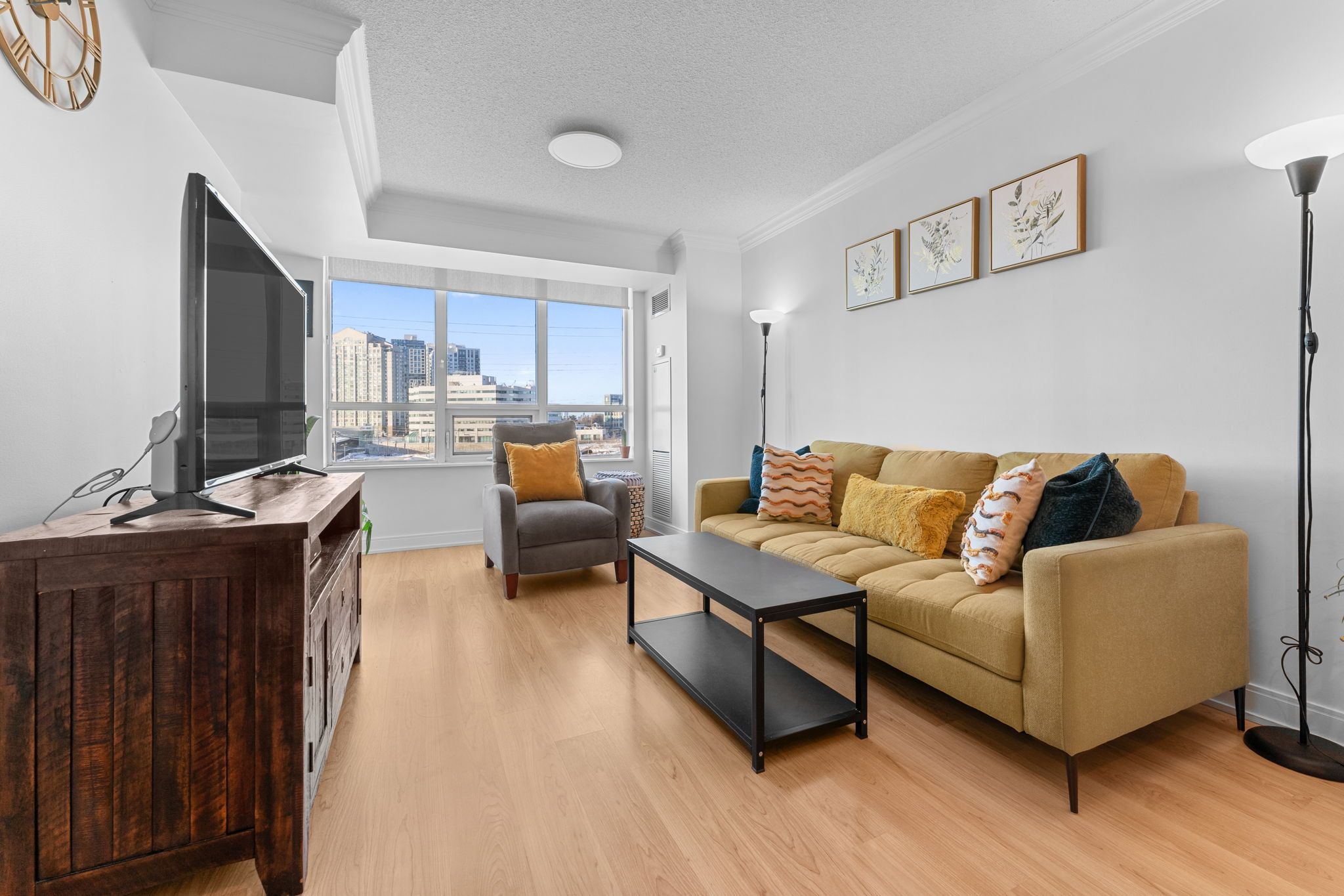 • Bright living space with large windows for natural light.