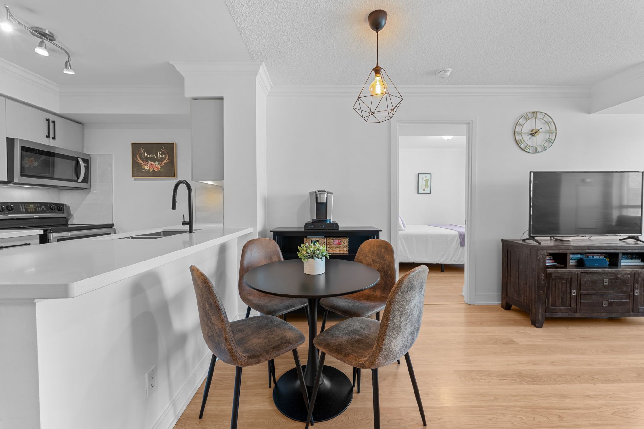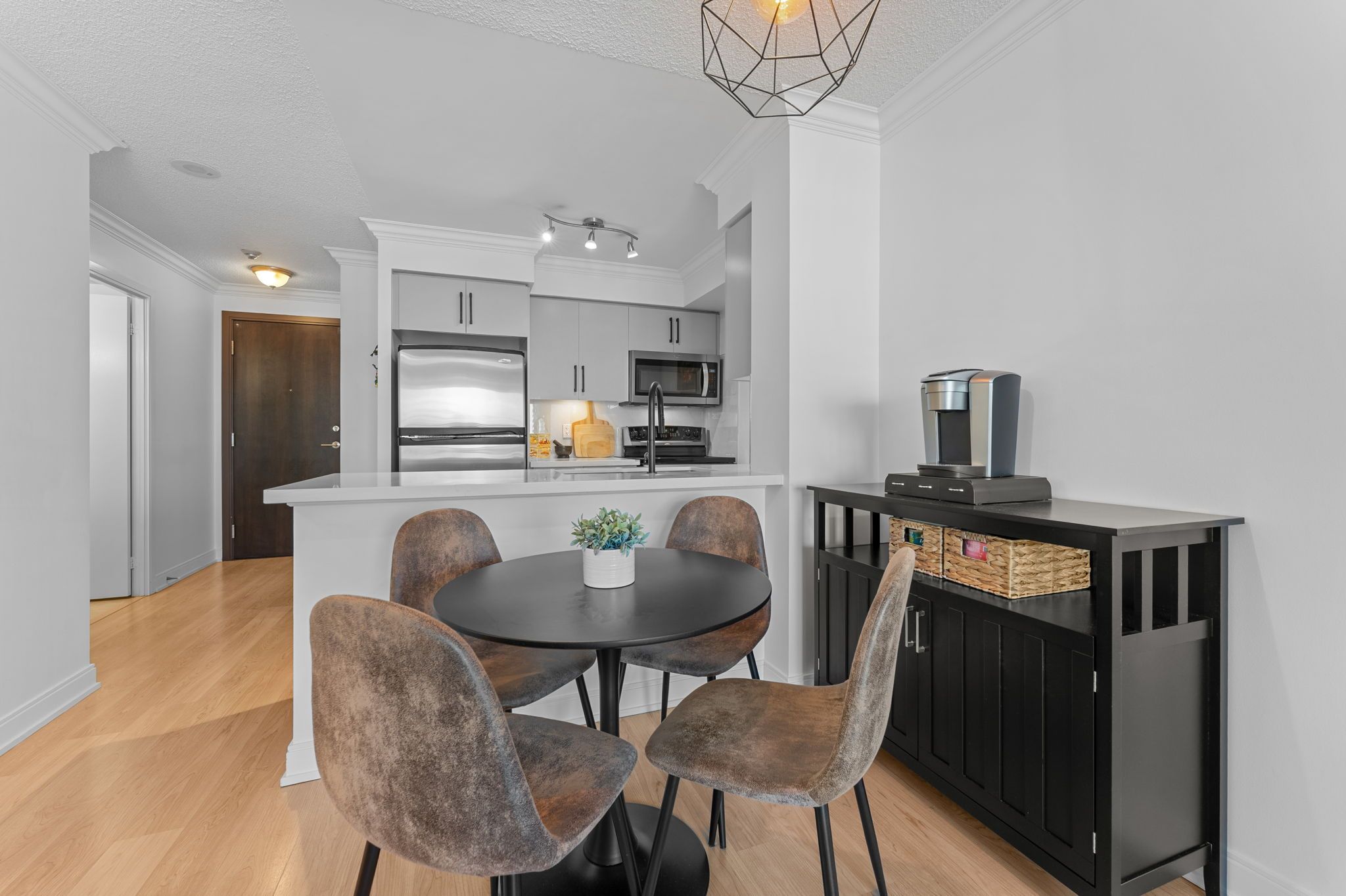 • Updated modern kitchen with sleek finishes for cooking enthusiasts.