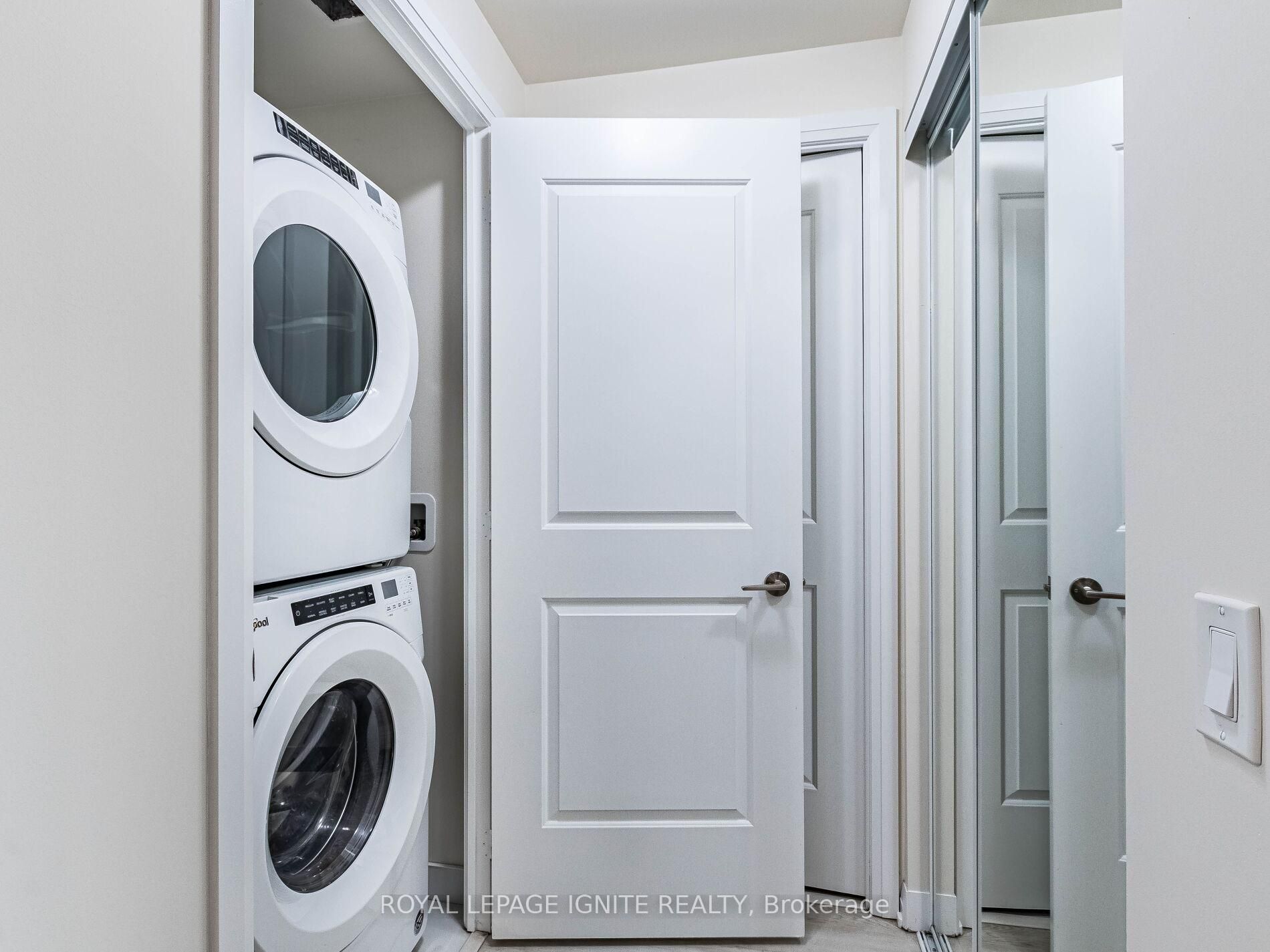 Experience elevated living on the 25th floor of the prestigious perla residences. This stunning 2-bedroom plus den suite offers a perfect blend of modern design and functional luxury, spanning 885 sq. Ft. Of interior space plus an expansive 117 sq. Ft. Balcony (1,002 sq. Ft. Total). Floor-to-ceiling windows floods the open-concept layout with natural day light, showcasing breathtaking south-west panoramic views and a rare, unobstructed north-west sightline. Bright and spacious with fully functional layout features9-footceilings and a versatile den, ideal for a professional home office. The chef-inspired kitchen is appointed with quartz countertops, a contemporary undermount sink, and a premium stainless steel appliance package. Retreat to the primary suite, complete with a spacious walk-in closet and a spa-like ensuite featuring a framed glass shower and sleek quartz finishes. Strategically located along the future lrt corridor on hurontario st., minutes to hwy 403 and hwy 401 and square one shopping centre. This5-year-young residence includes one parking space and one locker, offering the perfect entry point into a vibrant, high-growth community.