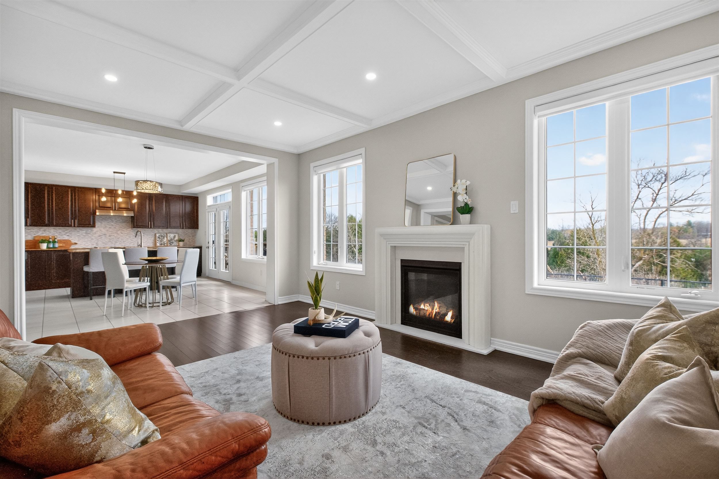 A rare opportunity to own a beautiful home backing onto a serene, ravine lot-offering privacy and nature right at your doorstep. Boasting over 2,900 sq. Ft. Of living space, this home features a thoughtfully designed layout ideal for modern family living. Main floor includes a home office, perfect for remote home or children's study/playroom, a formal dining room for entertaining, and a spacious family room complete with a cozy gas fireplace, pot lights, and large windows that showcase the picturesque views. The open- concept kitchen is designed for both function and style, featuring a large centre island with breakfast bar & a spacious family size eating area with ample space for family gatherings. A convenient main floor mudroom provides direct access to both the garage and basement. Upstairs, you'll find four generously sized bedrooms and three bathrooms. The primary suite offers two closets and a luxurious 5-piece ensuite. Two additional bedrooms share a semi-ensuite, while the fourth bedroom enjoys its own private ensuite (a total of 3 bathrooms on upper level) - perfect for guests or growing families. The upper level also has a convenient spacious laundry room. Enjoy excellent curb appeal with a charming brick and stone exterior, a welcoming front porch veranda, and a long driveway with no sidewalk- providing extra parking space. A bright sun-filled home with lots of windows designed to capture the natural sunlight and the beauty of the outdoors.