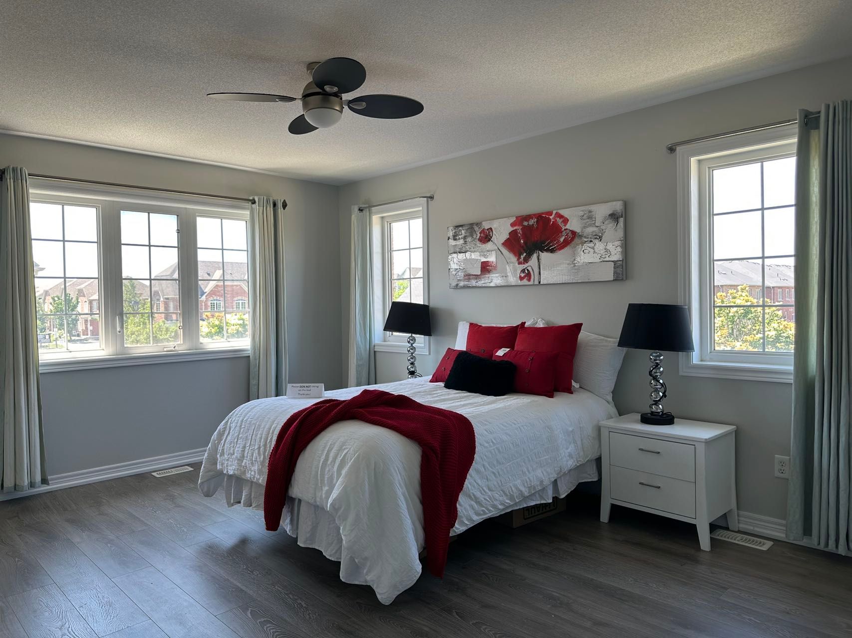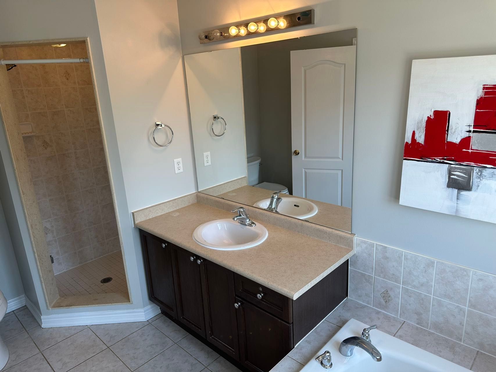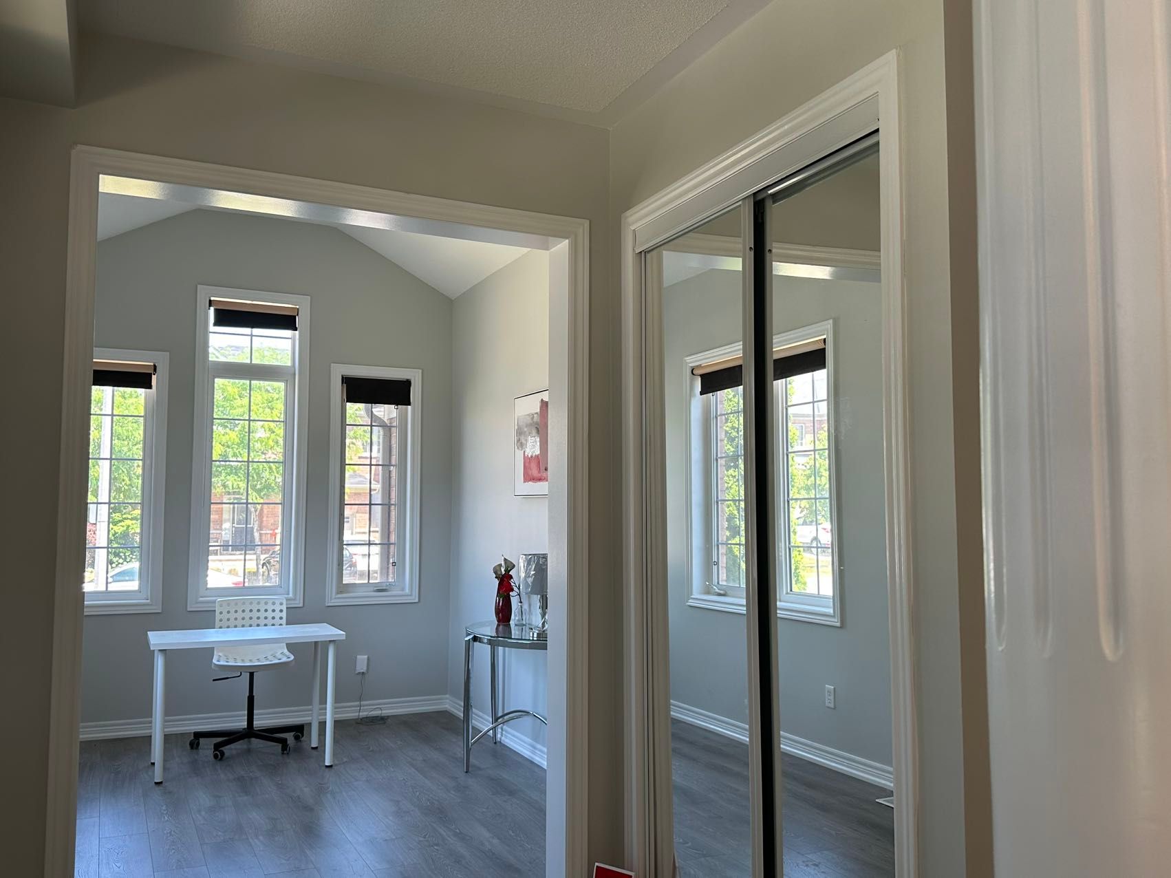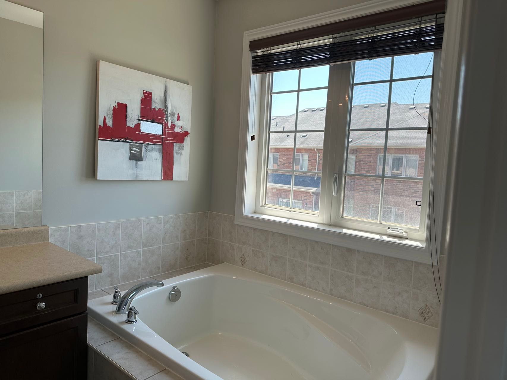 Beautifully updated and sun-filled corner unit offering rare 4-bedroom layout on a large lot! /enjoy abundant natural light through three-sided windows and a south-facing family room with walk-out to a spacious backyard / perfect for outdoor enjoyment/key features:newly renovated throughout with modern laminate flooring and fresh paint/new granite countertops in the kitchen/open-concept main floor with 9' ceilings and south-facing kitchen, dining, and family room/impressive cathedral ceilings and oversized windows in the living room /ideal as a library or formal sitting area/primary bedroom features a large walk-in closet and a 4-piece ensuite with separate tub and shower/second primary-sized bedroom with large picture windows/no sidewalk extended driveway fits 2 cars, plus direct garage access from inside the house/bright and airy layout with windows throughout the home/close to recreation centre, parks, library, public transit, and schools/this sun-drenched and spacious home is ideal for families seeking comfort, style, and convenience in a sought-after location/no survey.