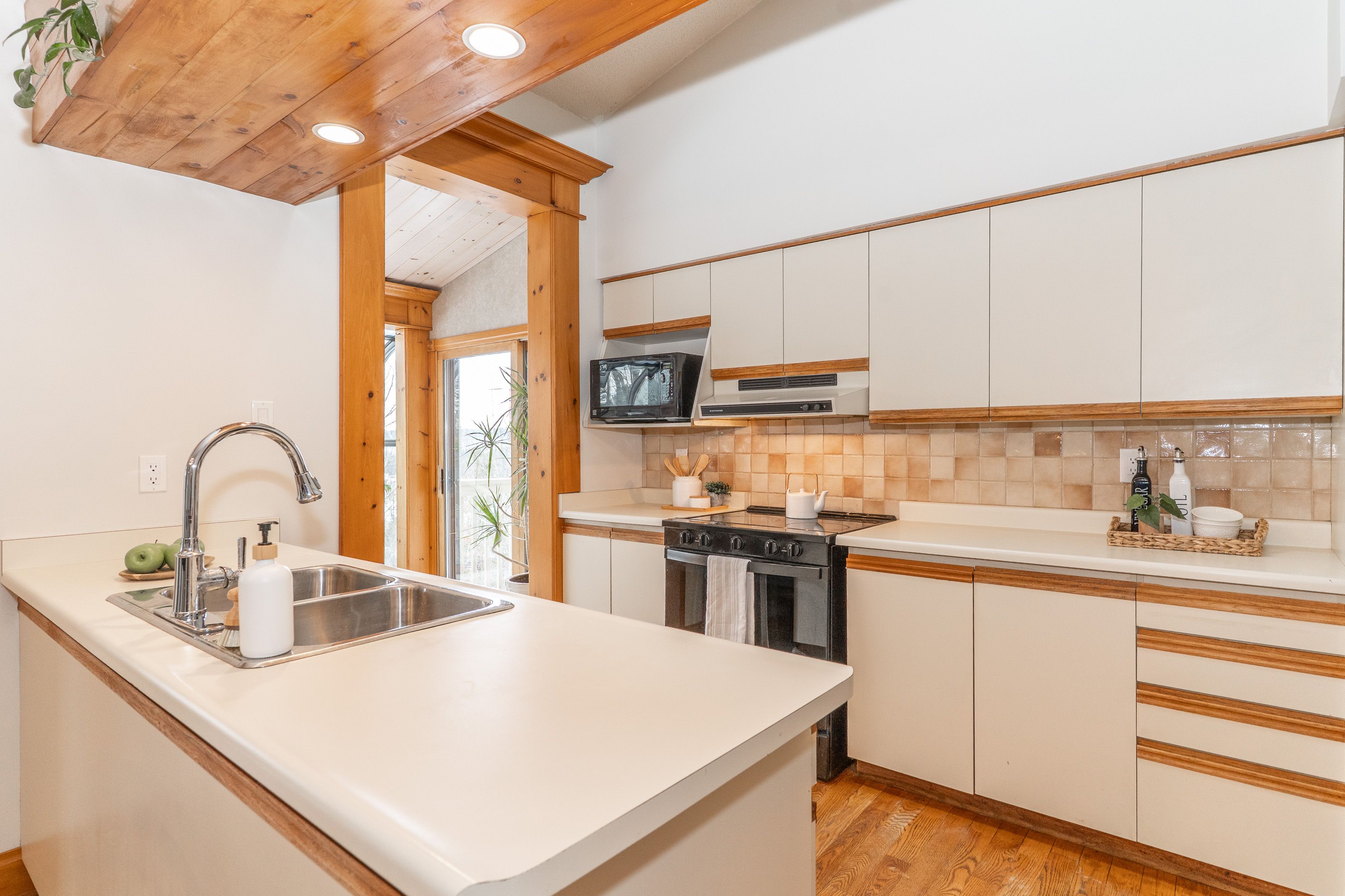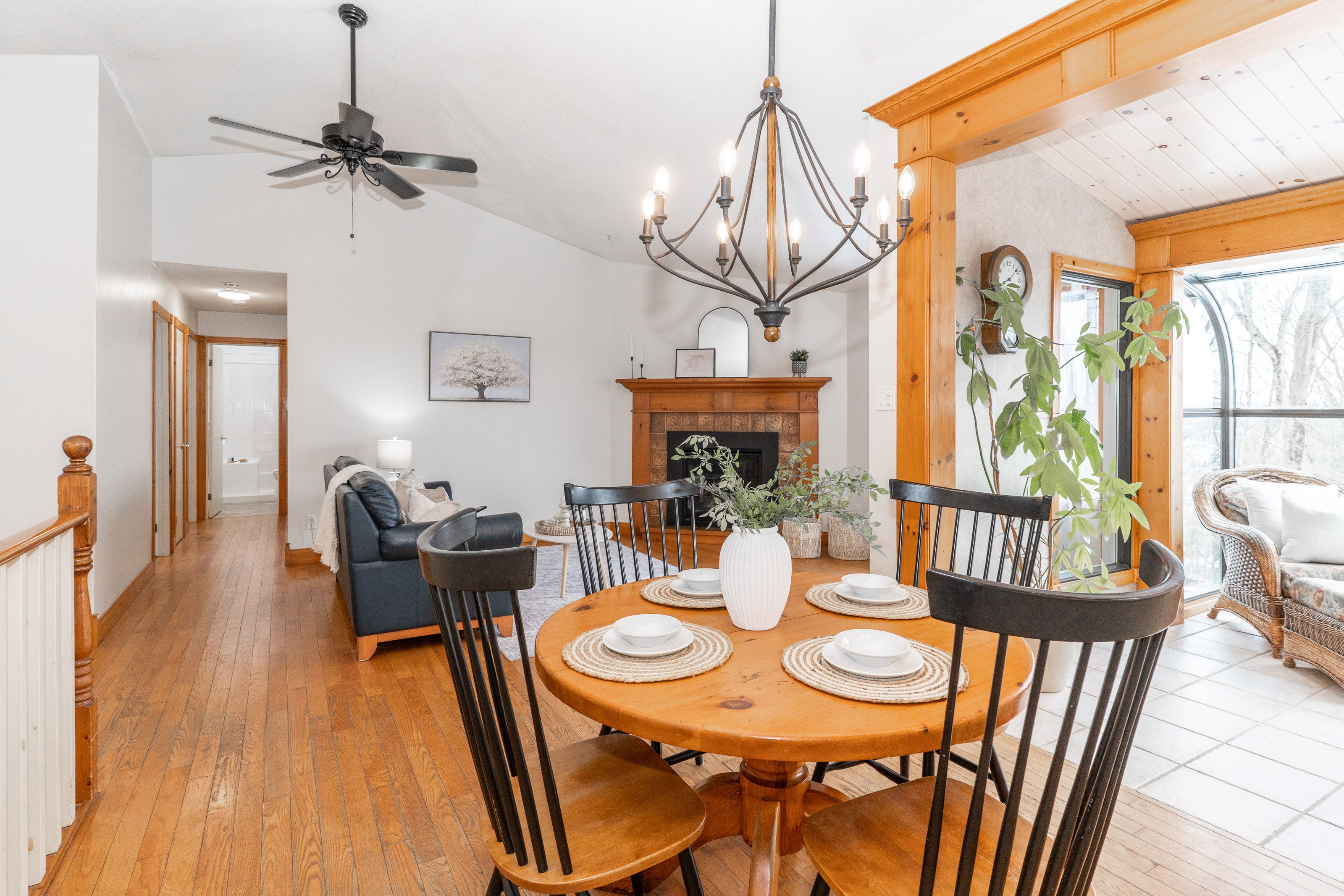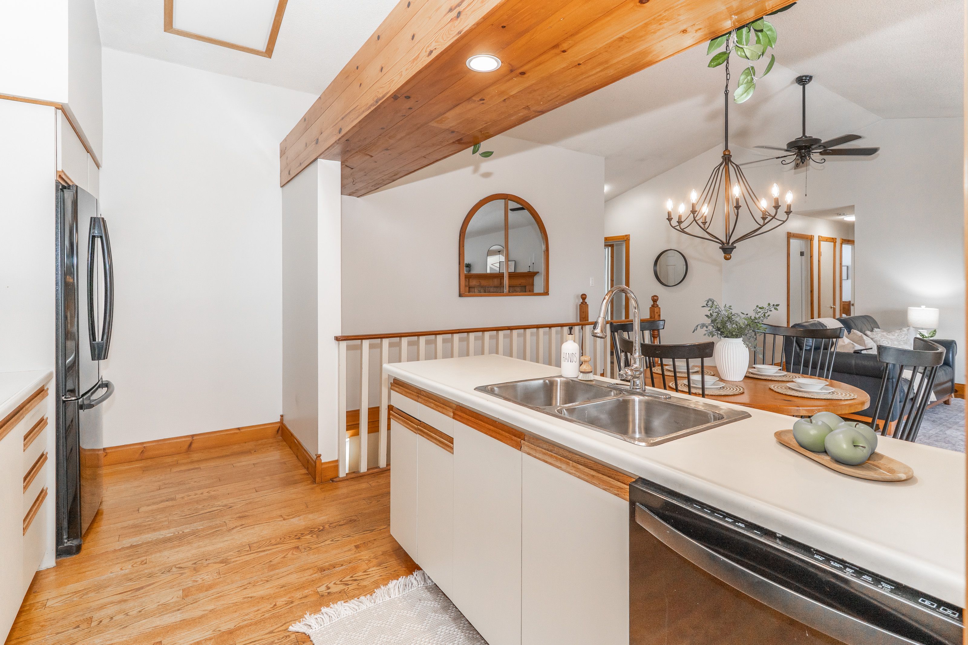 • Bright, open-concept main floor with vaulted ceilings and hardwood floors.