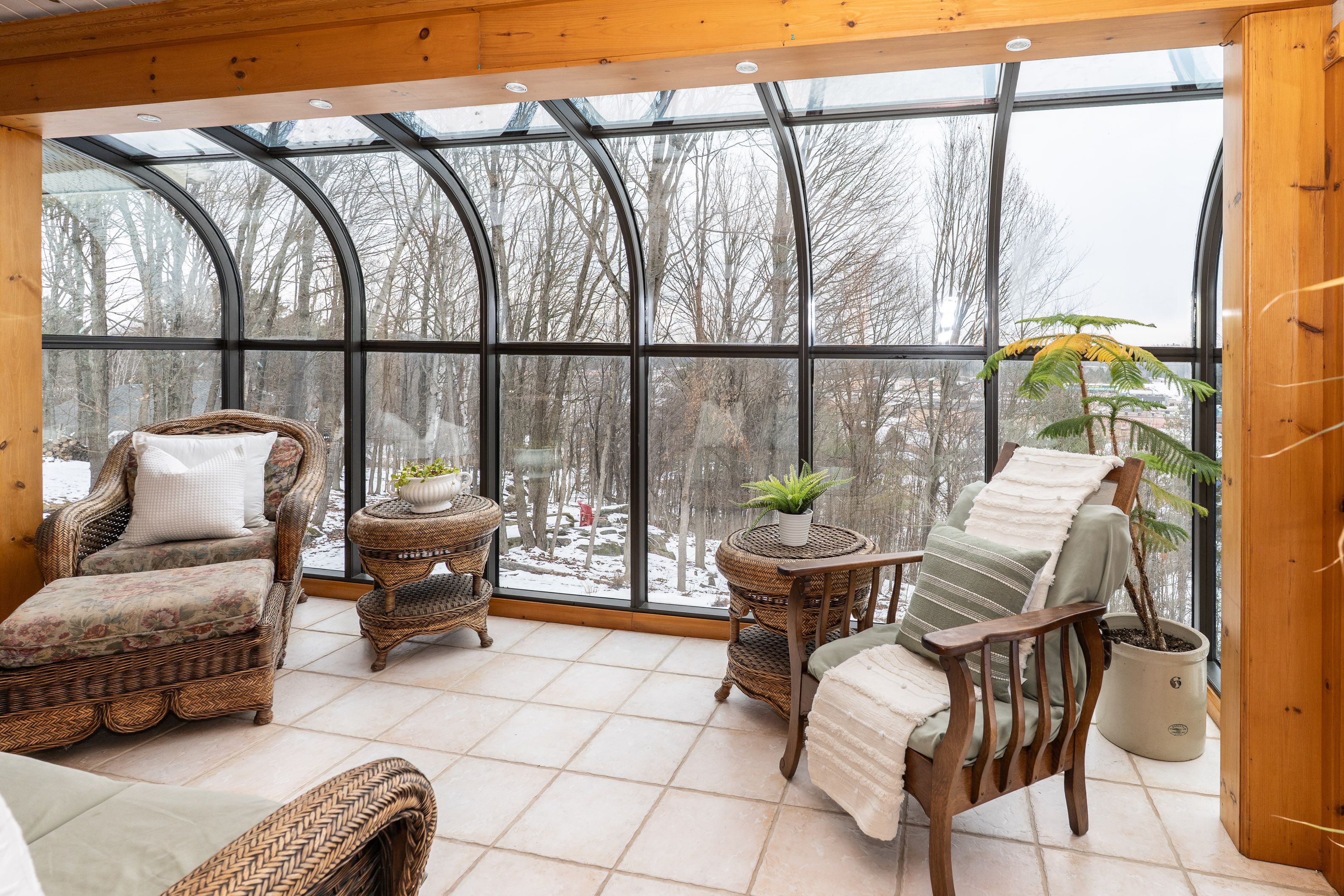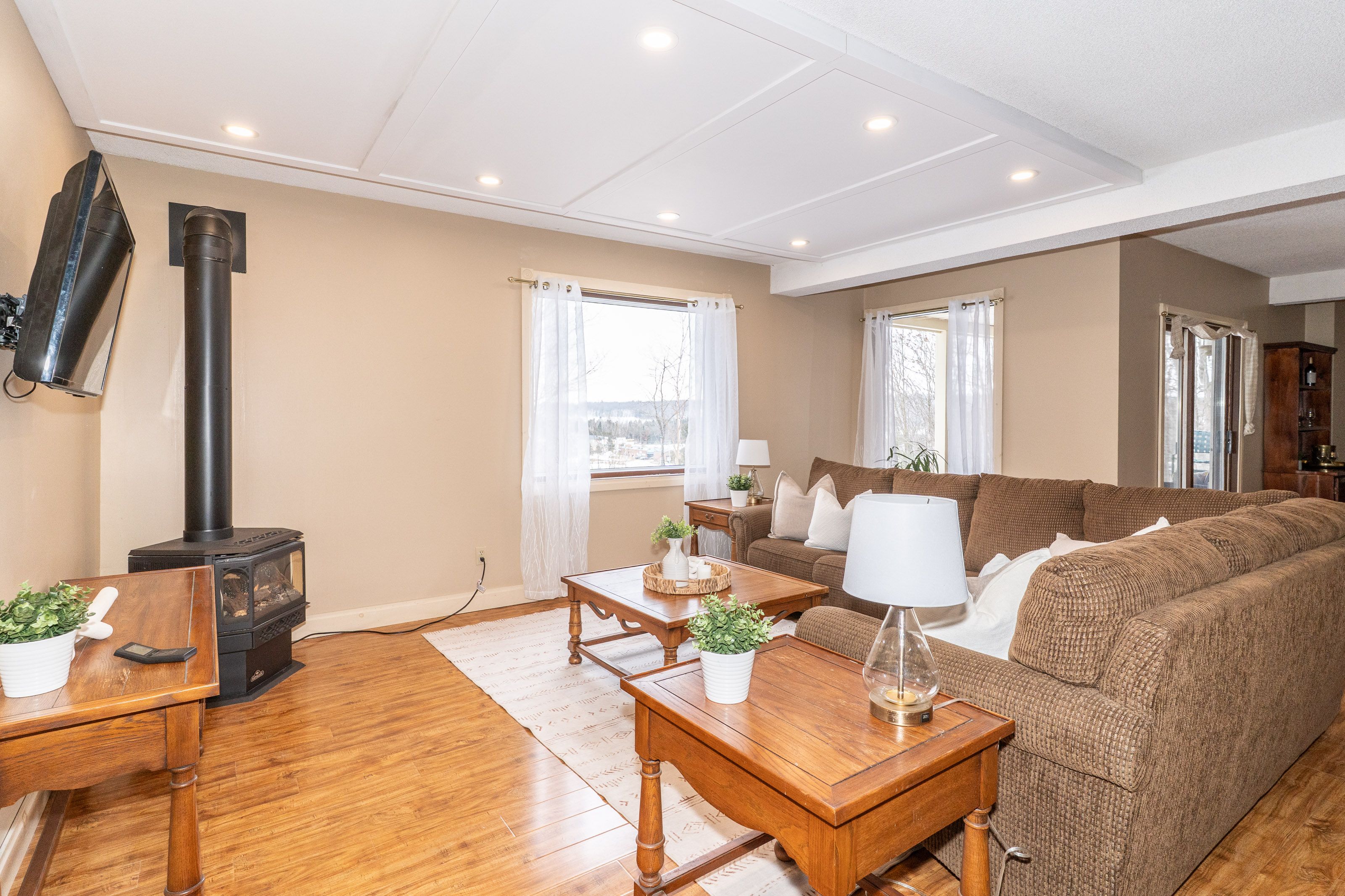 Rare 1-acre in-town oasis! Discover the perfect blend of privacy and convenience in this meticulously maintained 3+1 bedroom, 3-bathroom bungalow. Nestled in a sought-after, established neighborhood just minutes from downtown shopping and schools, this property boasts a stunning 1-acre lot with mature trees and breathtaking views overlooking the lower west area of bracebridge. The bright, open-concept main floor is designed to impress, featuring soaring vaulted ceilings, rich hardwood floors, and south-facing windows that flood the space with natural light. Cozy up by the living room's gas fireplace or enjoy a meal in the dining area. The galley-style kitchen offers ample storage and leads to a spectacular custom glass sunroom-your new favorite spot to soak in the views year-round. The main level hosts three bedrooms, including a spacious primary suite with a walk-in closet and 4pc ensuite bath, plus an updated 3pc main bath. The walkout lower level is equally impressive with high ceilings and large windows, offering a massive rec room, a 4th bedroom (perfect for an office or den), a 3pc bath, and a large laundry room. Step outside to the private patio and expansive backyard. Complete with an attached double garage, paved driveway & flexible closing date make this the perfect opportunity for you and your family.