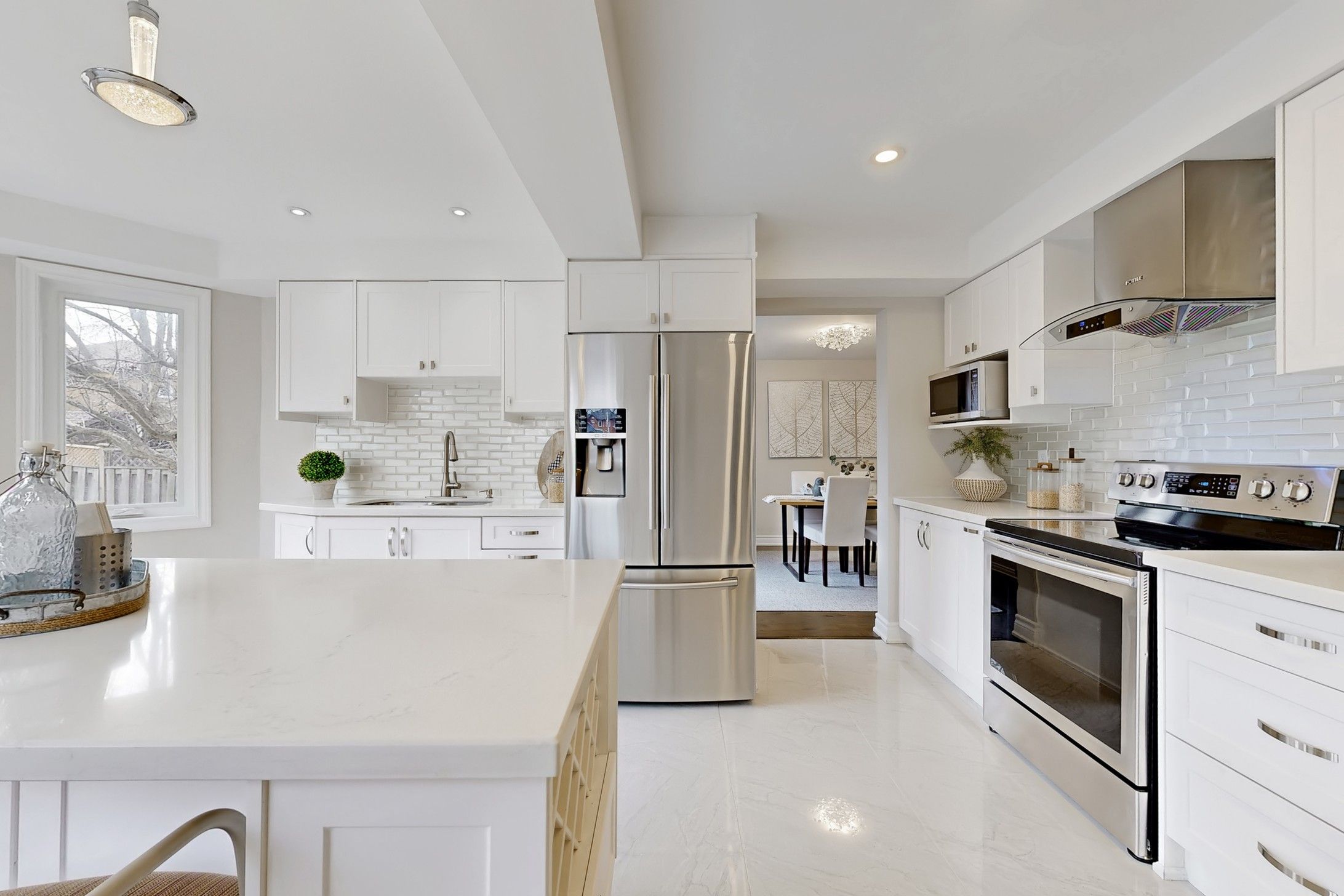 • Bright, modern interior with updated flooring and a chef's kitchen.