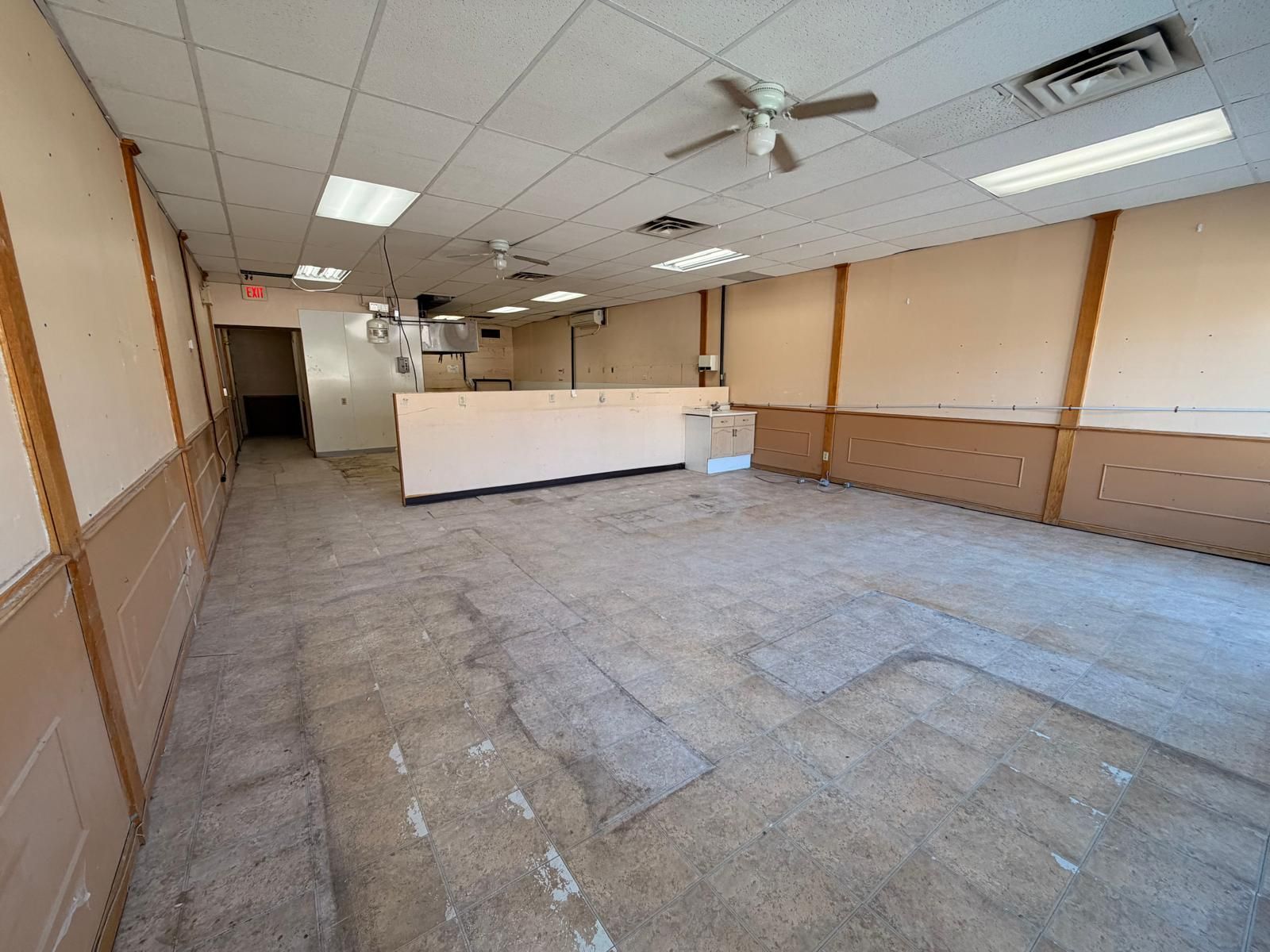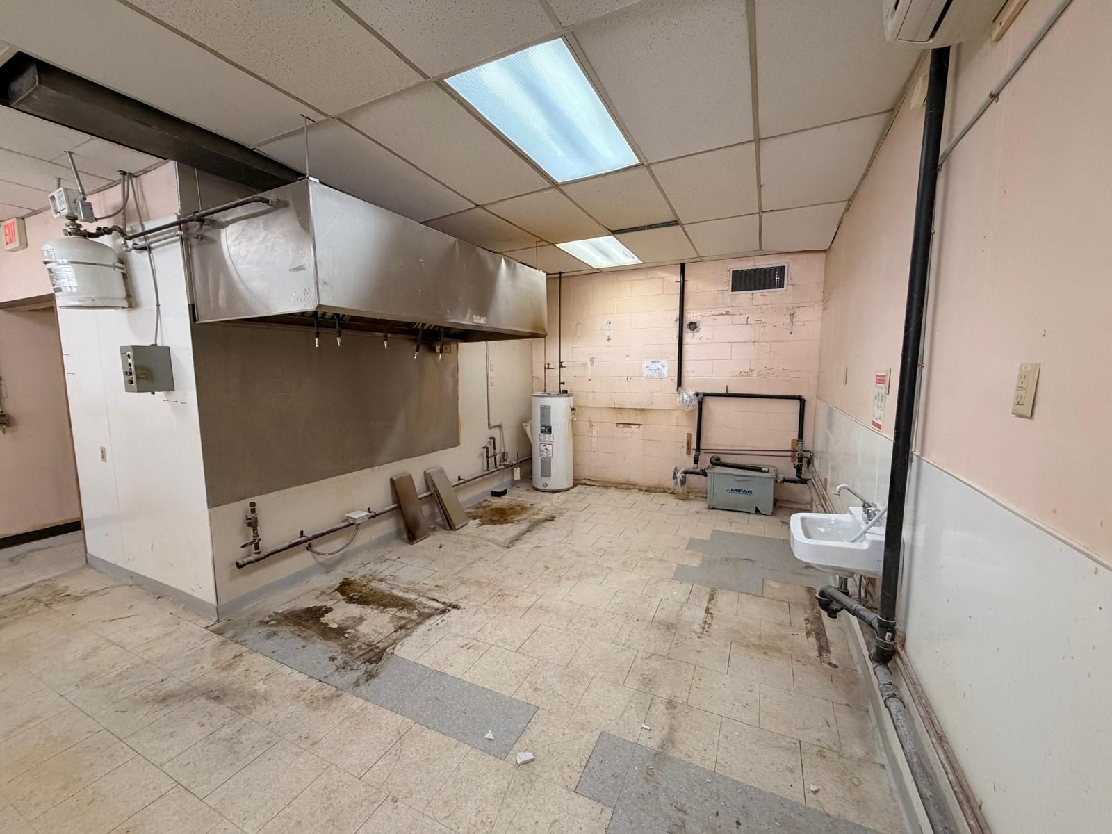 • Existing hood fan ready for quick service restaurant setup.
