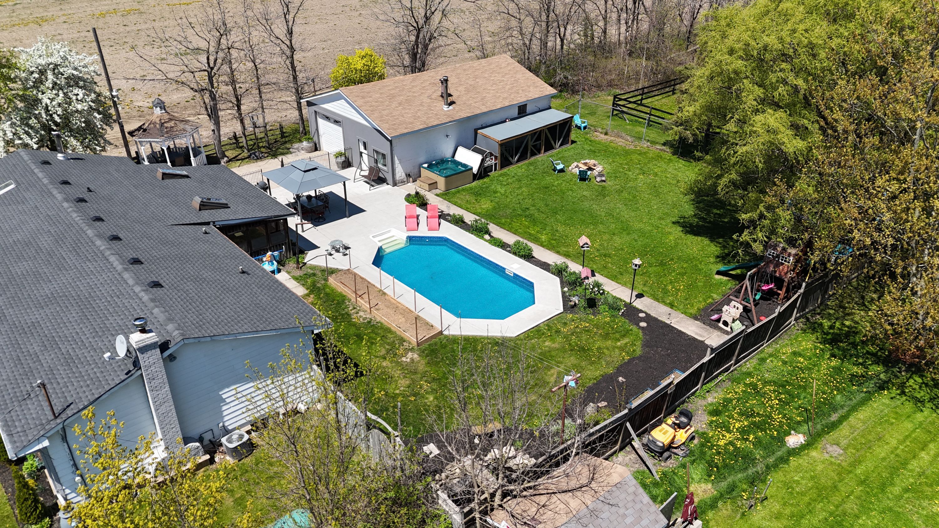 Privacy, serenity, and unmatched convenience await you! Nestled along a scenic country road, this beautifully updated sprawling bungalow offers the perfect blend of peaceful rural living and easy access to city amenities. Set on approximately half an acre, the property features a stunning backyard oasis complete with a sparkling in-ground pool and multiple patio areas ideal for outdoor entertaining or quiet relaxation. Step inside to discover an open-concept layout that effortlessly combines style and functionality. The updated eat-in kitchen is a chefs dream, boasting elegant countertops, ample cabinetry, and seamless flow into both the spacious family room and the expansive three season sunroom an ideal space for hosting gatherings or enjoying morning coffee with a view. The home also includes tastefully renovated bathrooms, an updated cistern and concrete porch/patio, offering peace of mind and modern comfort. For hobbyists or those in need of extra storage, the impressive 42' x 30' workshop is a dream come true. All this privacy and tranquility is just five minutes from the qew and the heart of town giving you the best of both worlds. Don't miss your chance to experience the charm of country living without sacrificing convenience!