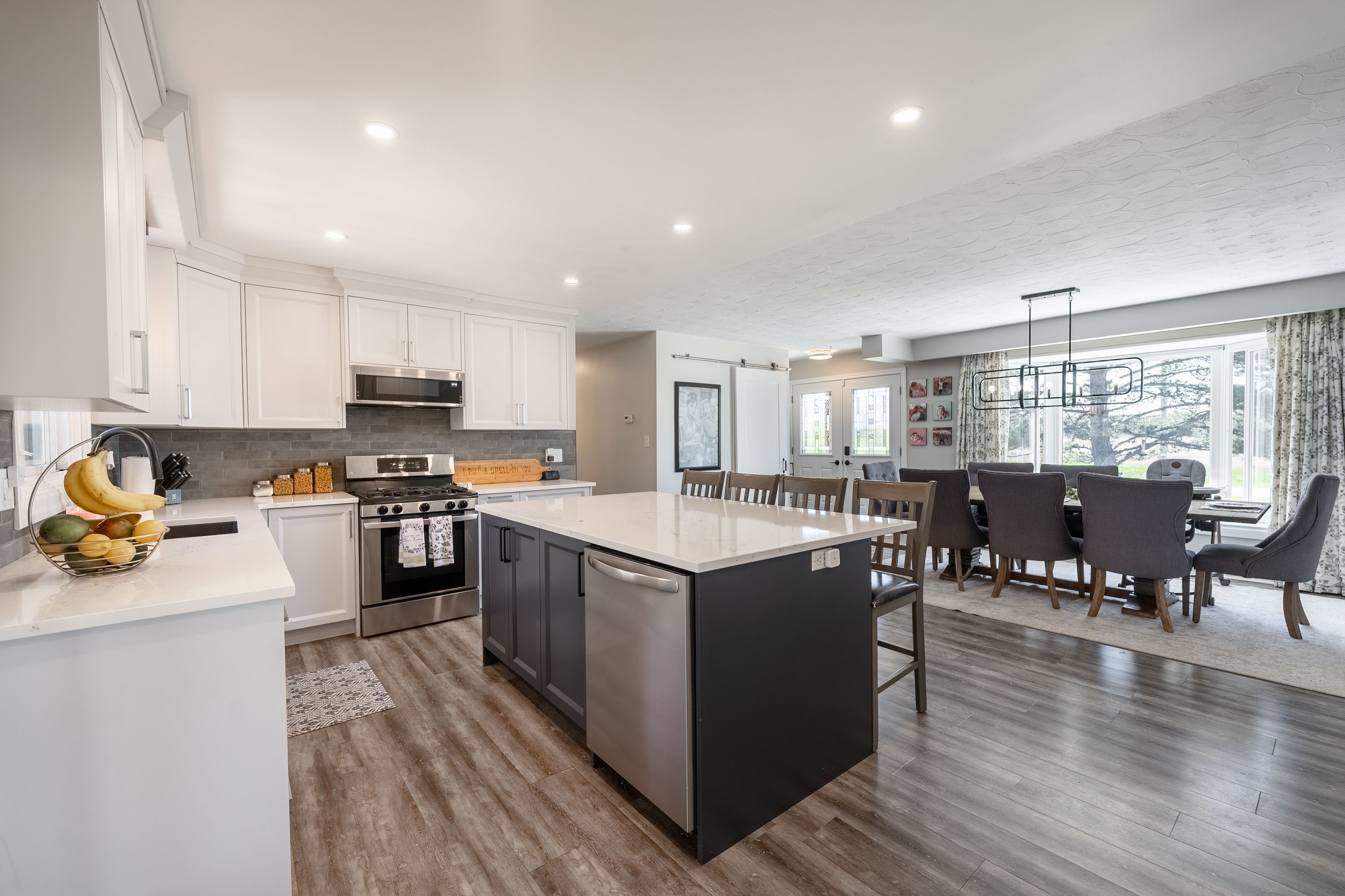• Open-concept layout with a stylish, updated eat-in kitchen.
