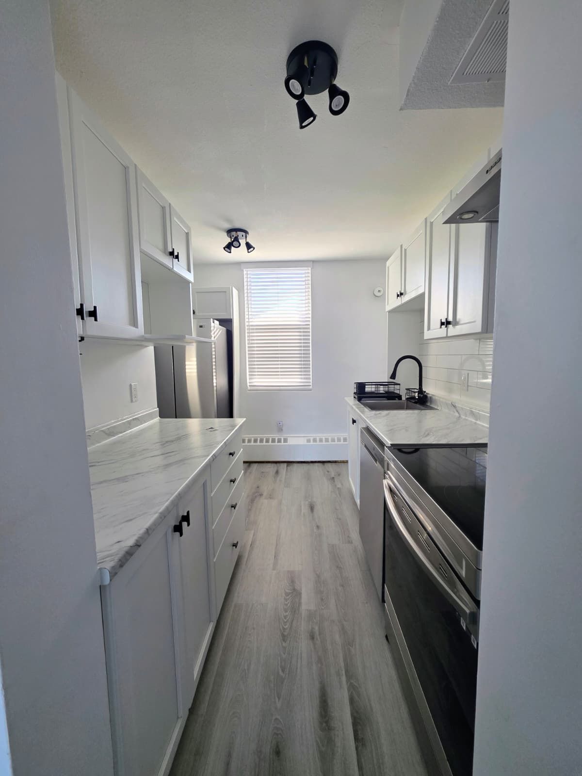 Stunning renovated, rare 2 story condo with 3-bedroom suite immediate availability experience modern living in this freshly updated 3-bedroom unit. The space features stylish grey-wash flooring throughout, a crisp neutral color palette, and high-end finishes. Gourmet kitchen: bright and functional with white cabinetry, sleek marble-style countertops, subway tile backsplash, and a deep stainless steel sink with a matte black faucet. Bonus amenity: the owner has provided a stainless steel dishwasher for your use at no extra charge! Spacious living: large windows and a private balcony offer expansive views and plenty of natural light. Ample storage: includes large mirrored closets and a multi-level layout that feels like a home. Utilities included: heat and cold water usage are included in your rent. Parking: reserved parking available for $95/month. (ample street parking also available in the area). Storage: additional storage units available for $20/month. Smoke-free living: this is a non-smoking building for all new residents, ensuring a clean and healthy environment for everyone.