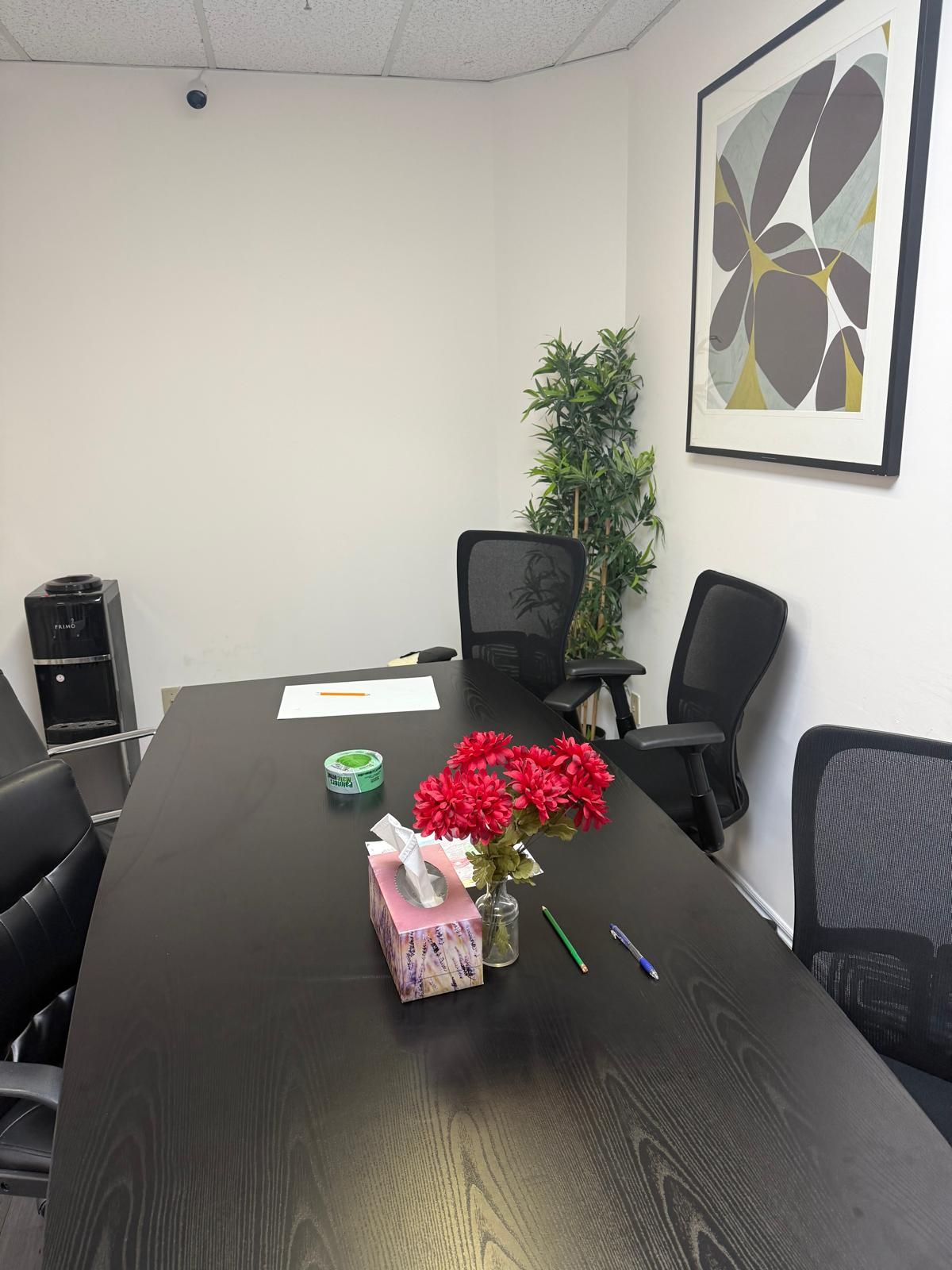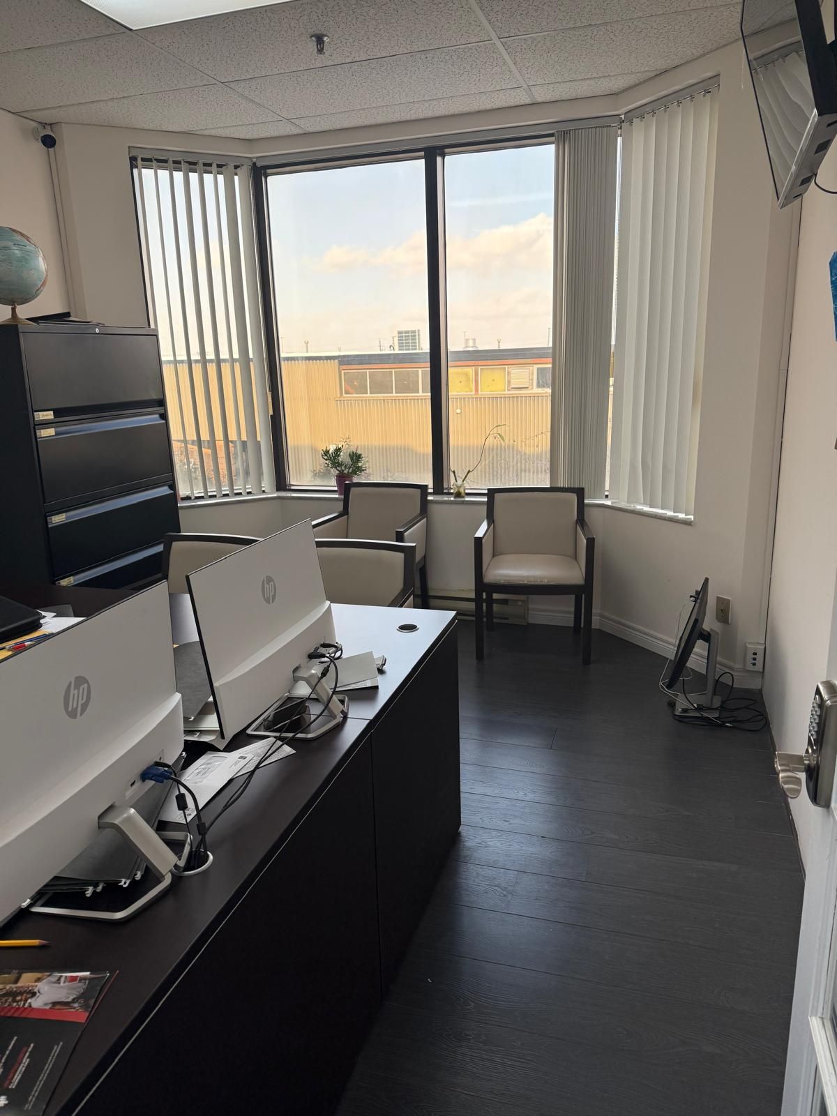 • Includes four private offices, reception, waiting area, and boardroom.