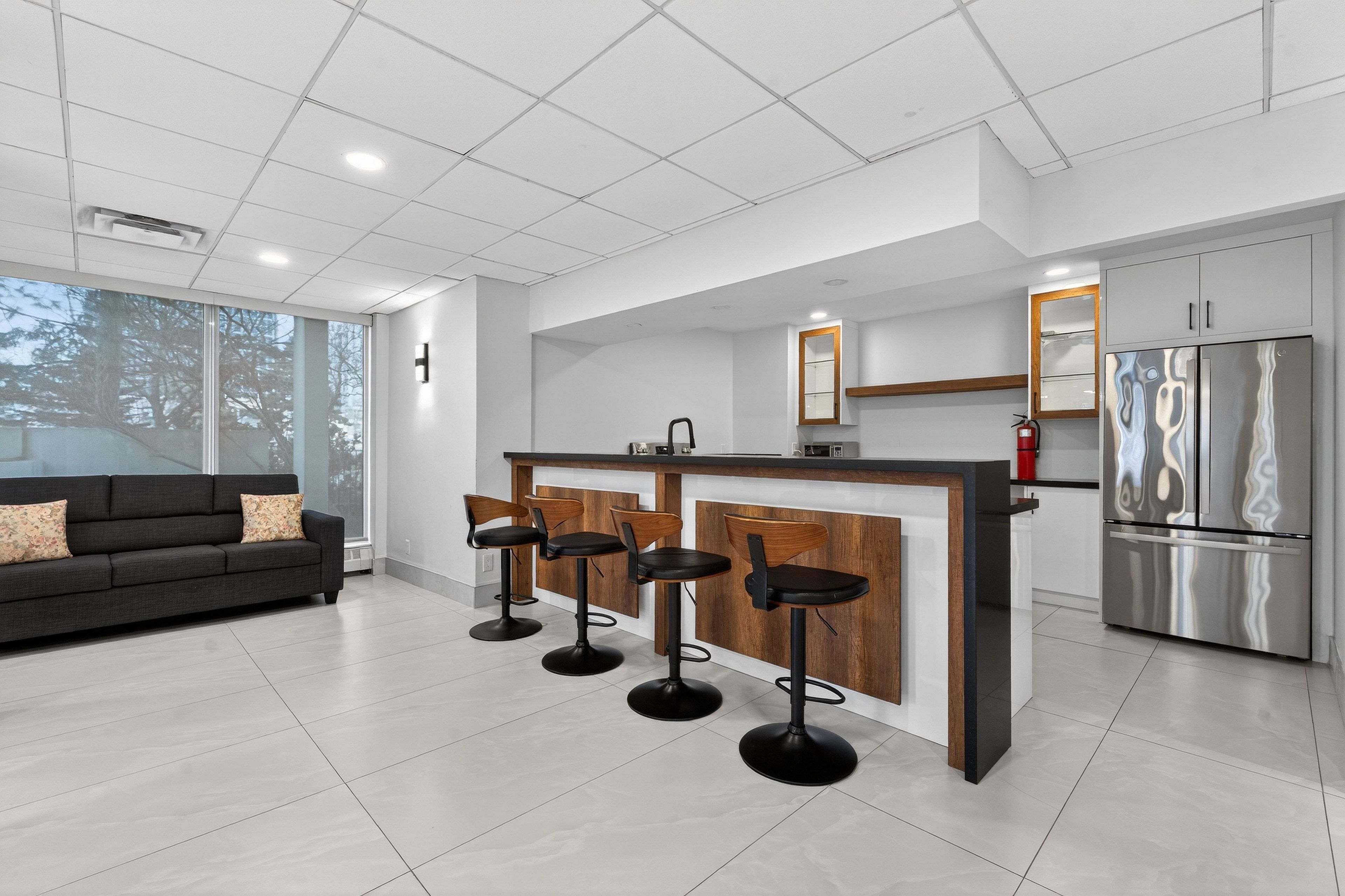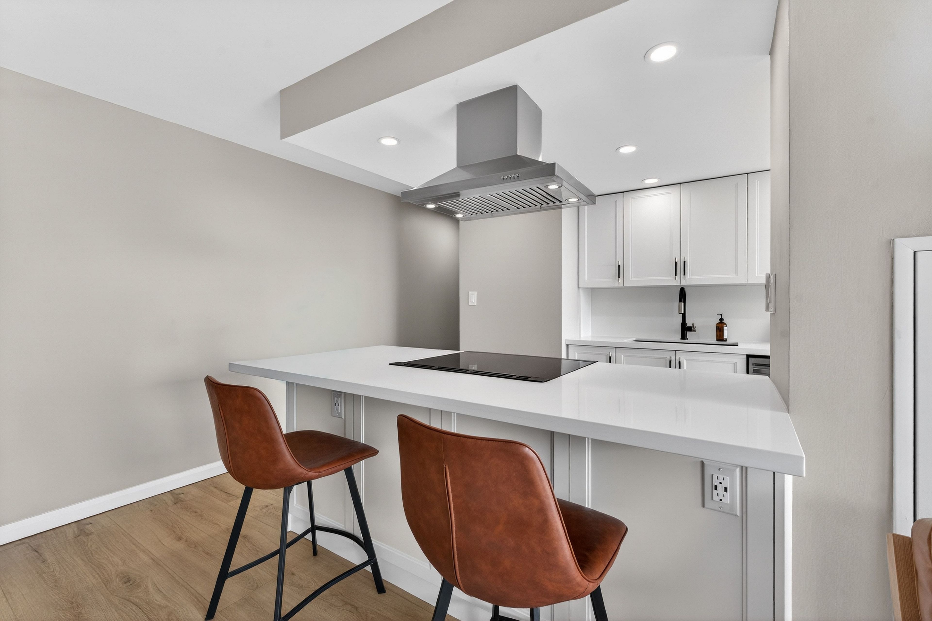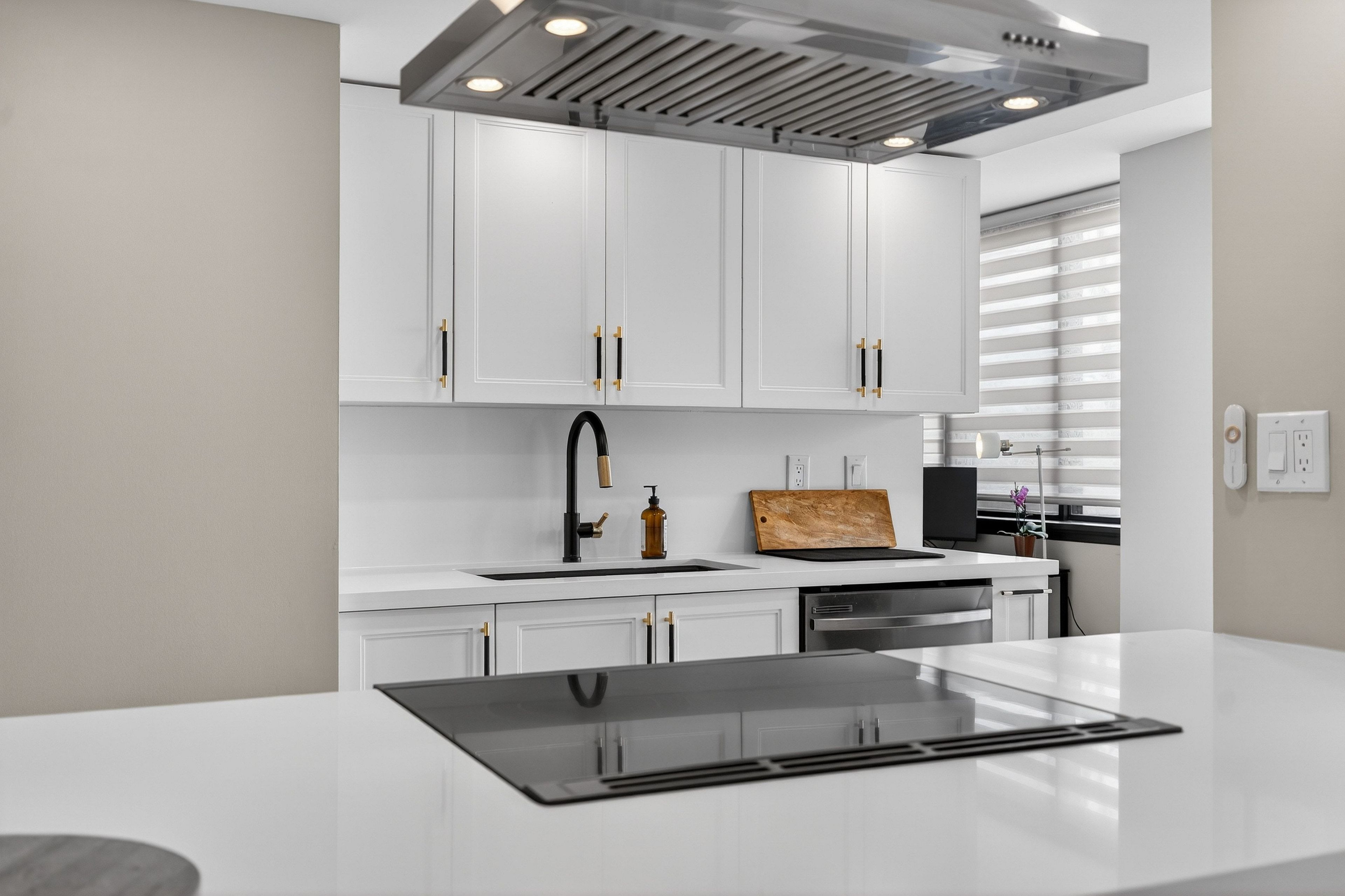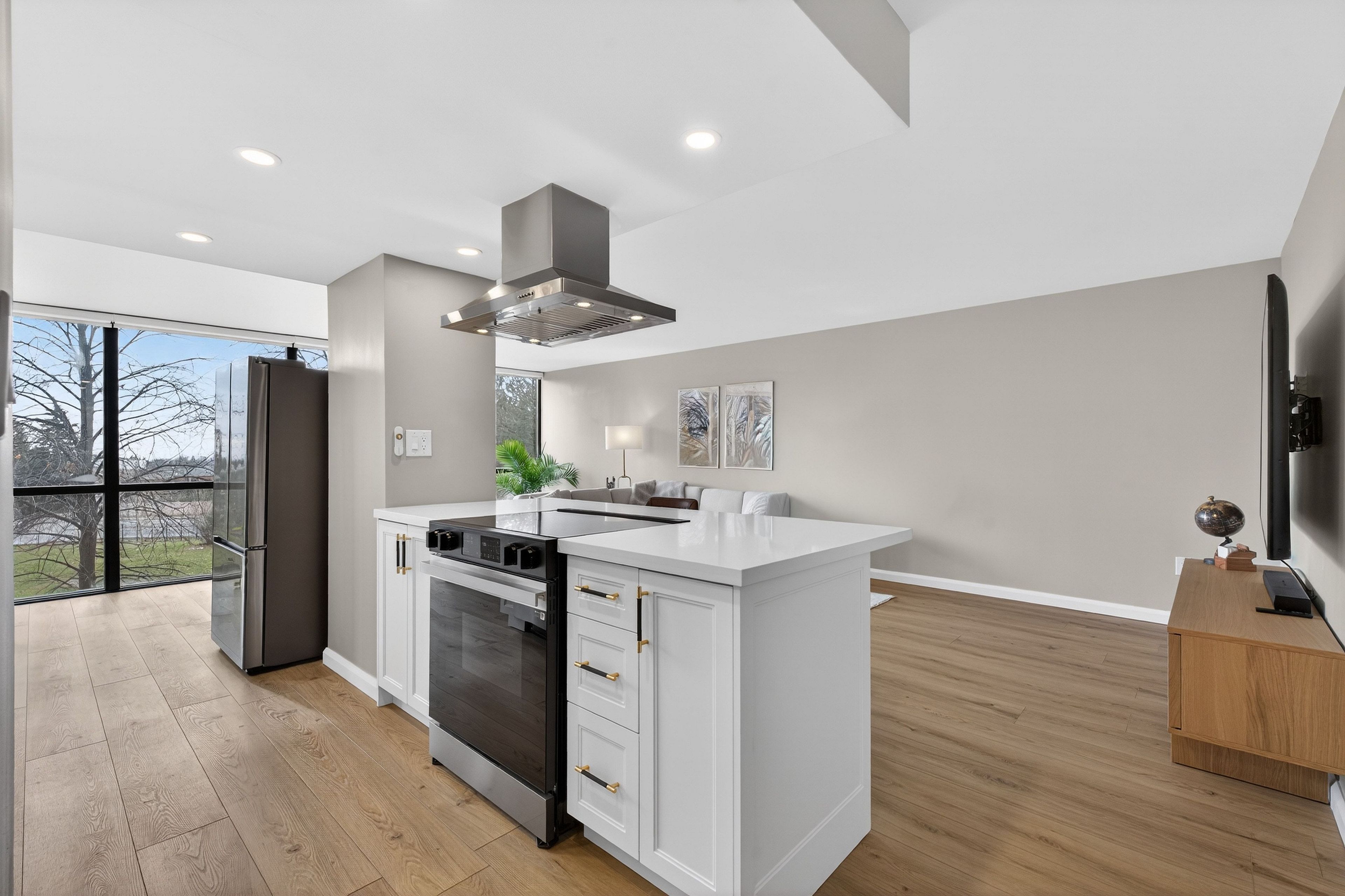 • Designer kitchen equipped with quartz countertops and brand-new Samsung appliances.
