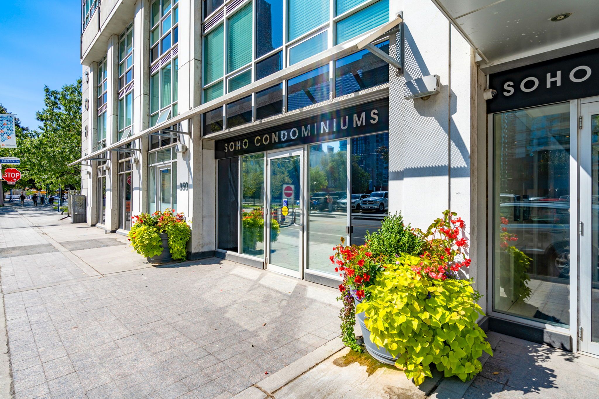 Nestled in the heart of downtown, this remarkable ground floor soho condo is perfect for those seeking a bustling downtown lifestyle with an outdoor urban retreat. The 290 sq ft terrace with your own private gazebo is an ideal spot for relaxation, dining el fresco, and entertaining guests, providing a serene escape from the hustle of the city. Cn tower, rogers centre. Scotiabank arena, king west, and the well are just a few iconic toronto landmarks only steps away. Open concept floorplan and 10-foot floor to ceiling windows with automated blinds, keep the space bright and airy. Luxurious hotel amenities, including gym, indoor pool, and more, promoting a lifestyle of comfort and well-being. Walk score 97, everything you need within walking distance. Soho metropolitan residences provides a stylish and comfortable living space in a metropolitarea with unparalleled access to downtown attractions. Utilities are included in maintenance fees, heating/cooling controlled in unit, and monthly parking is available onsite, making it convenient for residents who prefer to have their vehicle close by.