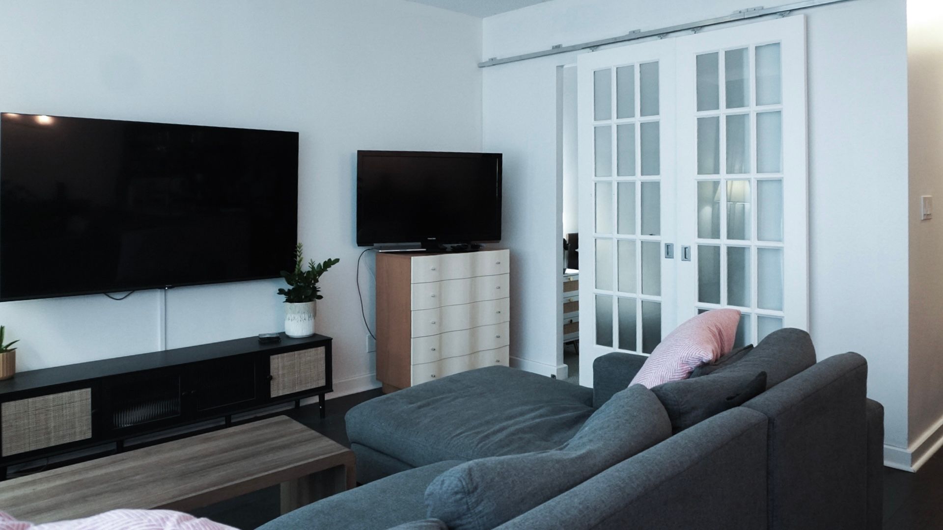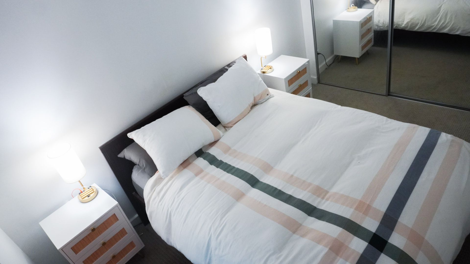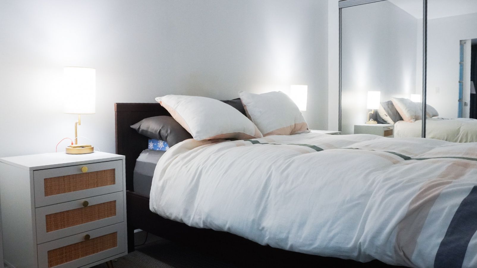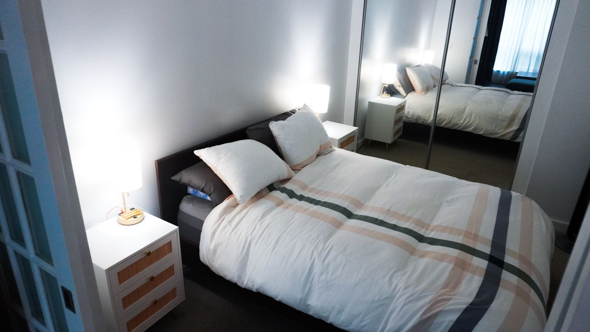 • Generous bedroom featuring a mirrored double closet for extra storage.