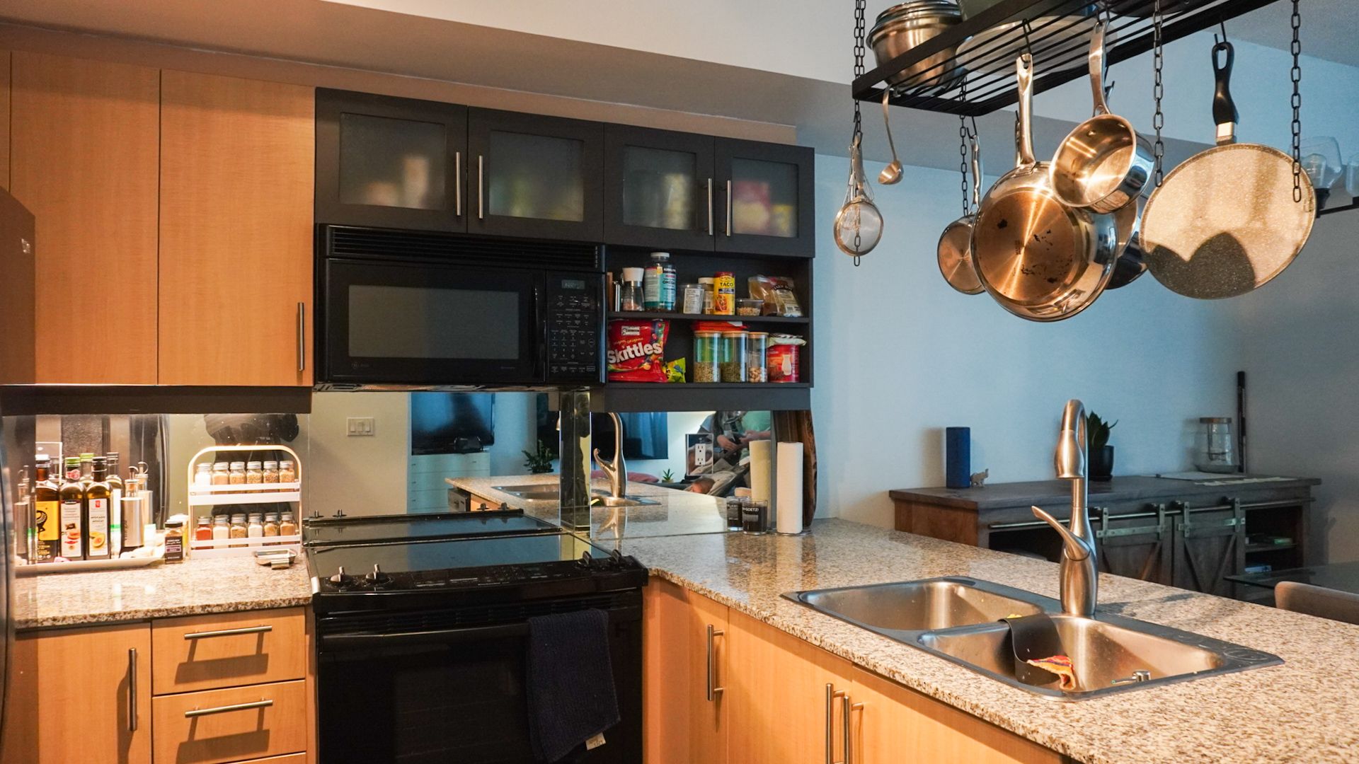 • Spacious living and dining area equipped with full-sized appliances.