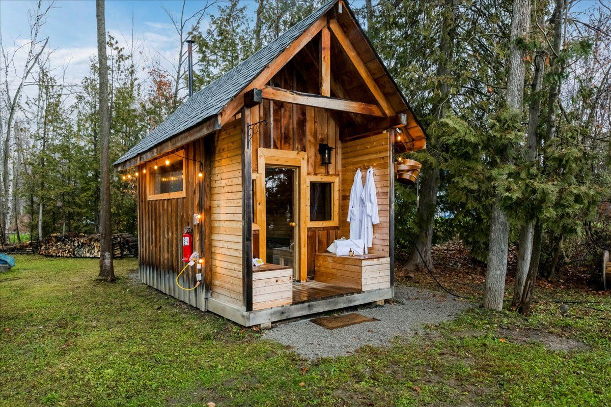 Nestled steps from the shimmering shores of lake simcoe, this exceptional estate invites you to experience a lifestyle defined by tranquility, sophistication, and nature. Set on a deep, beautifully treed lot, this home blends refined craftsmanship with a warm, inviting comfort-creating residence that feels like a private sanctuary. The residence is a custom-crafted bungalow estate that blends stone, wood, and expansive glass into a warm modern retreat. The home sits on approximately two private acres in an exclusive lake simcoe community just steps from the lake. The interior offers over 4300 sqft above grade, featuring vaulted ceilings, wide-plank hardwood floors, and sun-filled rooms designed around peaceful forest views. The gourmet kitchen includes custom cabinetry, an oversized granite island, premium appliances, and a window-wrapped dining area with direct deck access. The great room showcases a statement stone fireplace, arched picture windows, and an open-concept layout ideal for everyday living and entertaining. The outdoor living space features a covered lounge deck, expansive yard, natural rock landscaping, and a handcrafted cedar sauna cabin nestled among the trees. The property includes 5 spacious bedrooms, multiple living areas, and a serene loft offering flexible use. A 3-car garage paired with an oversized driveway provides parking for 10 vehicles, making it perfect for gatherings, hobbies, or large families. This lakeside estate delivers privacy, craftsmanship, and year-round luxury living in one exceptional retreat.