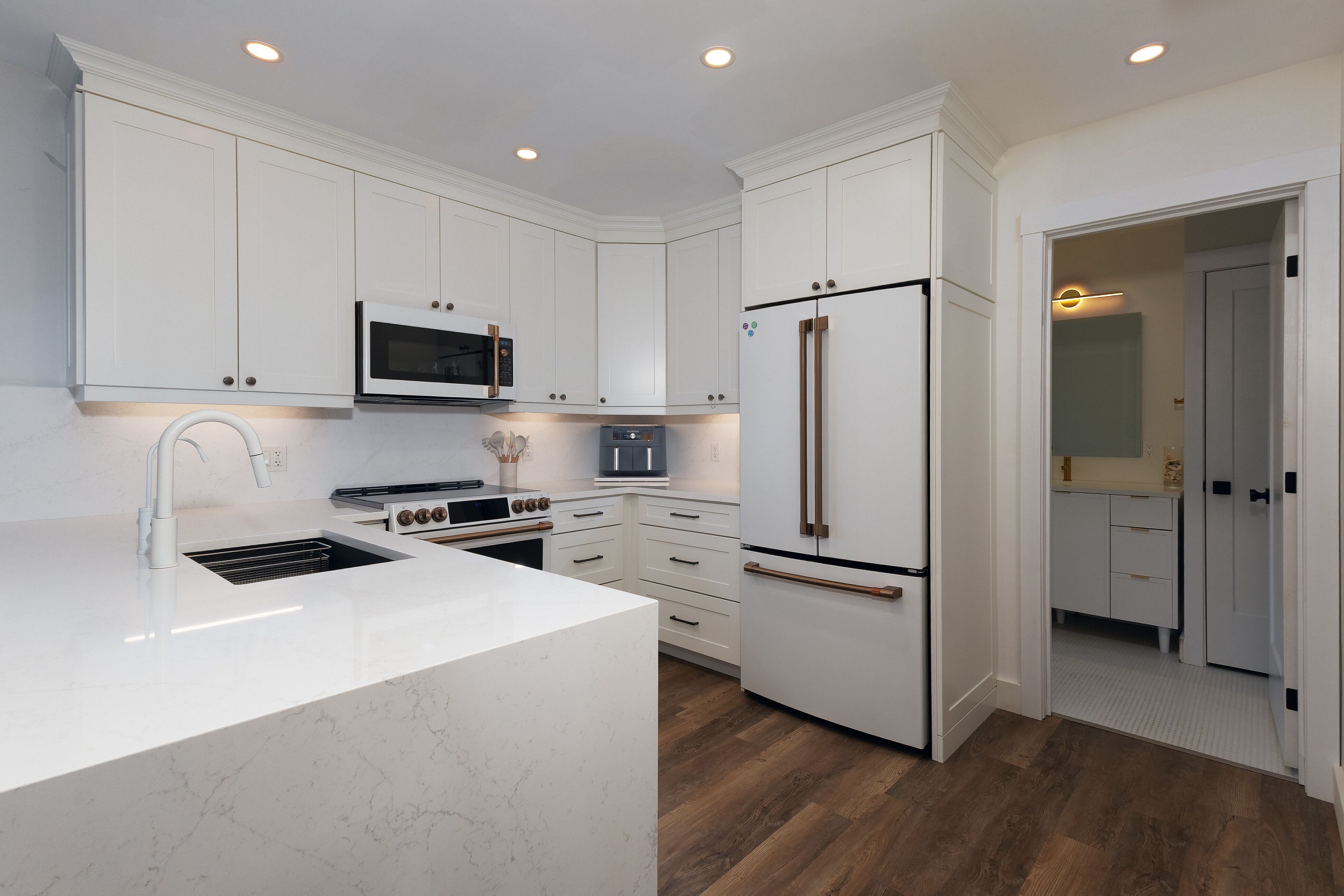 • Open-concept living area featuring a modern kitchen with quartz counters.
