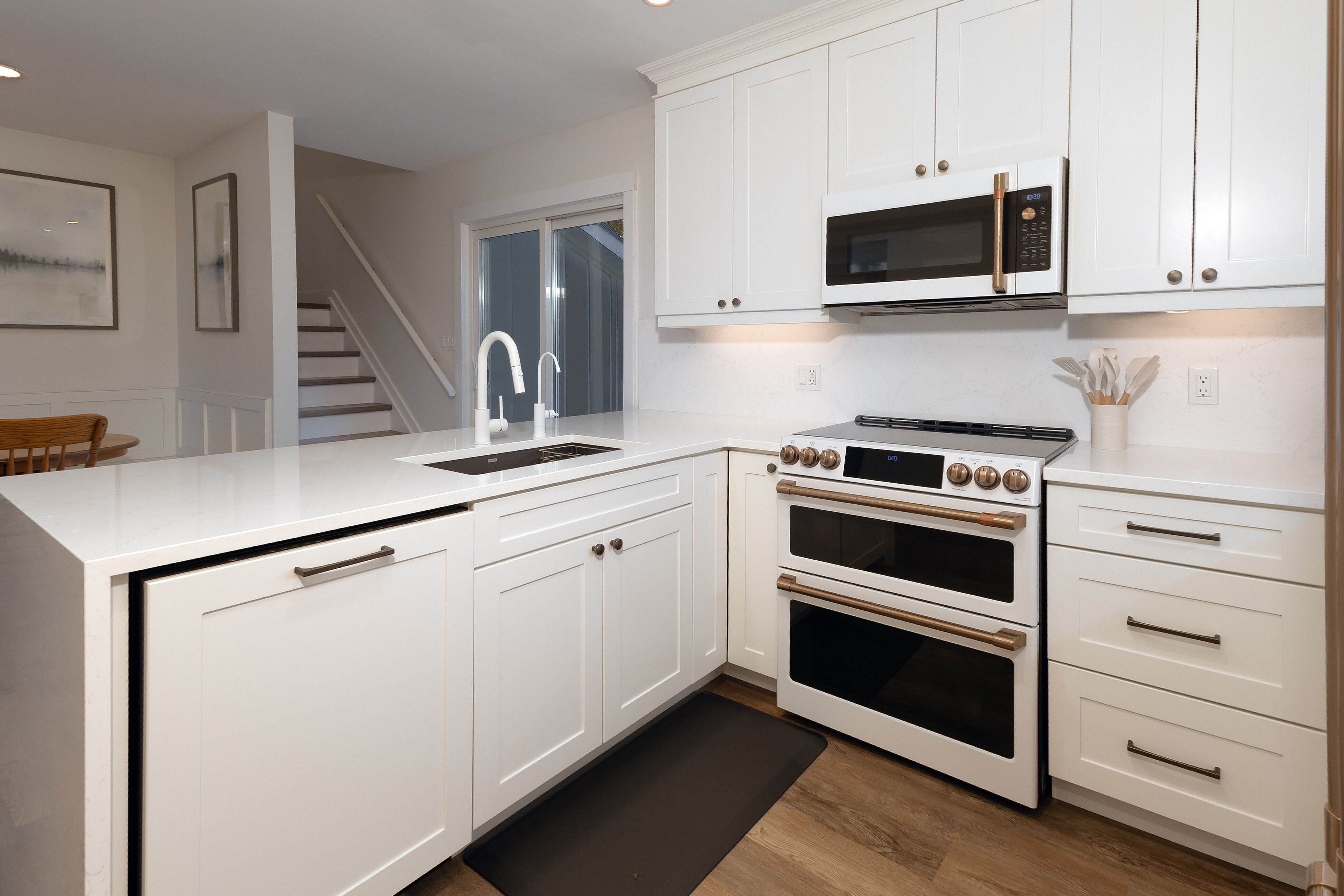 • Bright open-concept living spaces with modern kitchen and quartz counters.